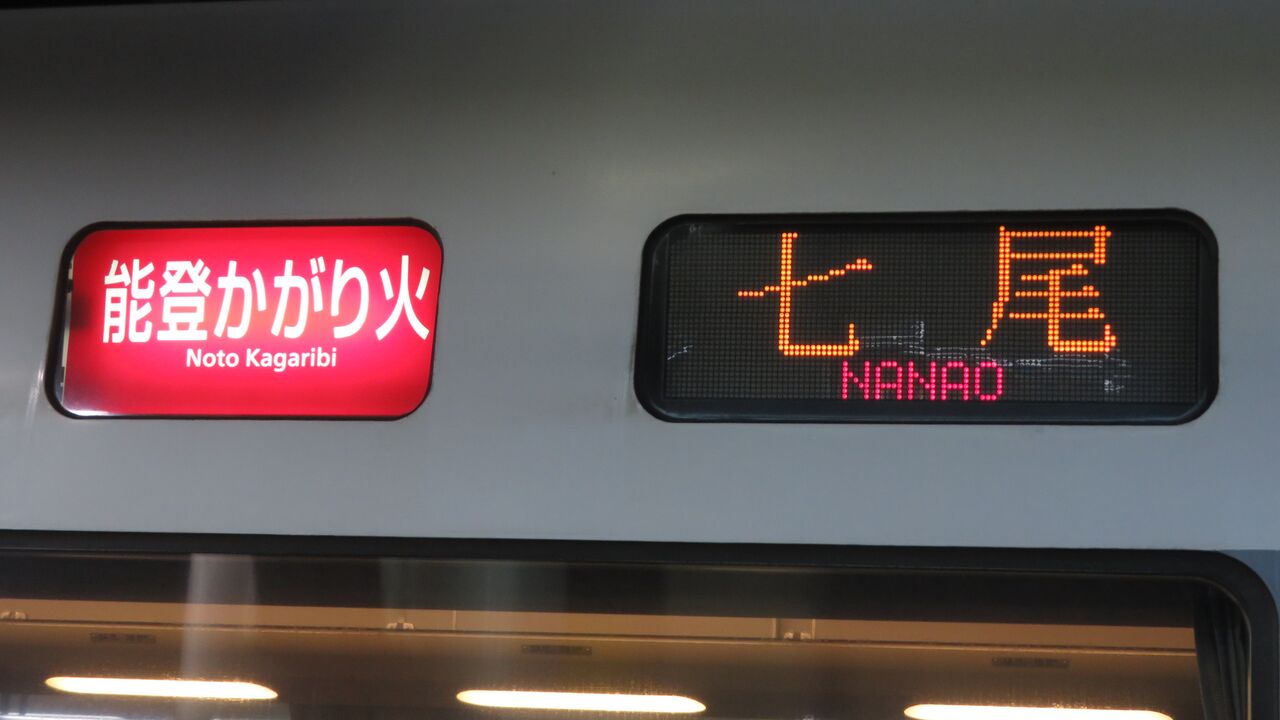 なお、2月15日に七尾~和倉温泉駅間が復旧しましたが、金沢駅を18時35分に発車する特急能登かがり火7号は、引き続き 「七尾行き」 として運転されています。