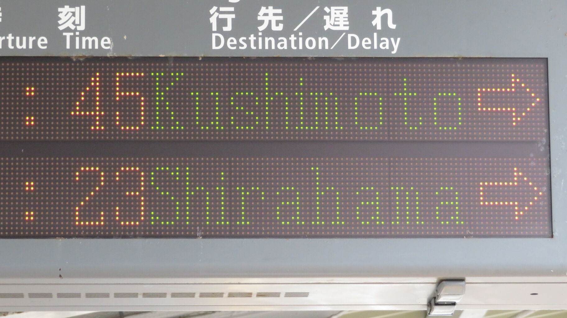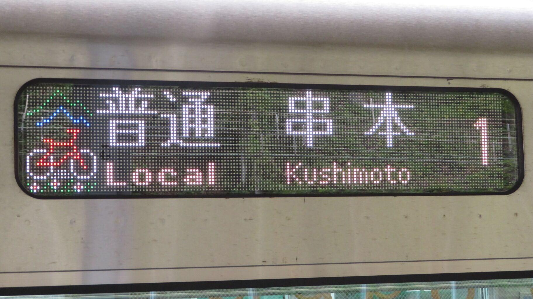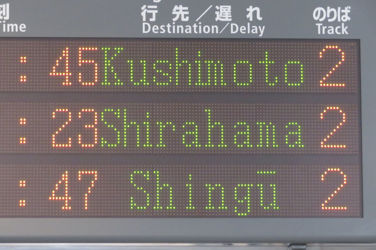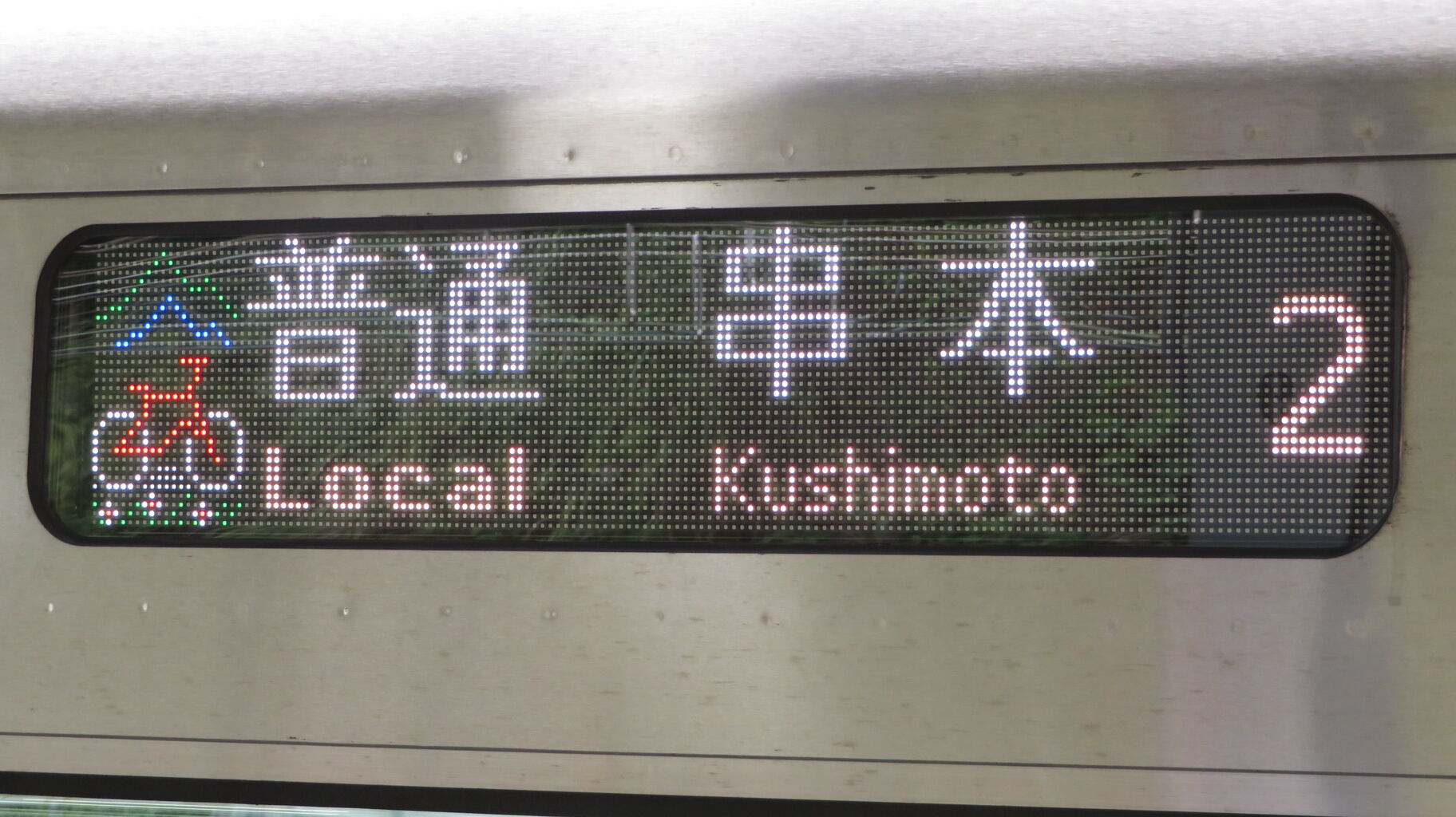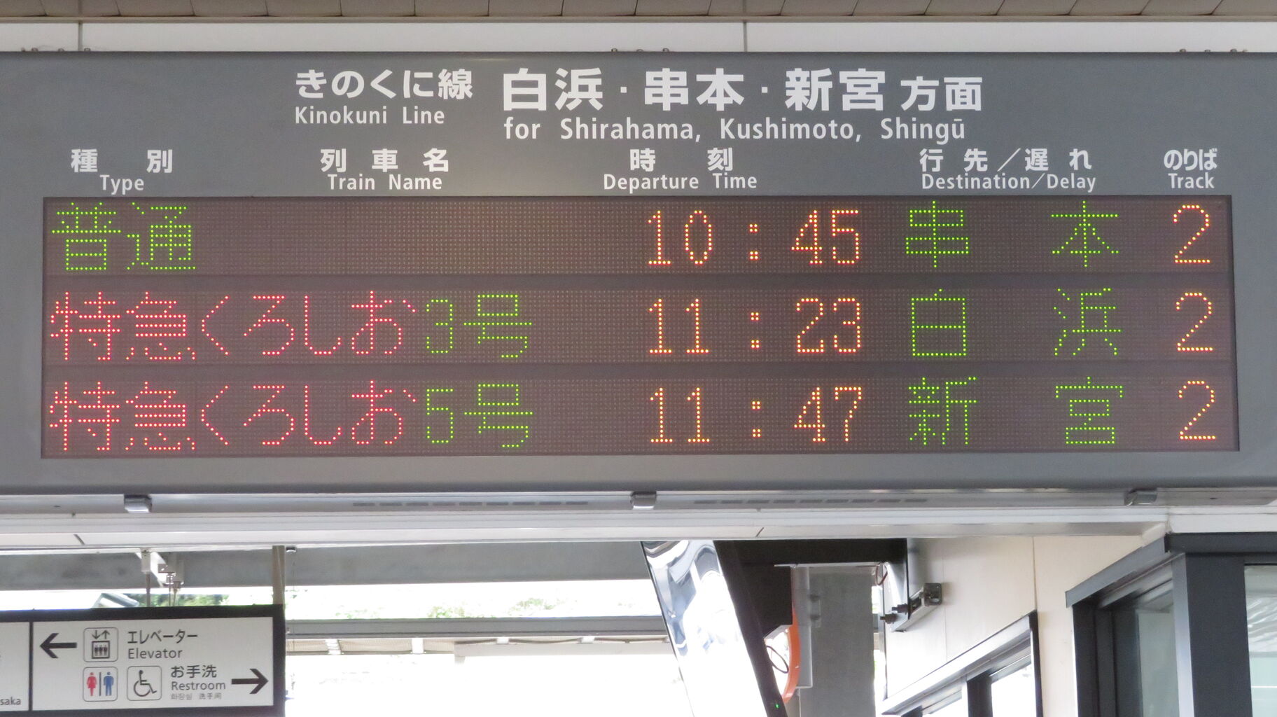 上の段に、10時45分発の普通 「串本行き」 が表示されていました。