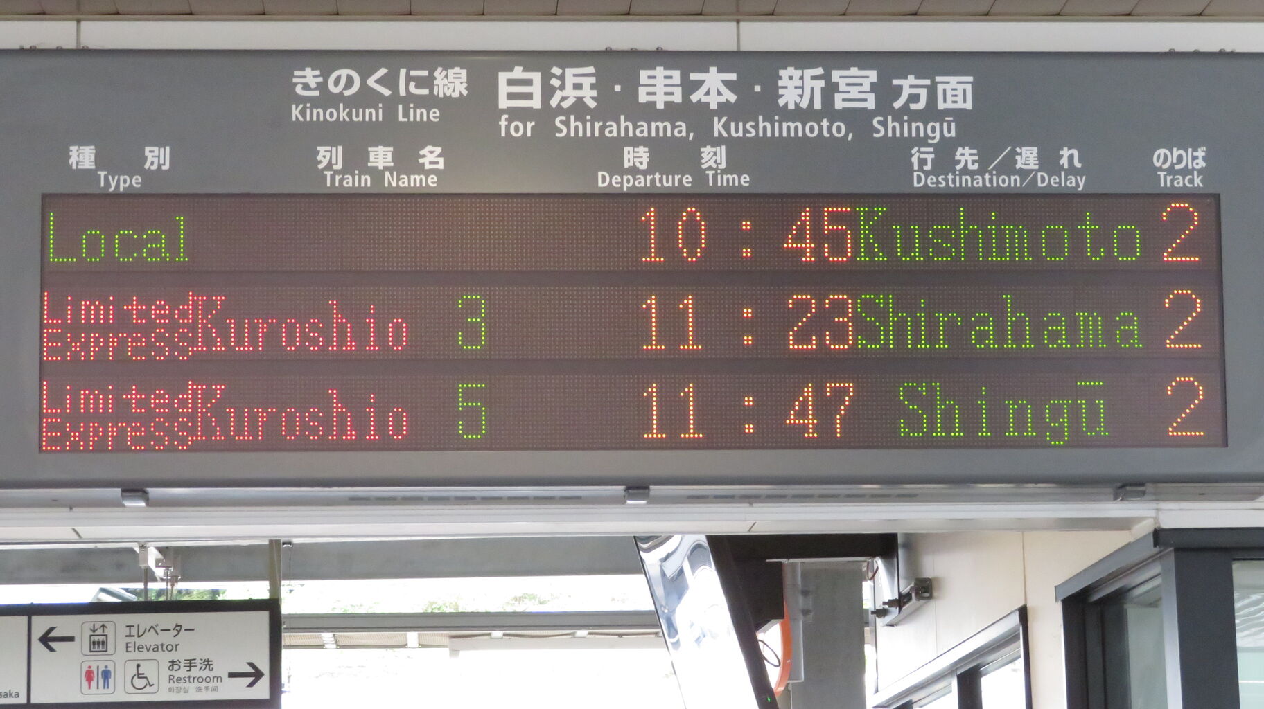 串本行き・白浜行き・新宮行きの3つが並んでいます。