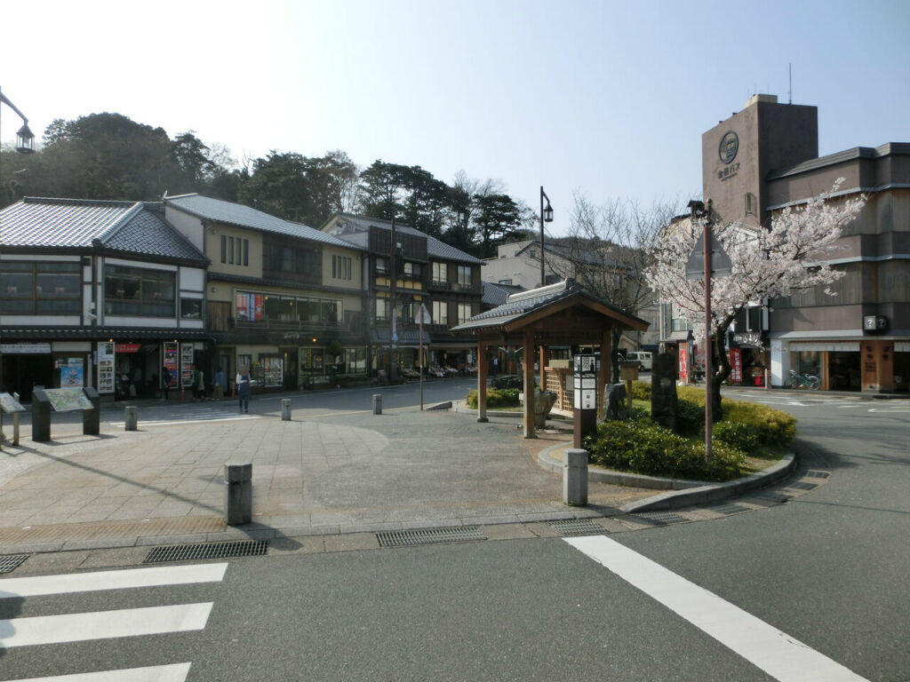 駅前の様子です。 4月上旬に行ったので、桜が咲いていました。