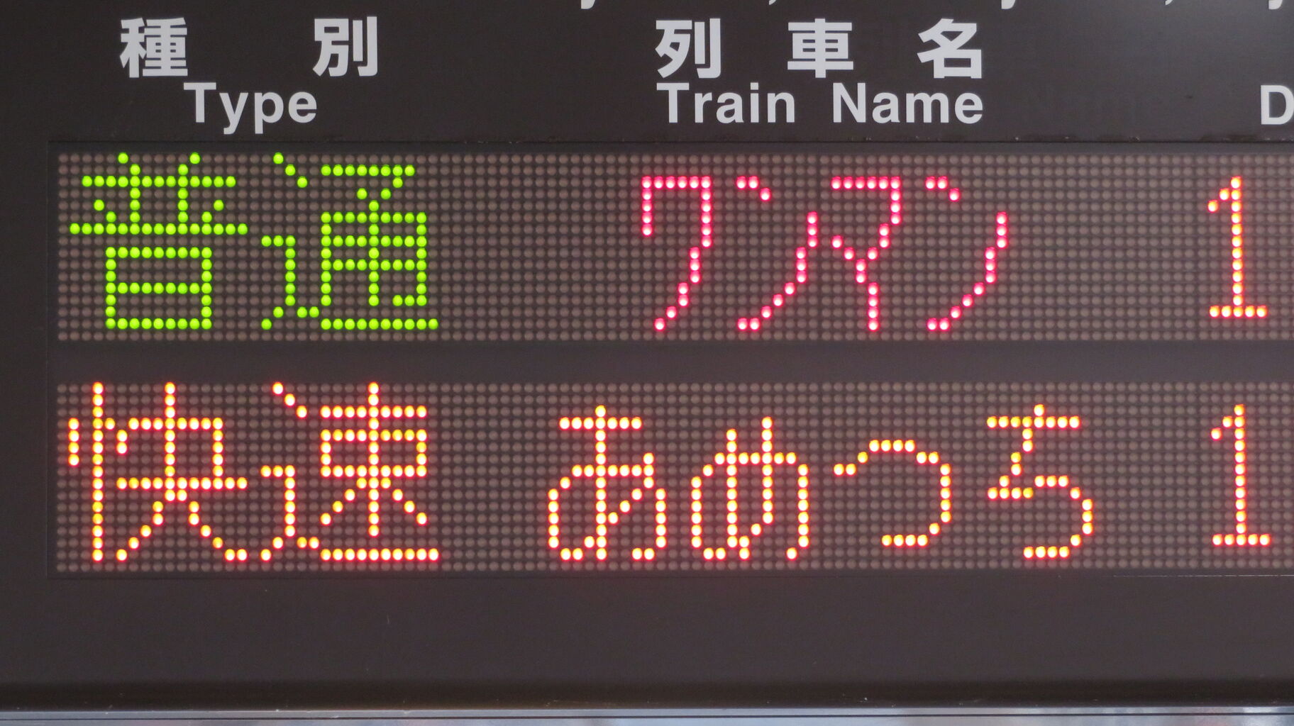 種別・列車名表示を改めて拡大して撮ってみました。