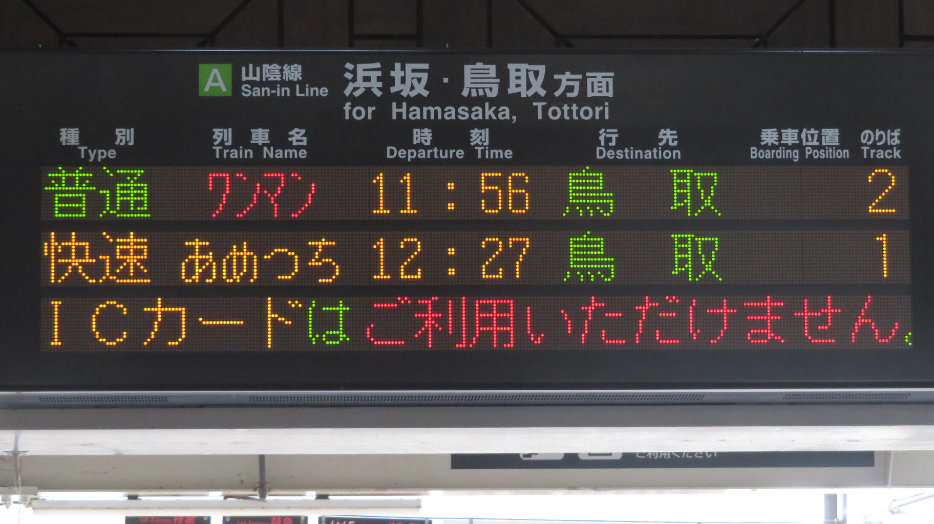 折り返し 11:56発の普通 鳥取行きとなります。