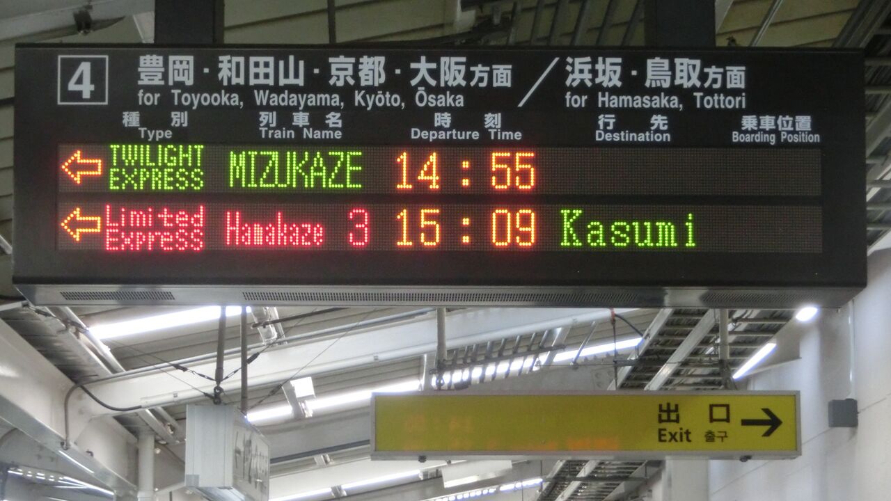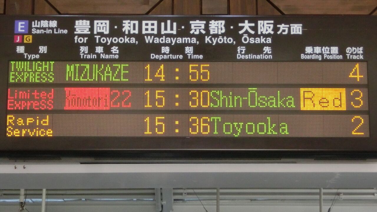2021年10月から、山陰コース 下りの停車駅が 城崎温泉駅から香住駅に変更されました。