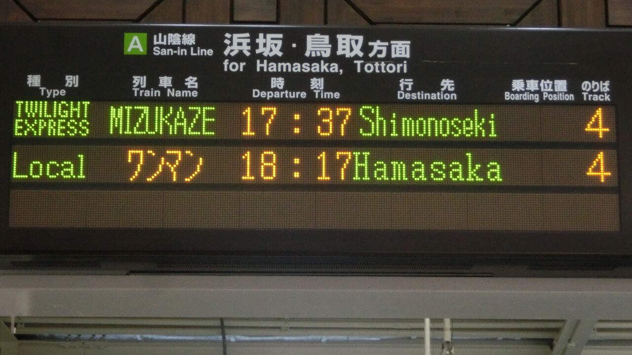 瑞風の場合、種別欄に 「TWILIGHT EXPRESS」、列車名欄に 「瑞風」 「MIZUKAZE」 と表示されます。
