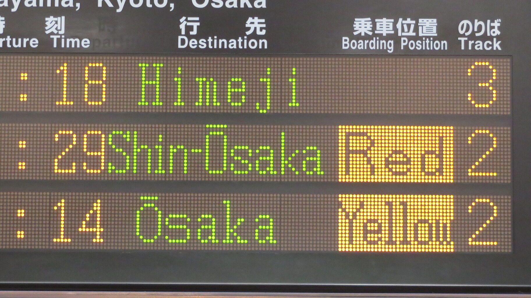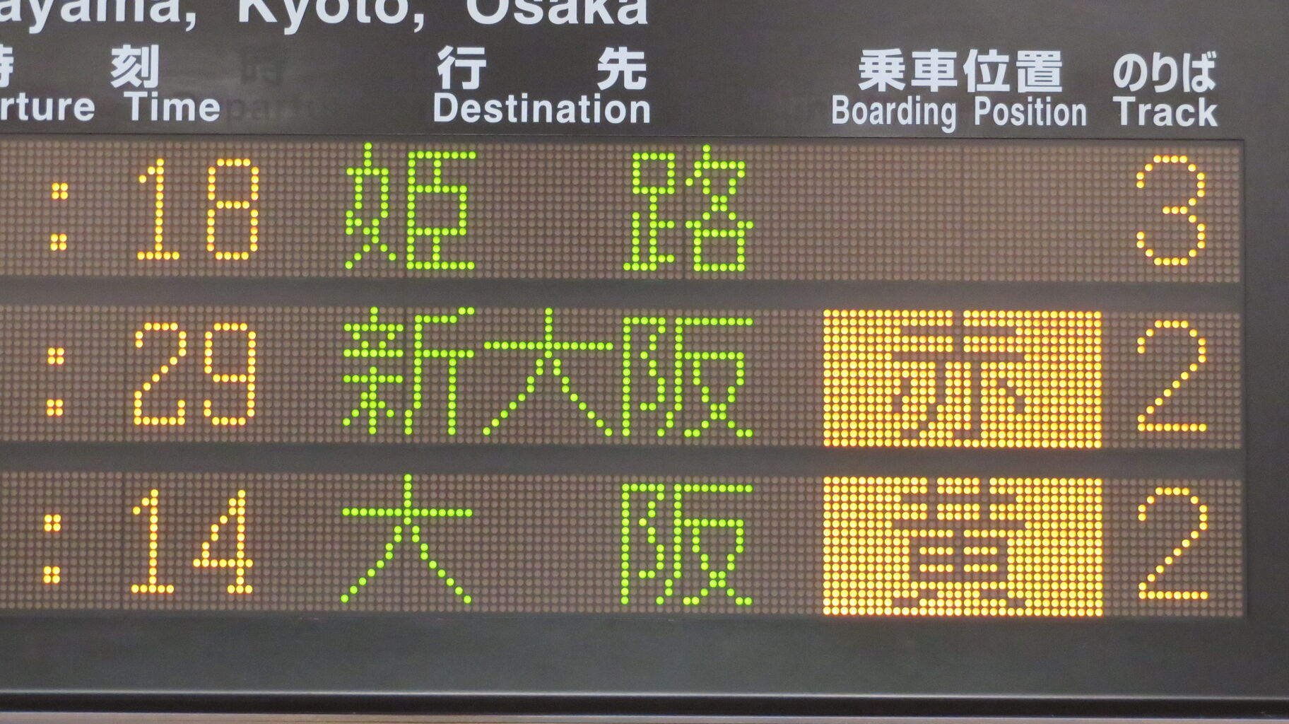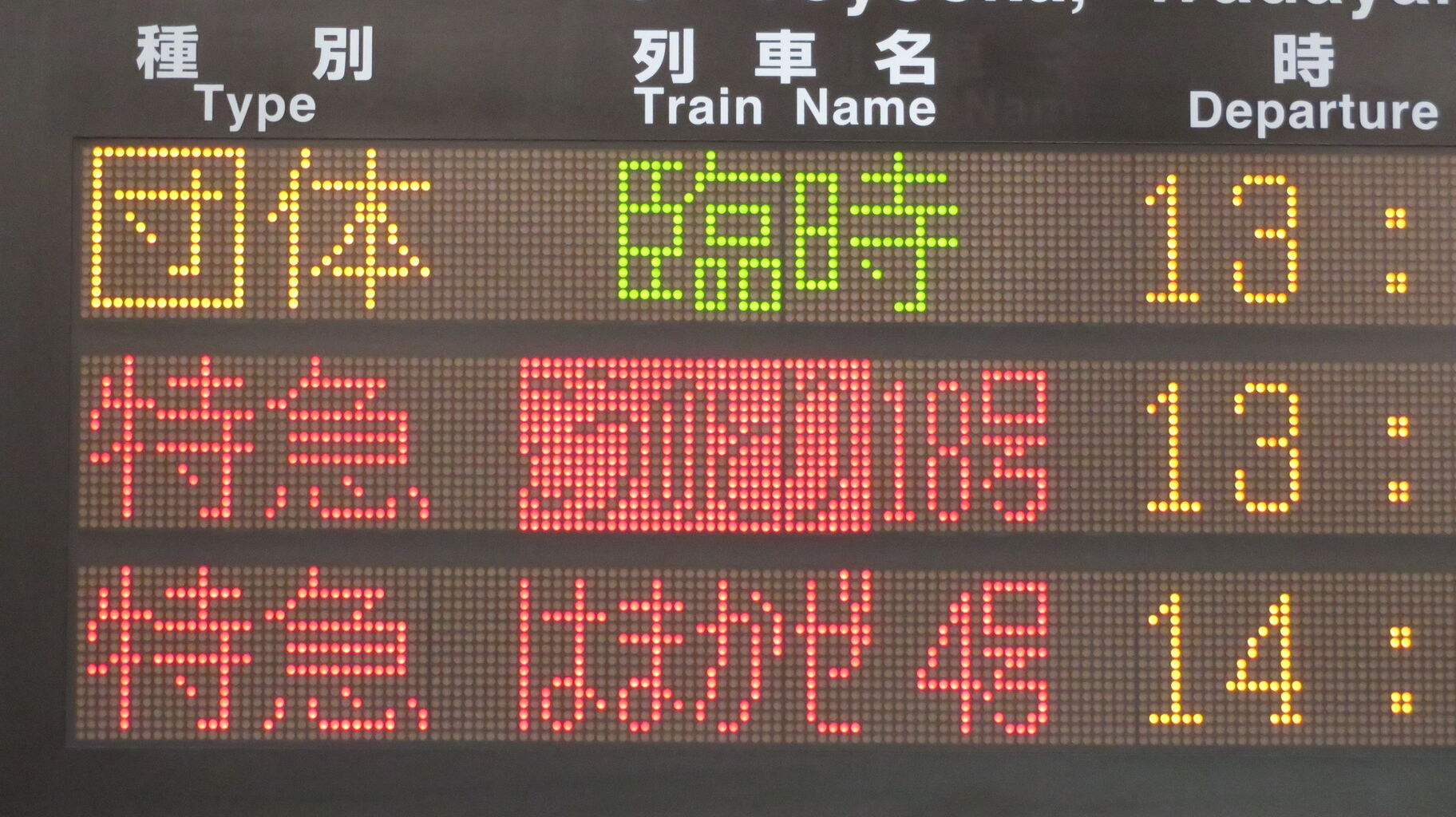 続いて、改札内跨線橋に設置されている発車標を撮影。