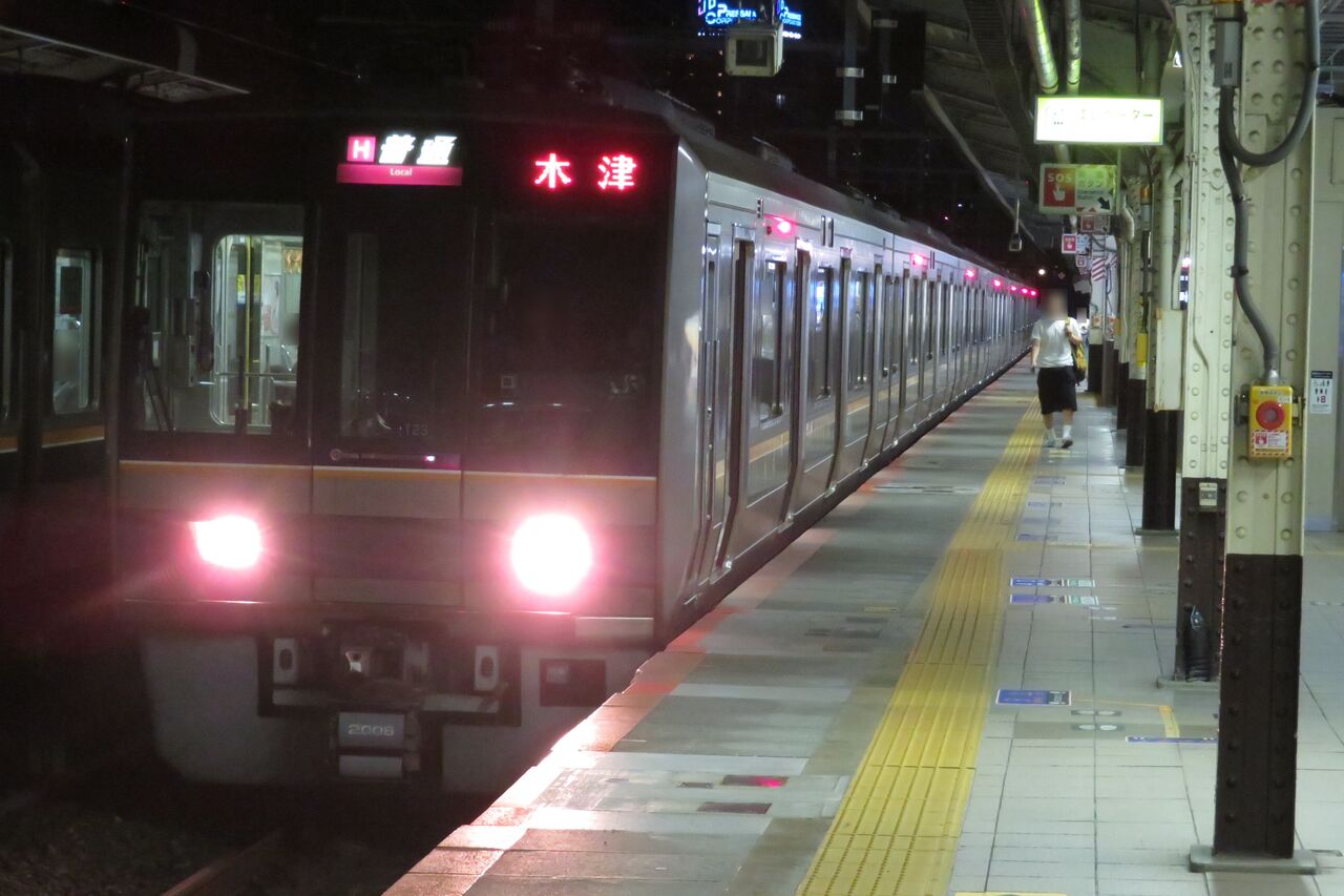 一番下の段に、普通 木津行きの表示が出ました。