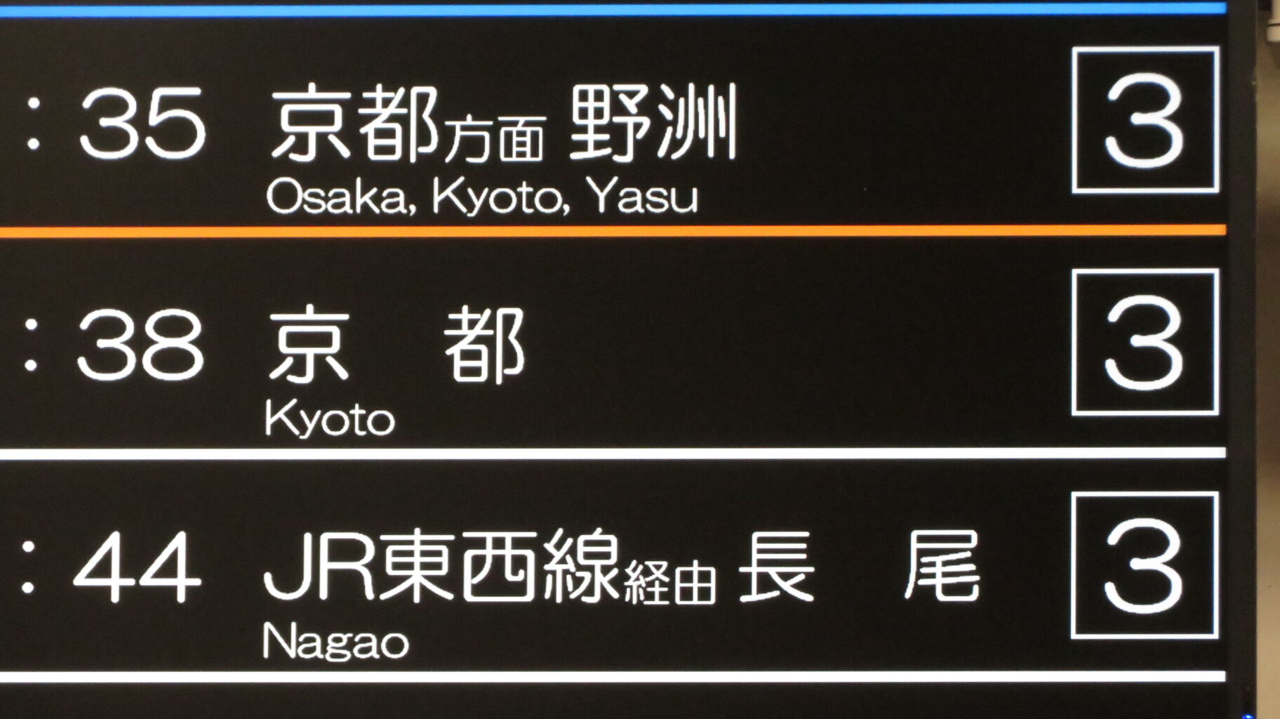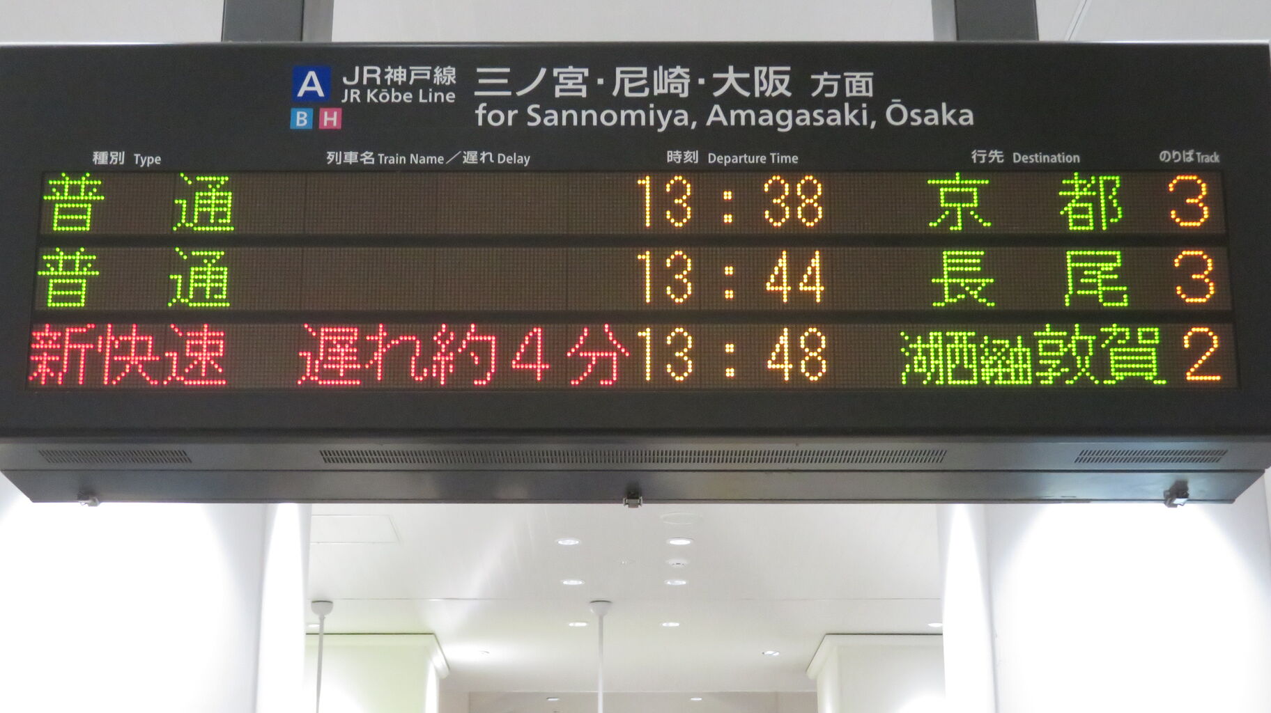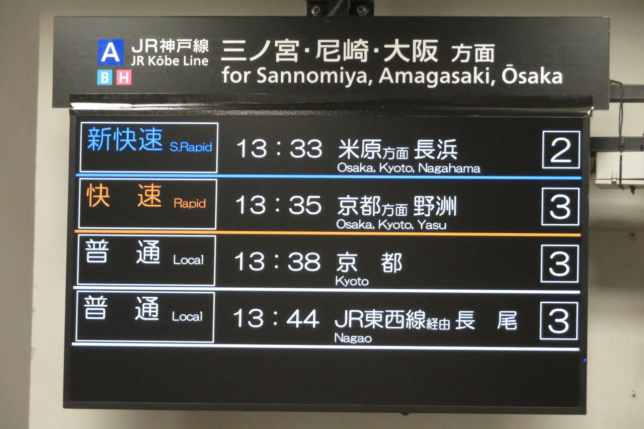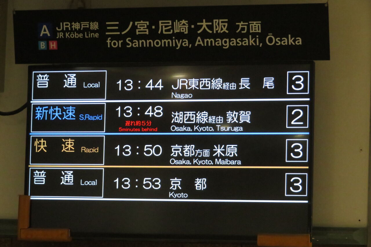 また、山科駅から湖西線へ直通する電車の場合、列車名 / 遅れ欄に時々 「湖西線経由」 と表示されます。
