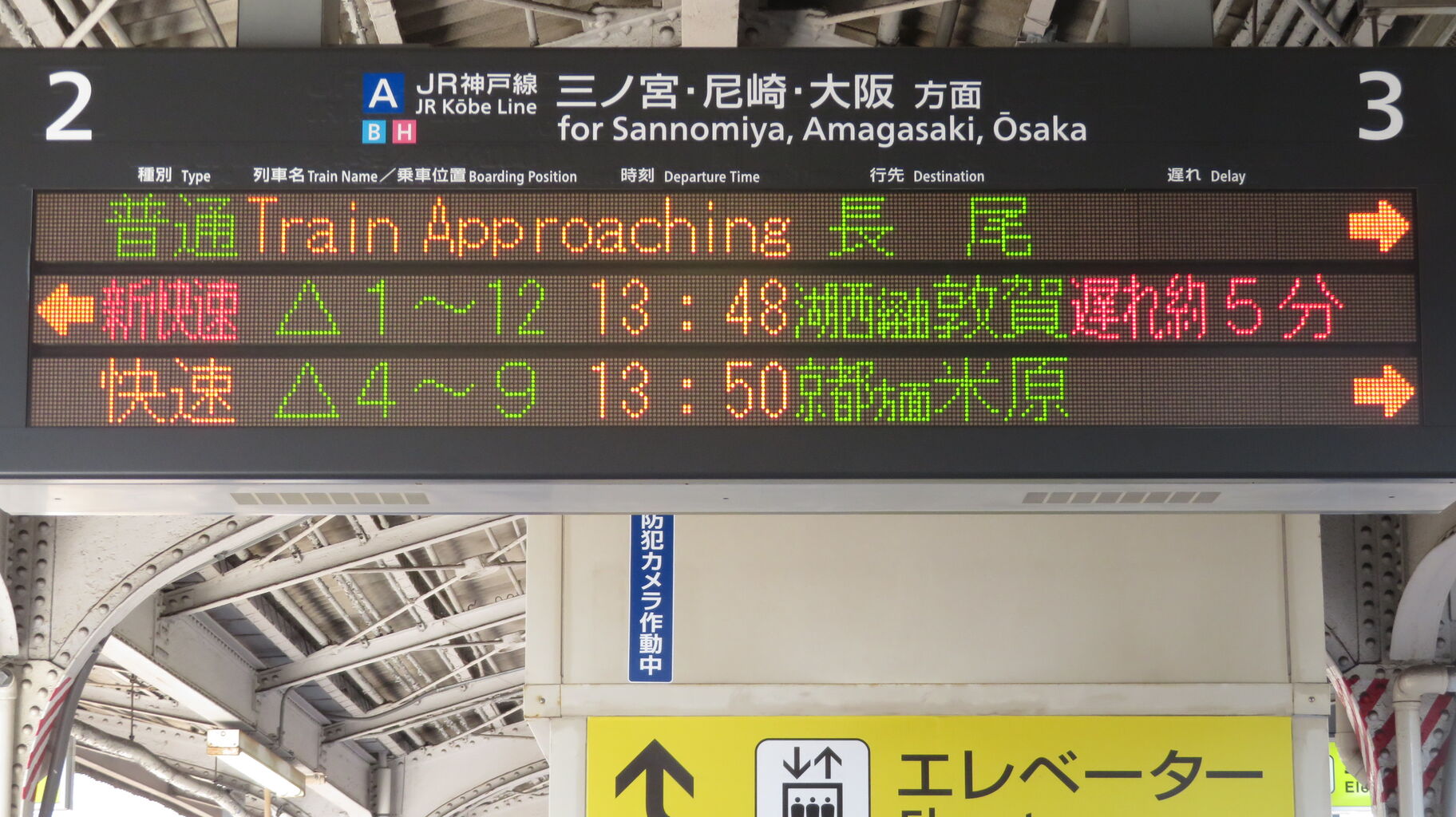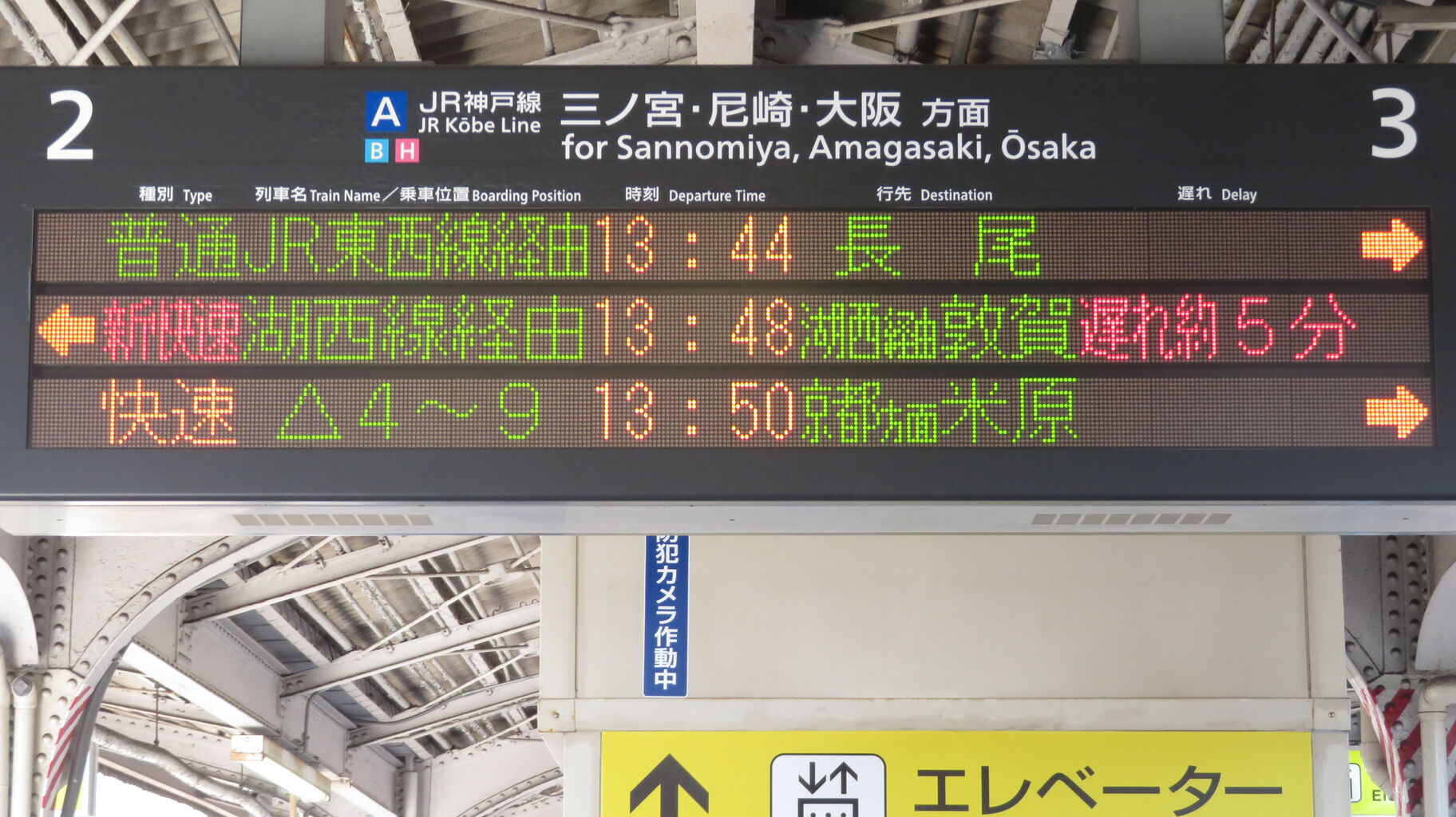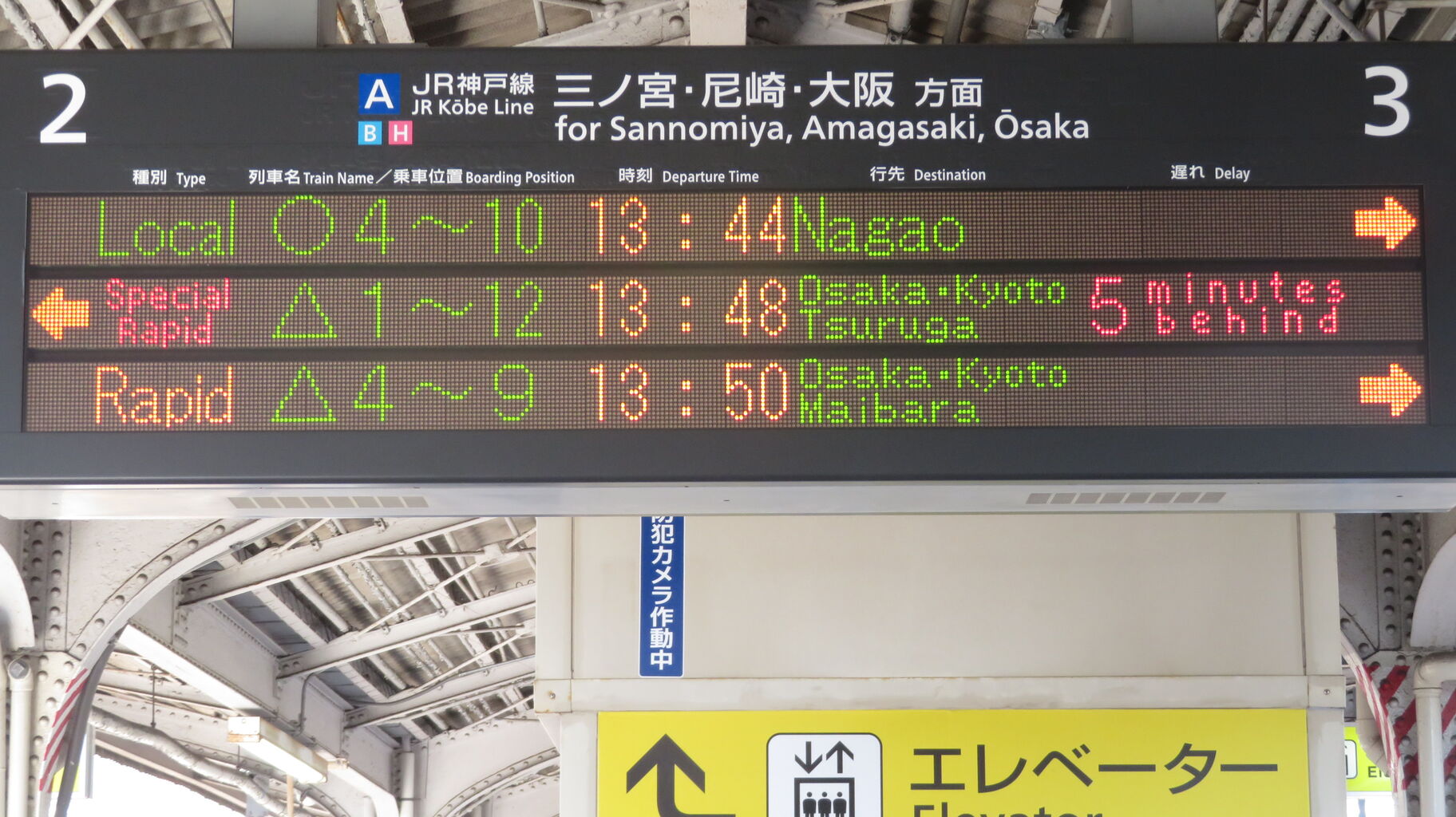 続いて、中央口に設置されている3色LED発車標を撮影。