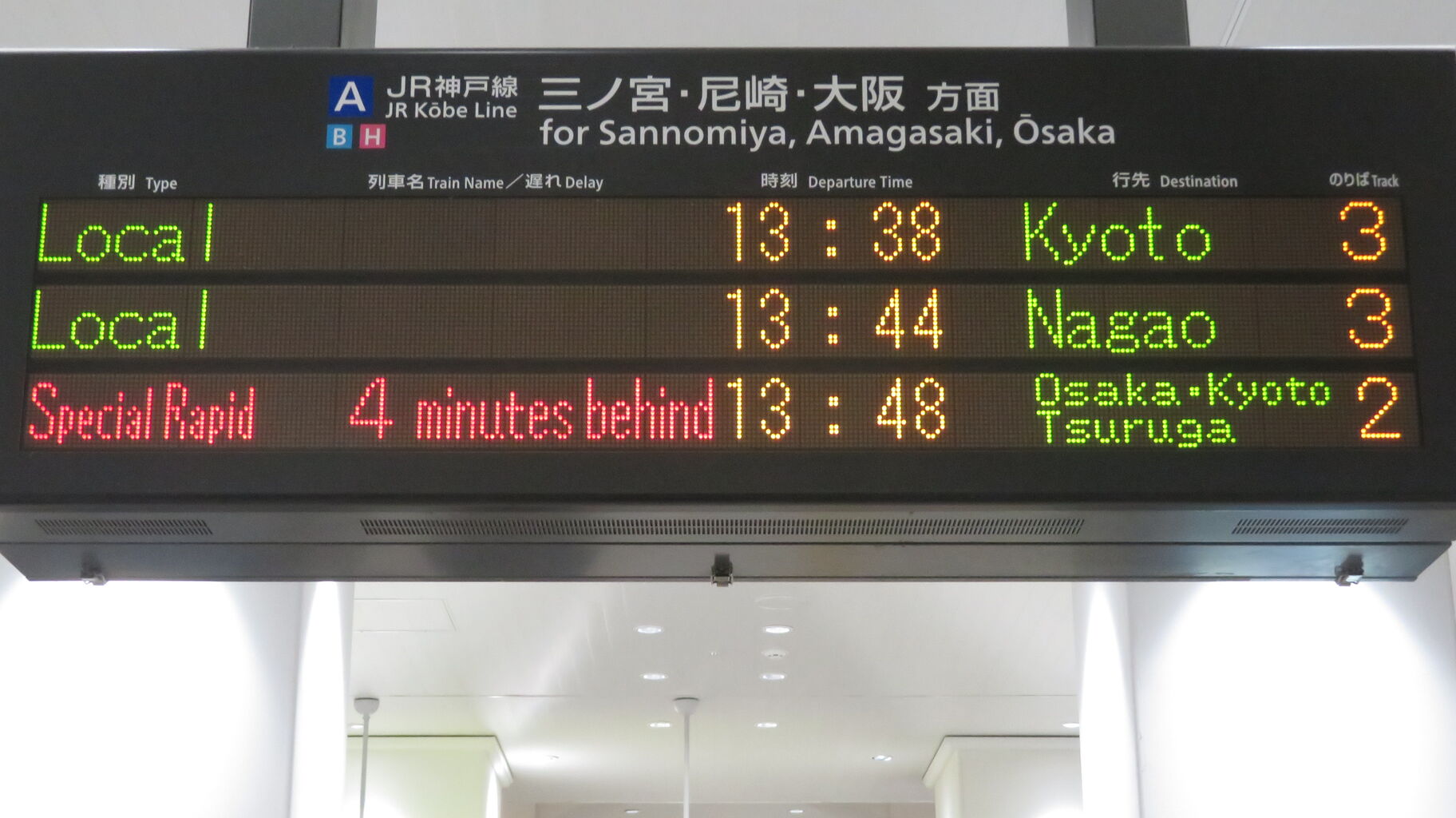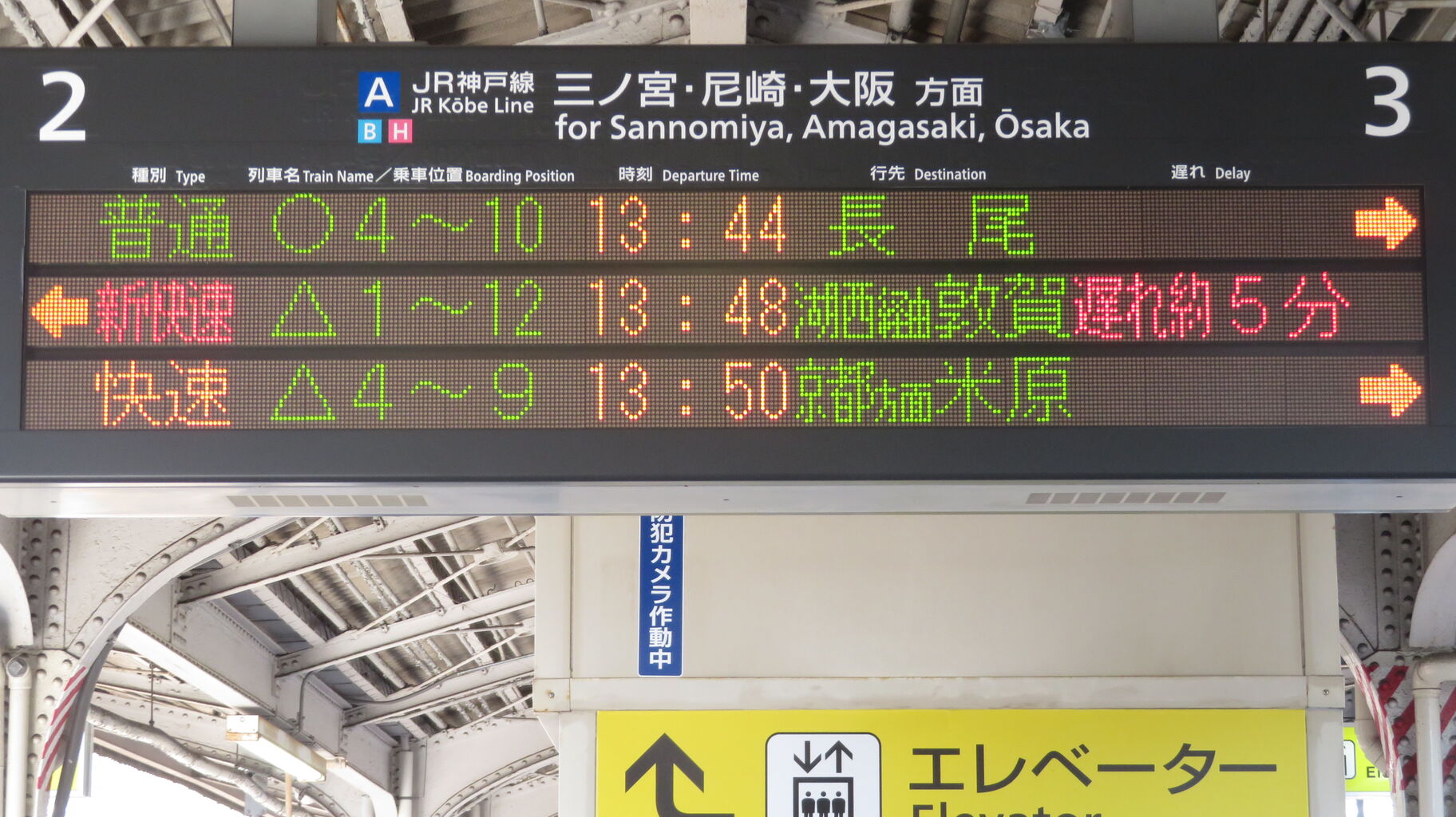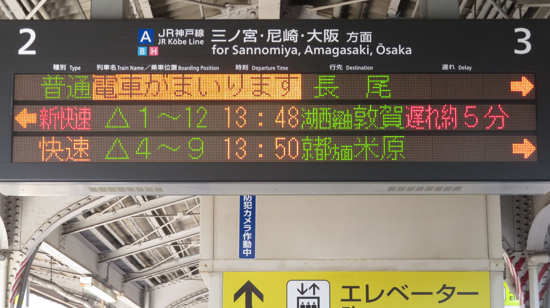 続いて、中央口に設置されている3色LED発車標を撮影。