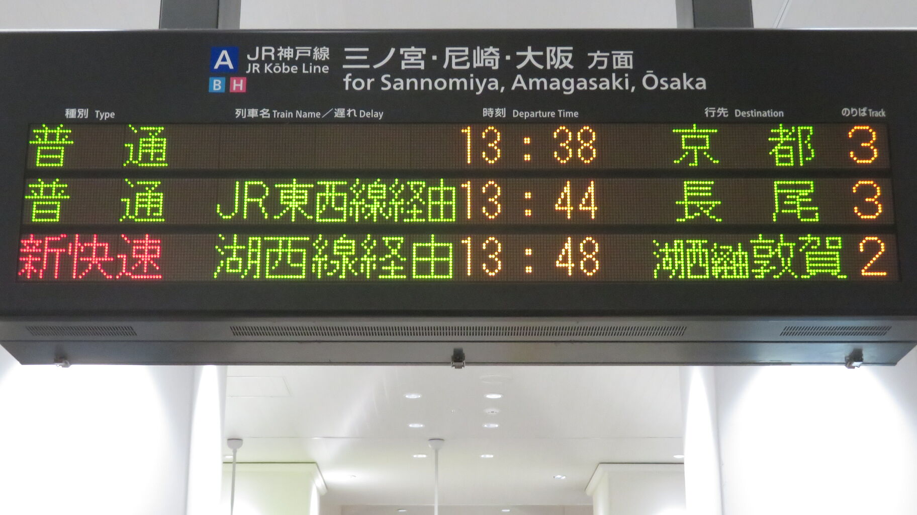 まずは、ビエラ神戸口に設置されている液晶ディスプレイ(LCD)発車標から。