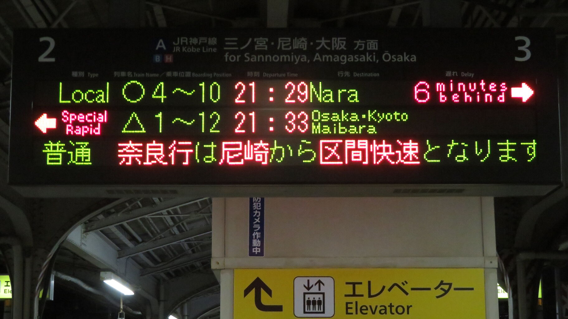 その後、「普通 奈良行は尼崎から区間快速となります。」 と流れ・・・