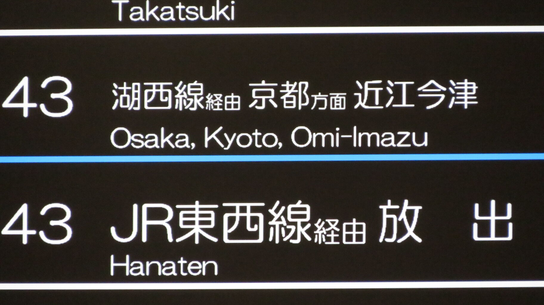 英語表示は、「Osaka, Kyoto, Omi-Imazu」 です。