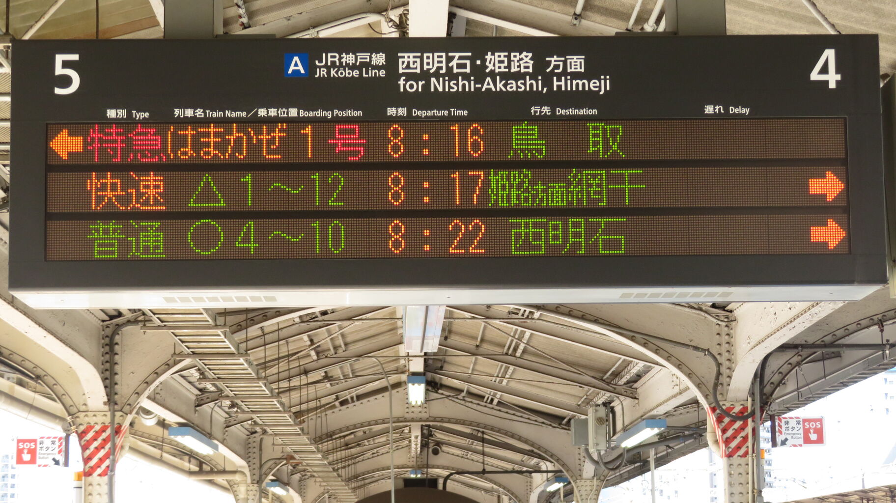 まずは、ビエラ神戸口に設置されている液晶ディスプレイ(LCD)発車標から。