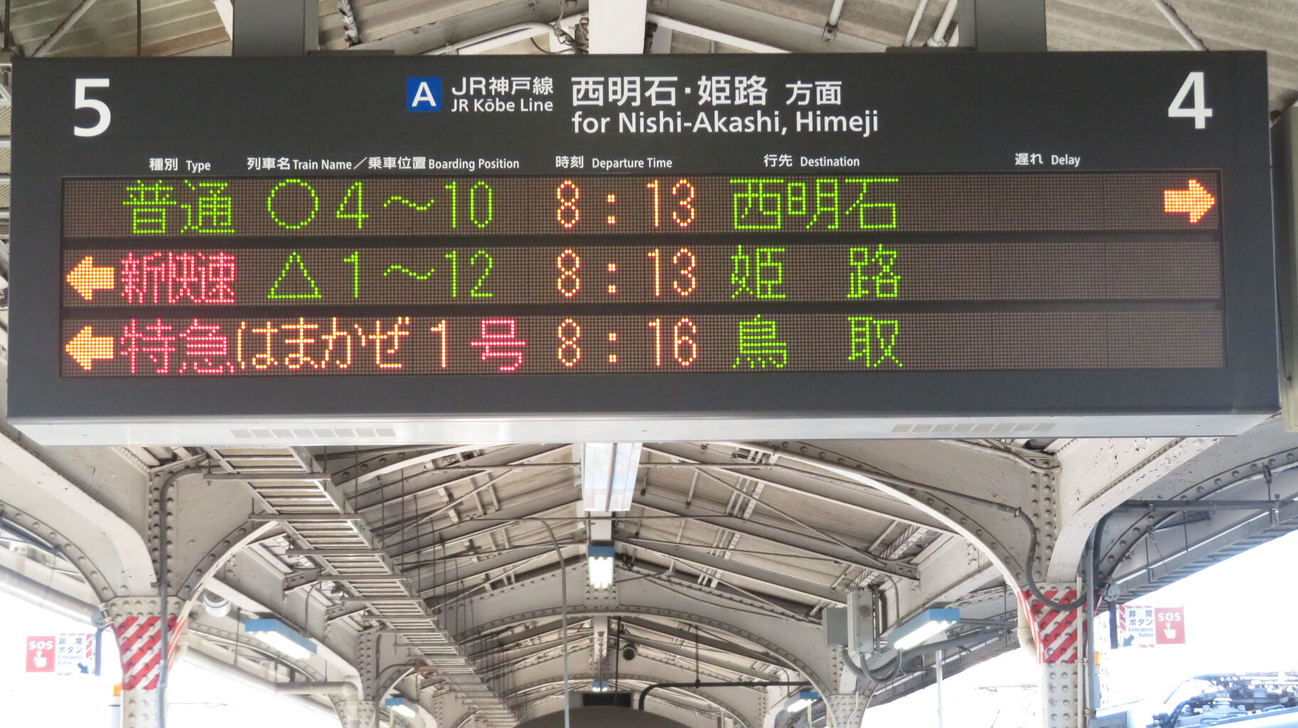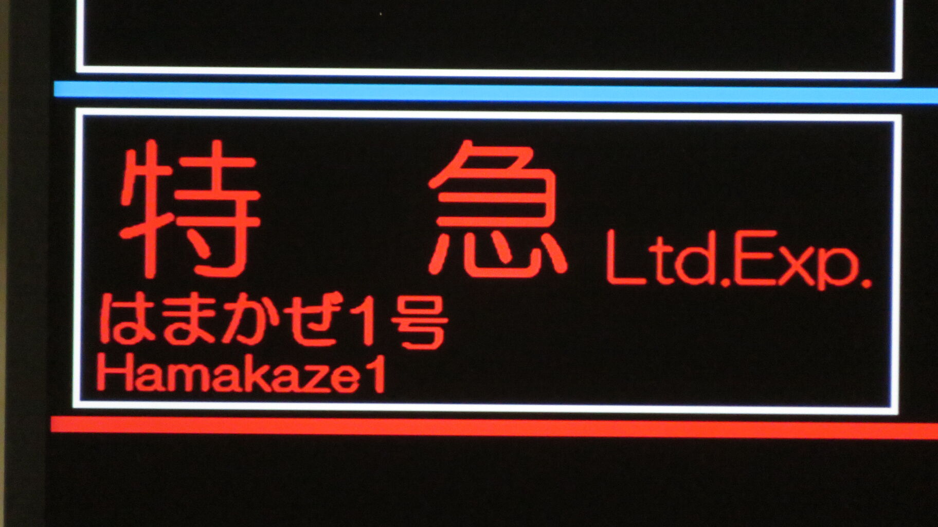 特急はまかぜ1号 鳥取行きが、一番上の段に表示されました。