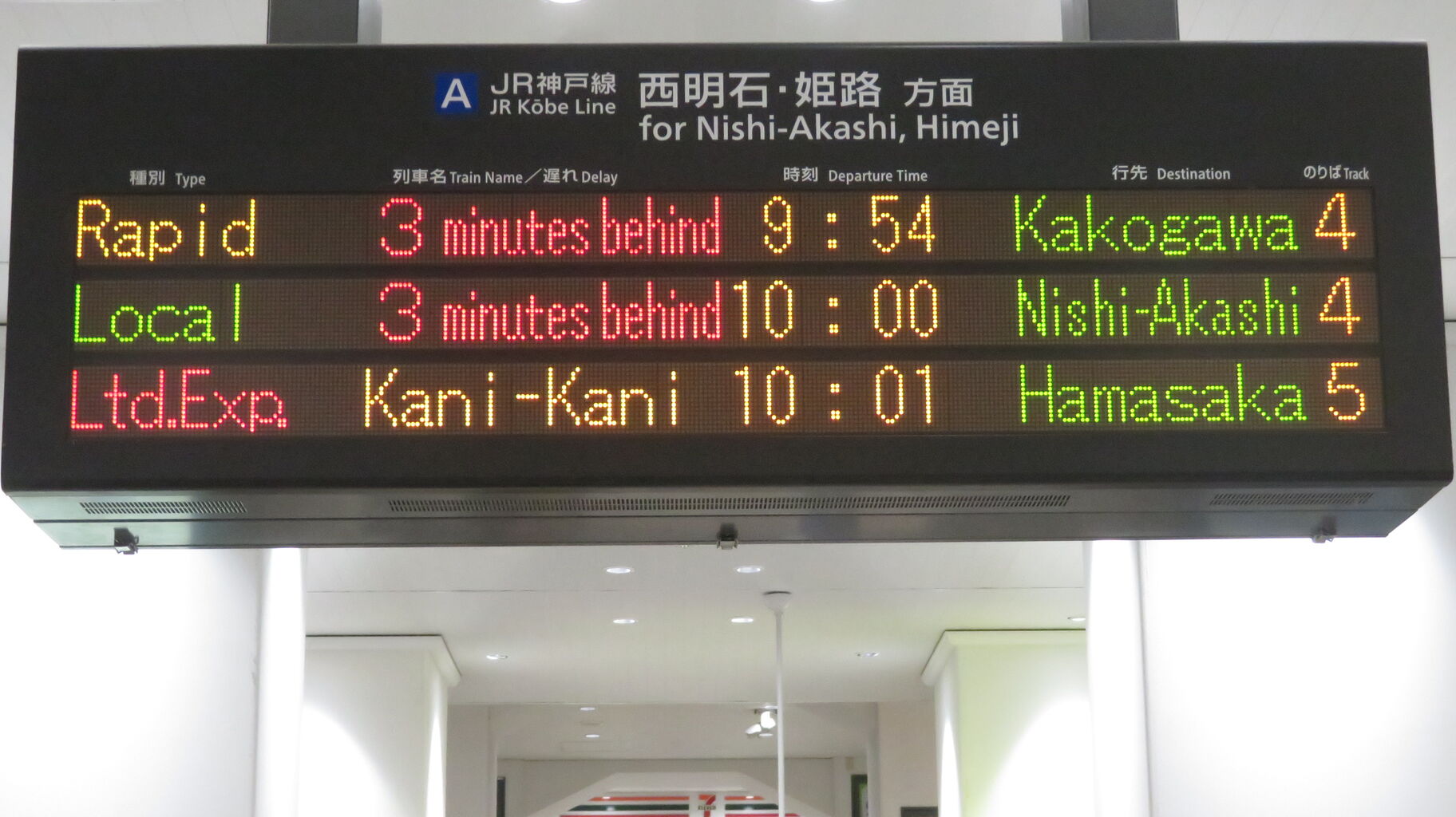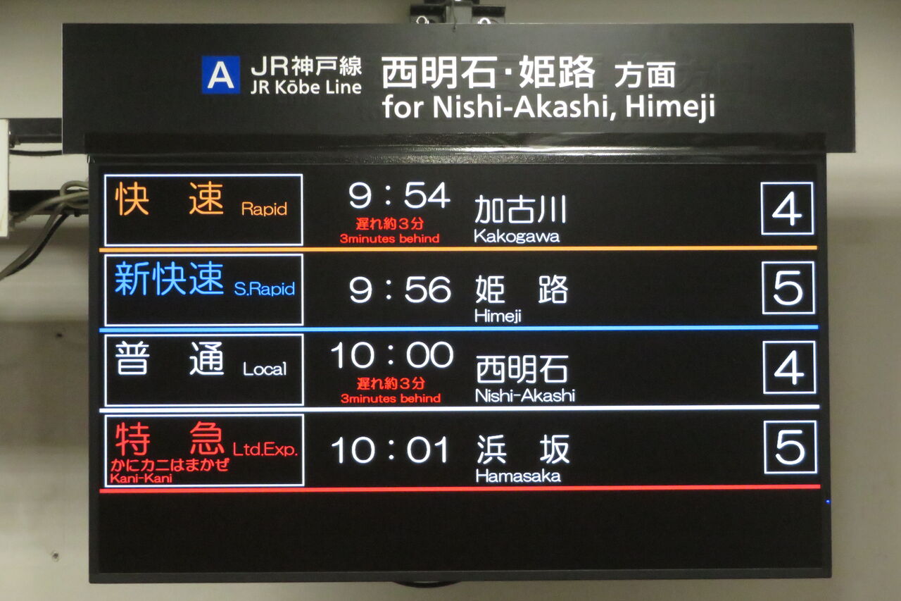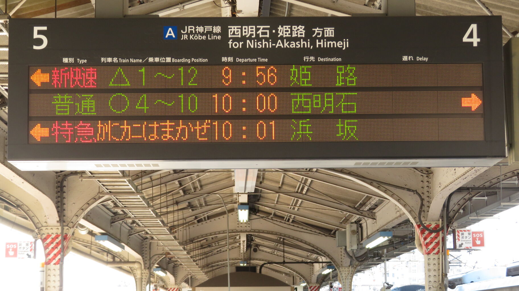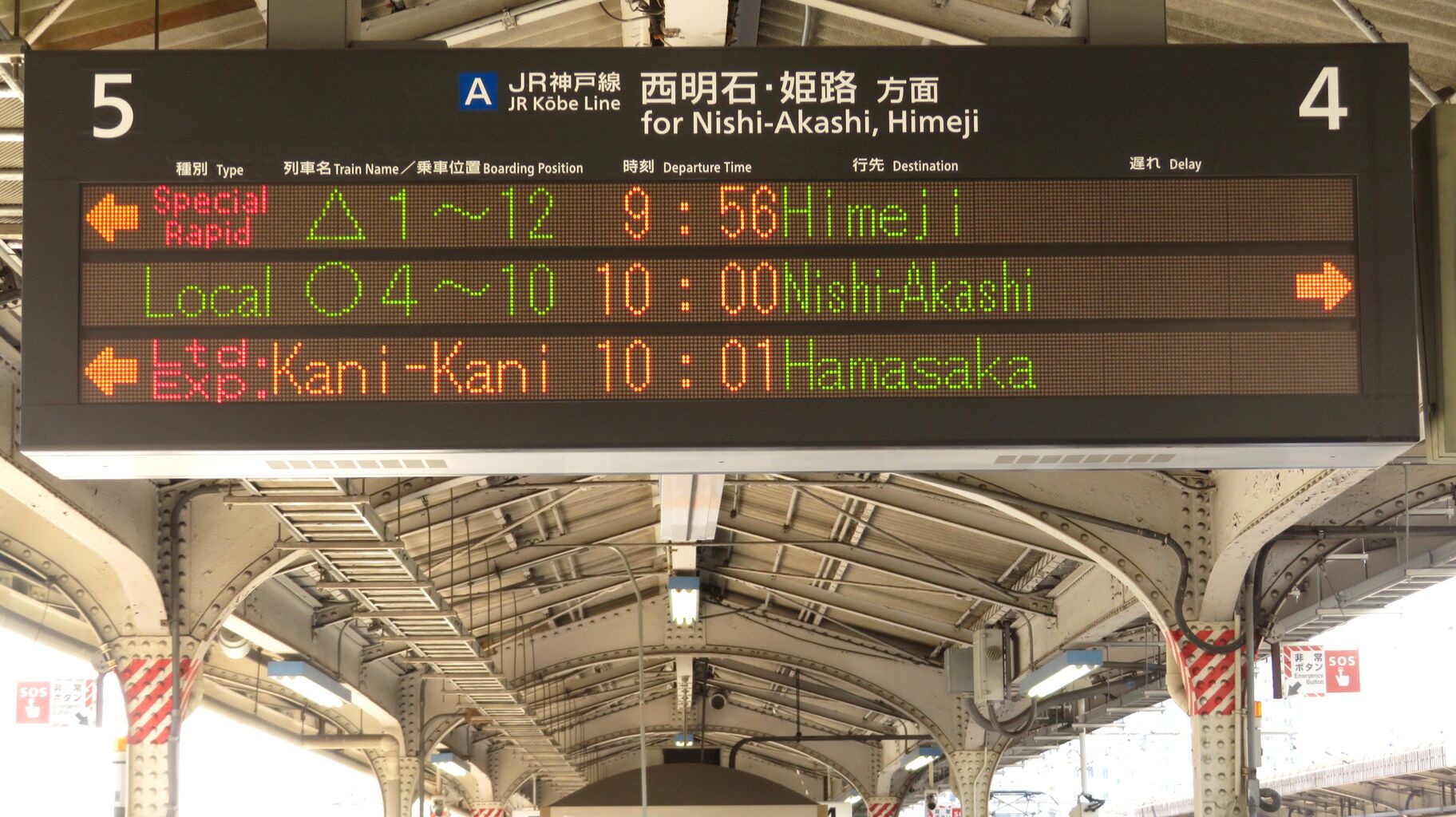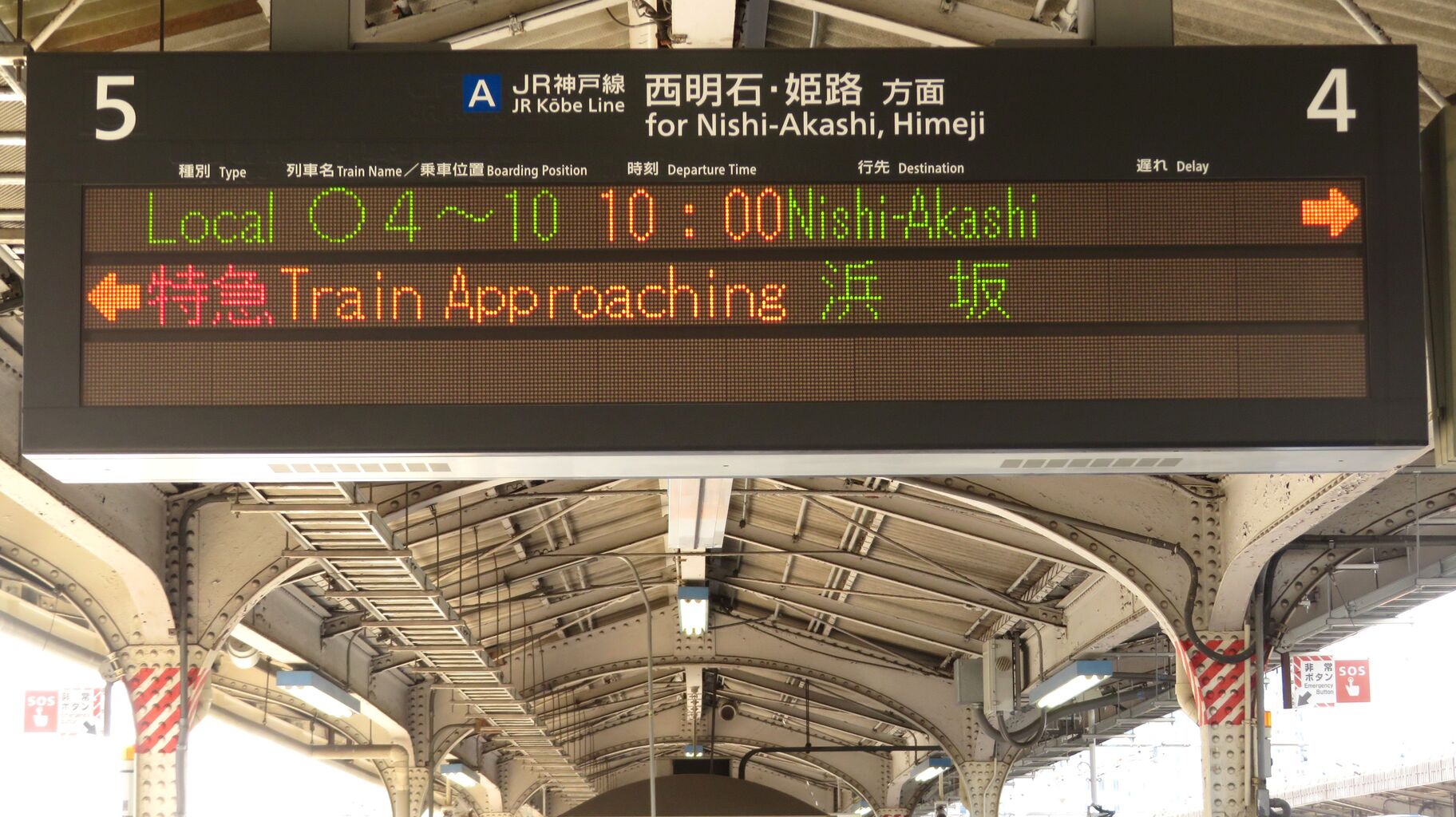 まずは、ビエラ神戸口に設置されている液晶ディスプレイ(LCD)発車標から。