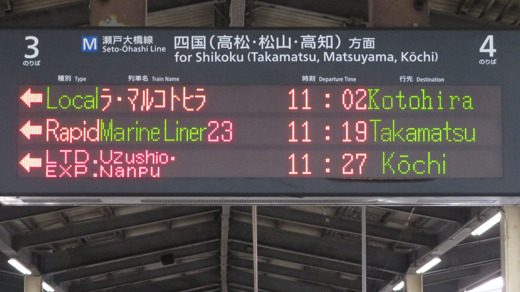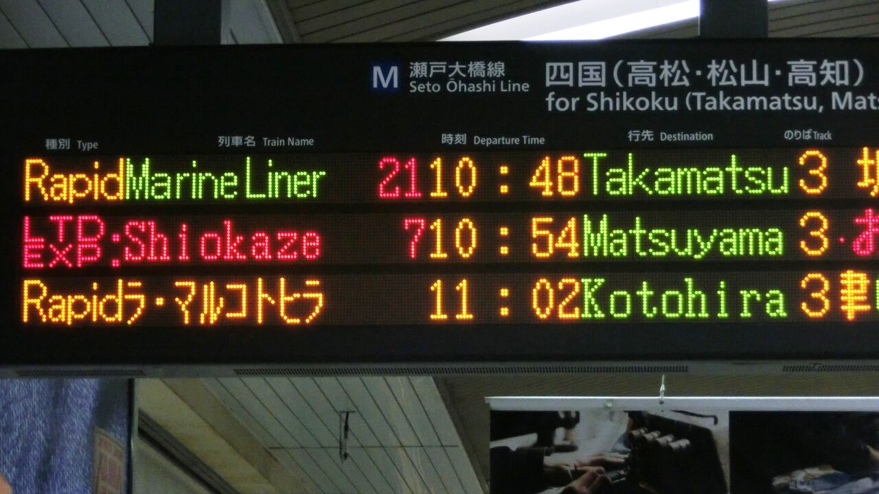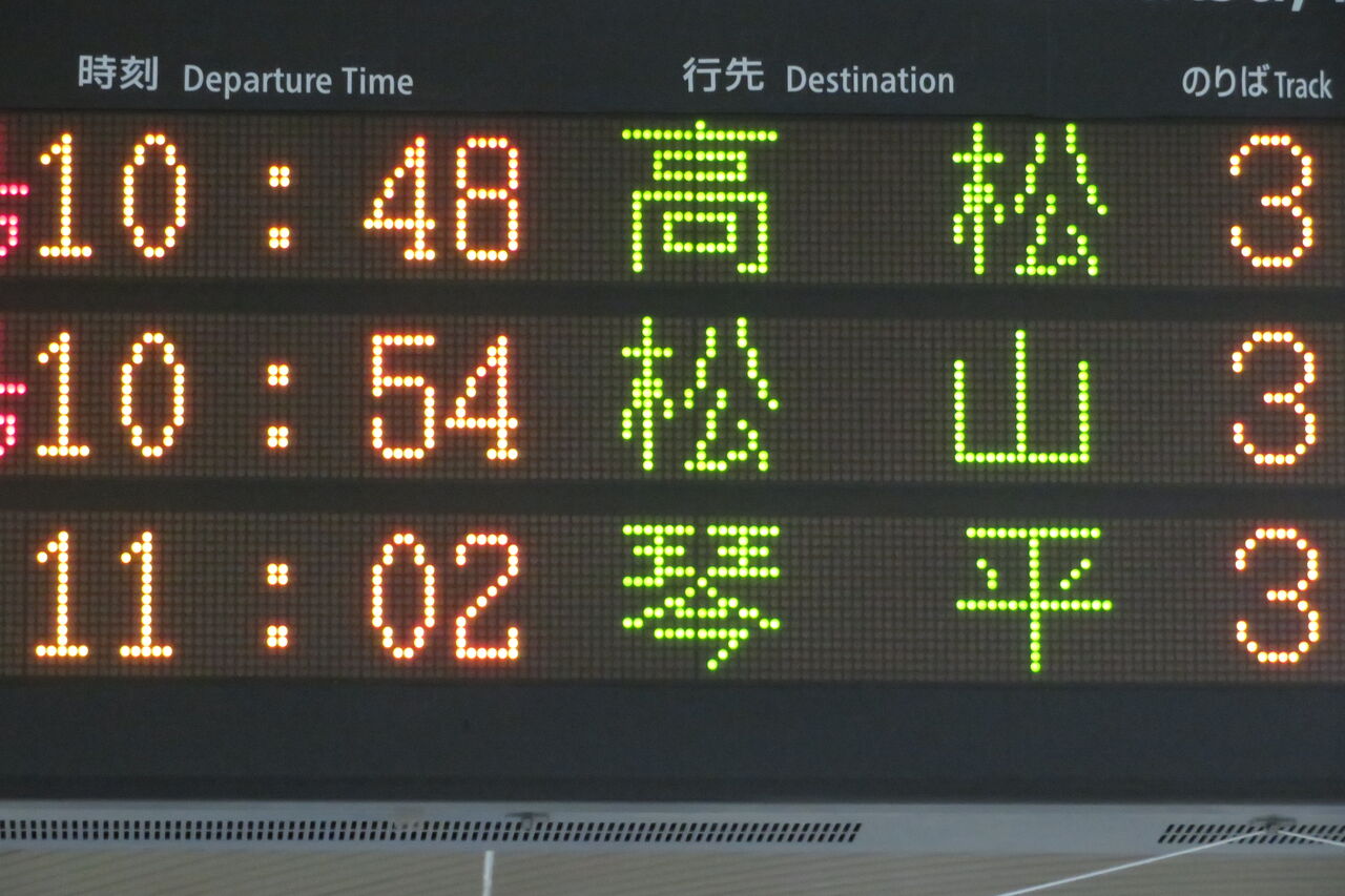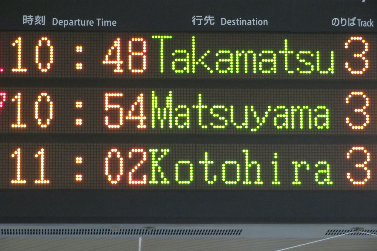 ちなみに、琴平駅の発車標も 「ラ・マルことひら」 の英語表示が 「Local」 でした。