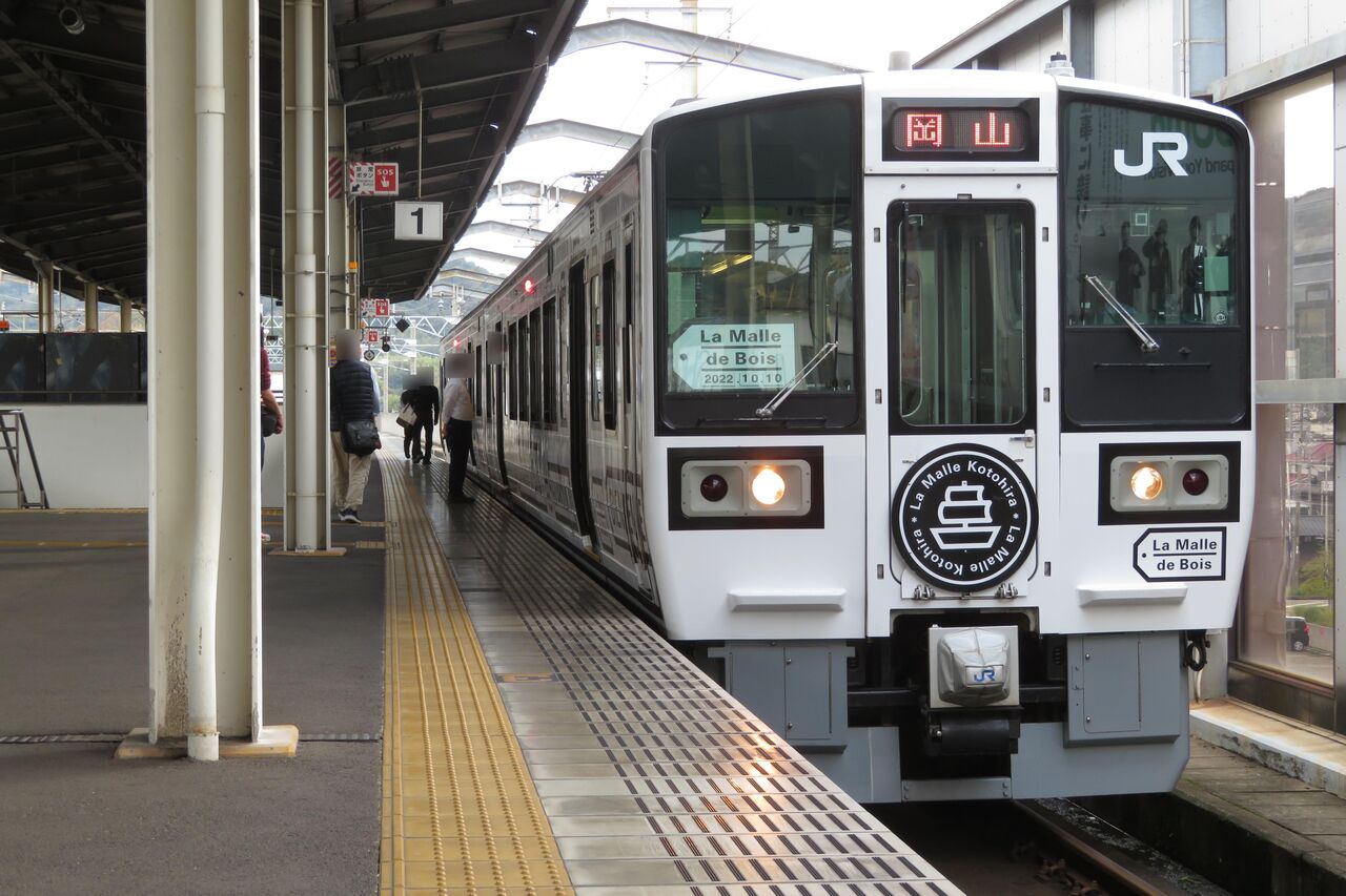今回は、2022年10月に児島駅で撮影した 「ラ・マルことひら」 琴平行きと岡山行きをご紹介。
