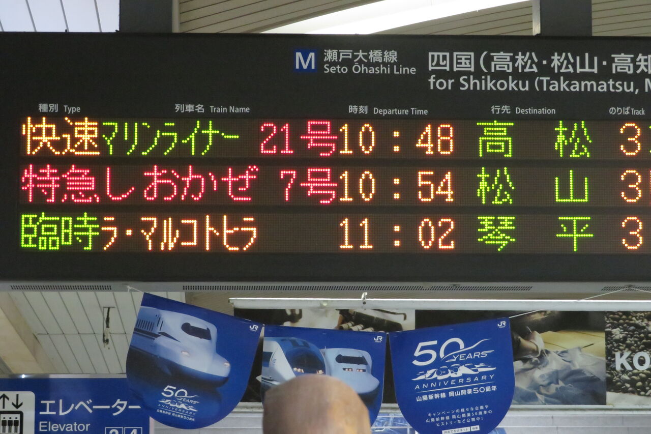 土日以外の祝日は四国に乗り入れ、岡山~琴平駅間を 「ラ・マルことひら」 という列車名で運行します。
