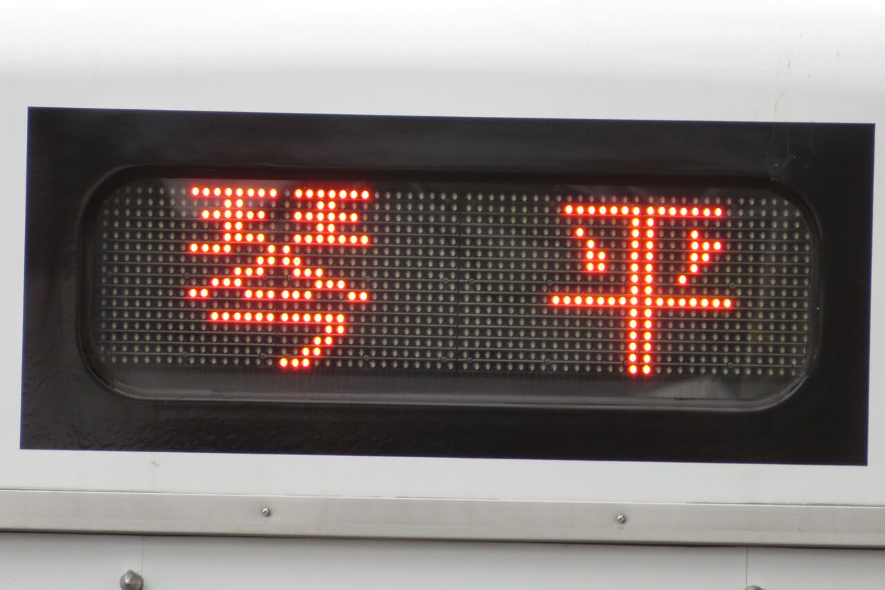 車両前面の行き先表示を拡大して撮影。
