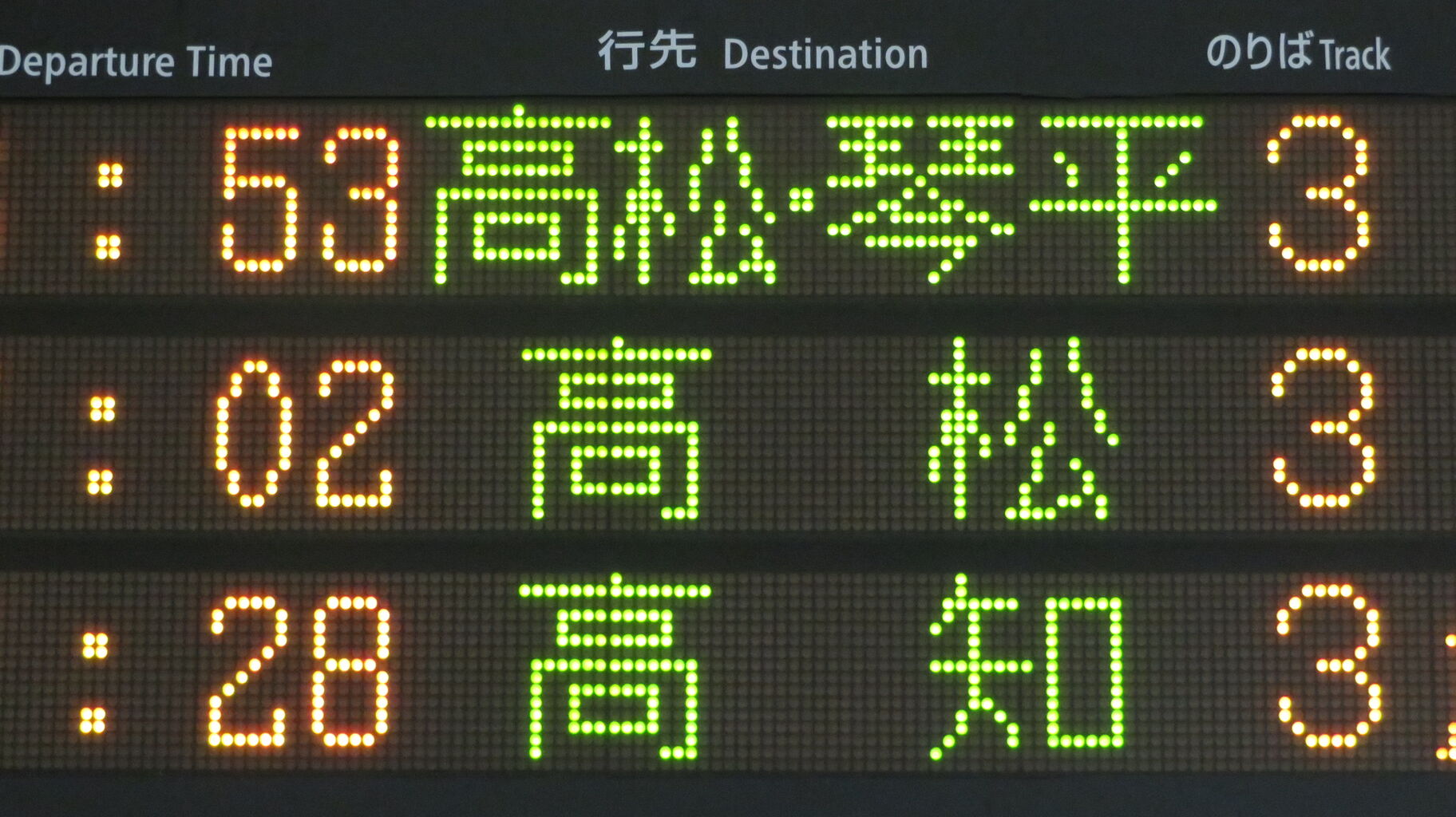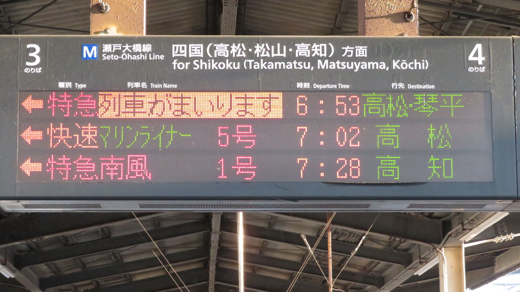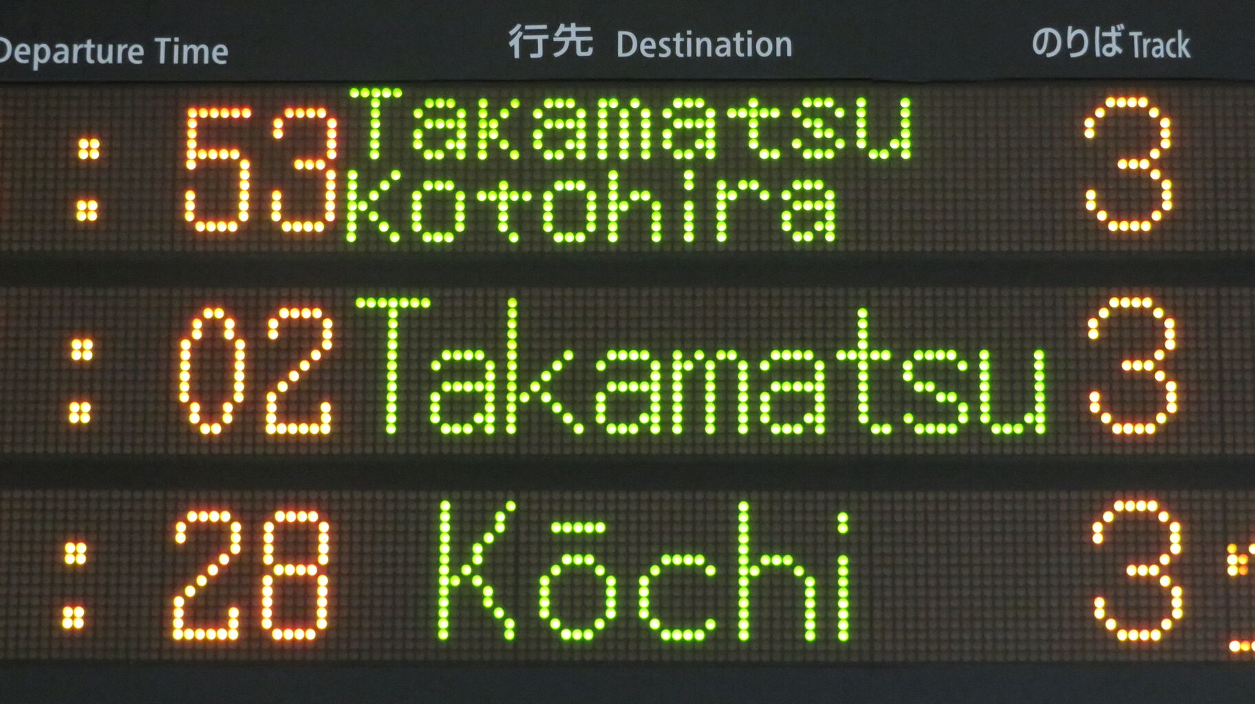 ちなみに、特急南風・うずしお 「高知・徳島行き」 の場合、英語表示は なぜか 「Kōchi」 なんですよね。