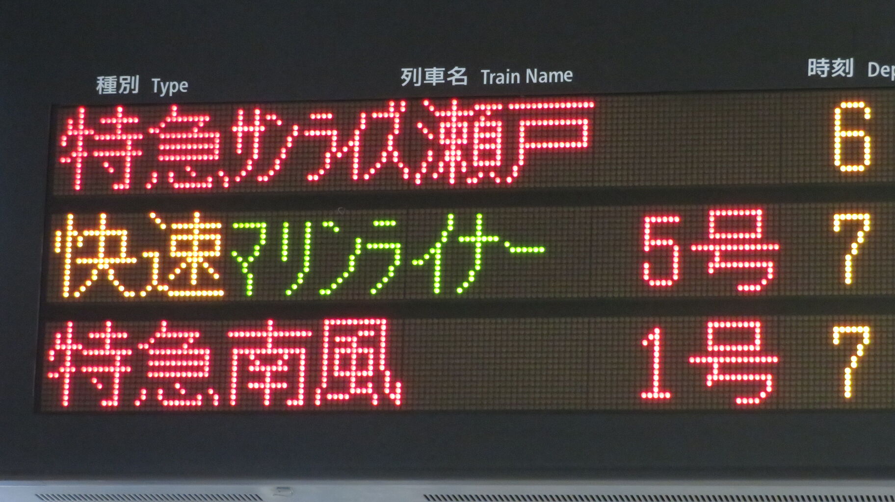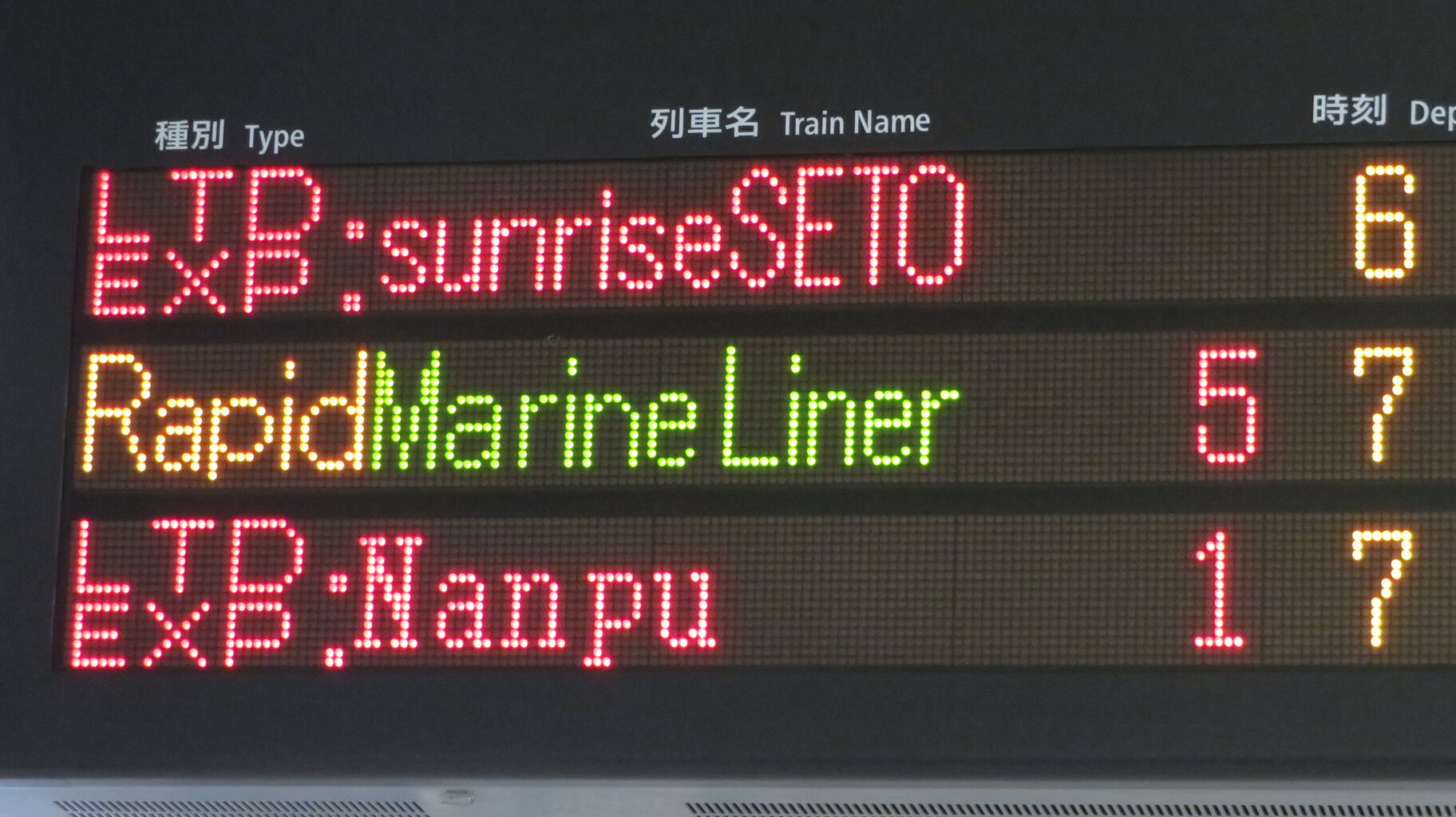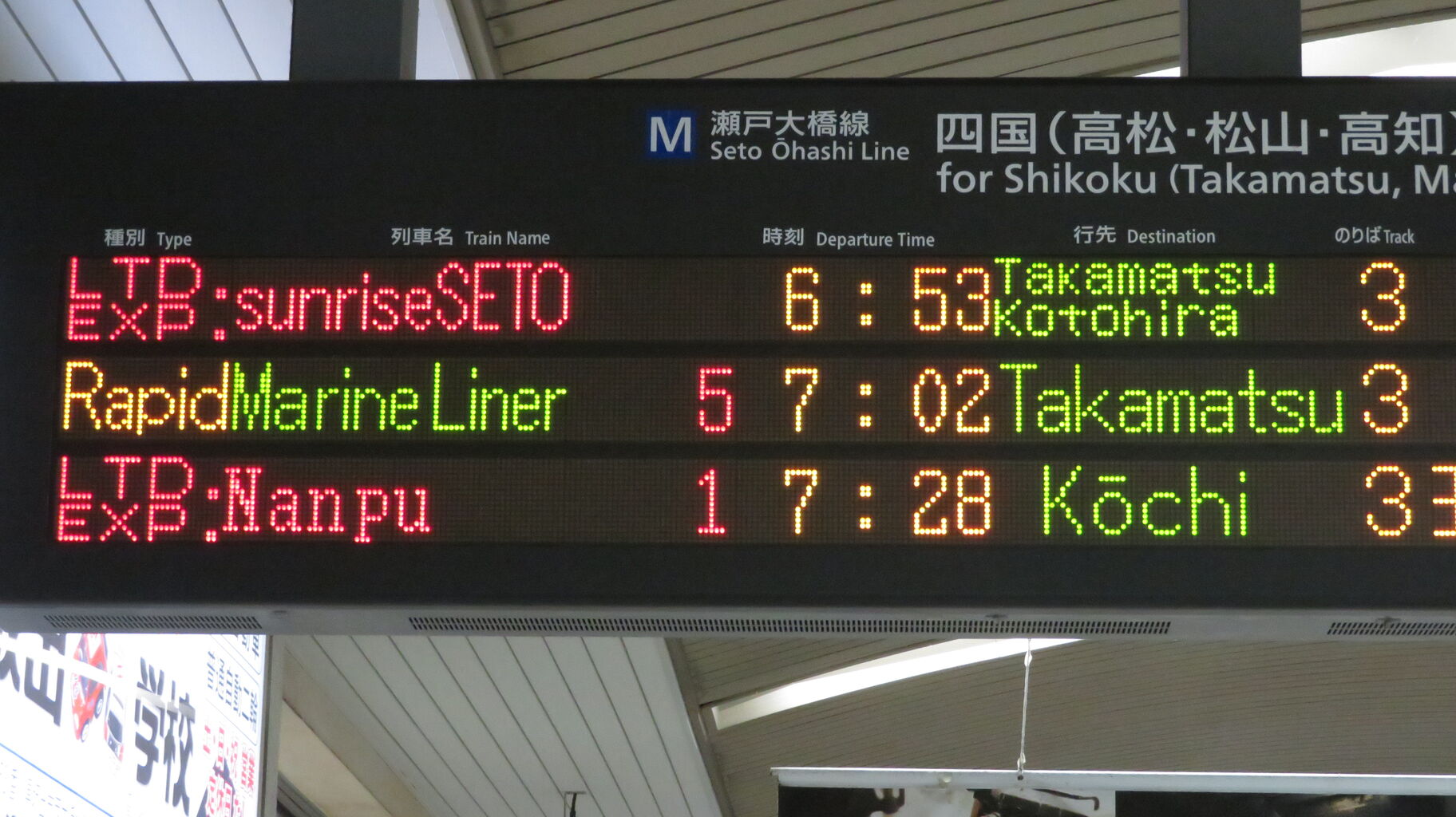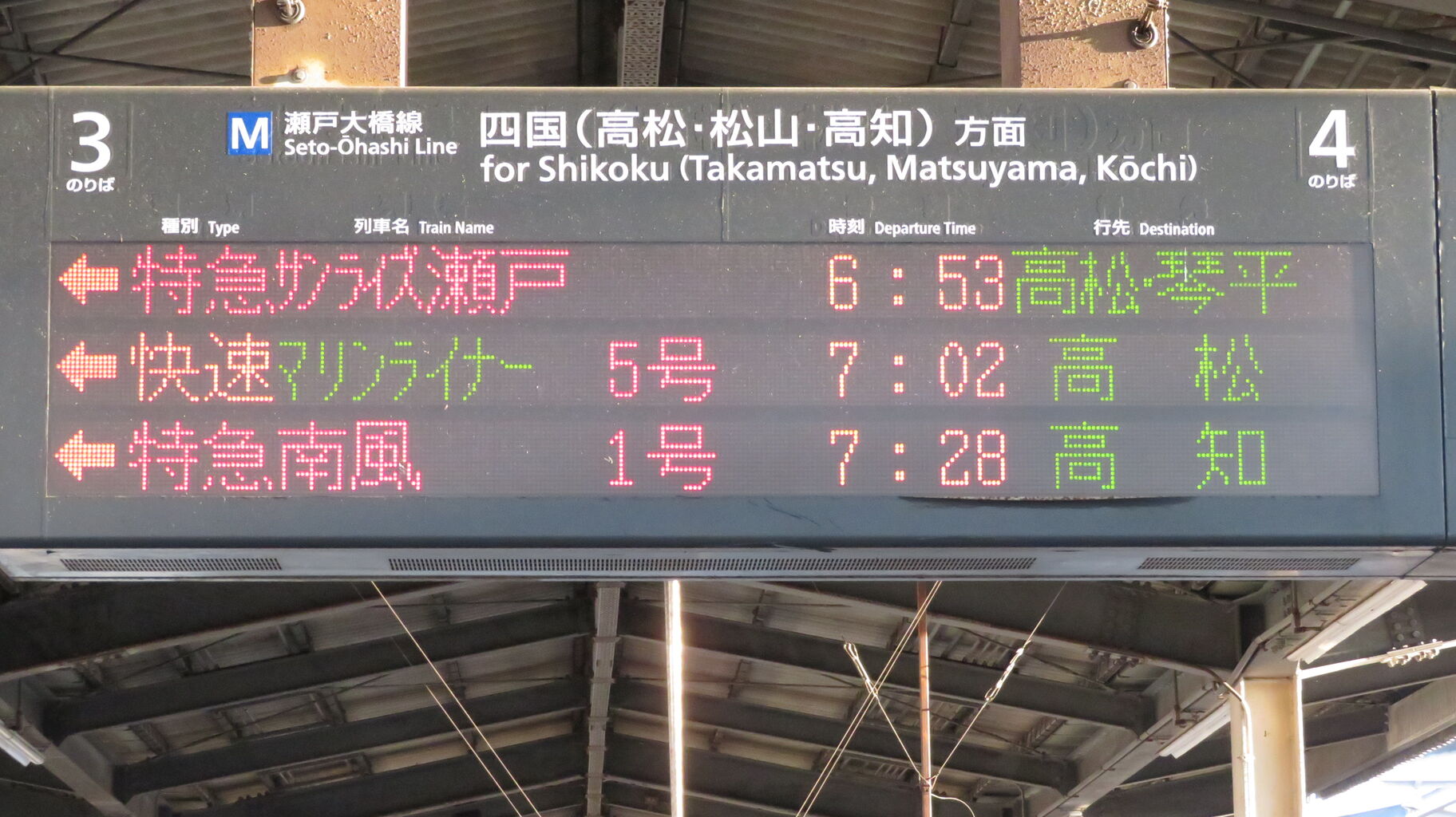 ちなみに、特急南風・うずしお 「高知・徳島行き」 の場合、英語表示は なぜか 「Kōchi」 なんですよね。