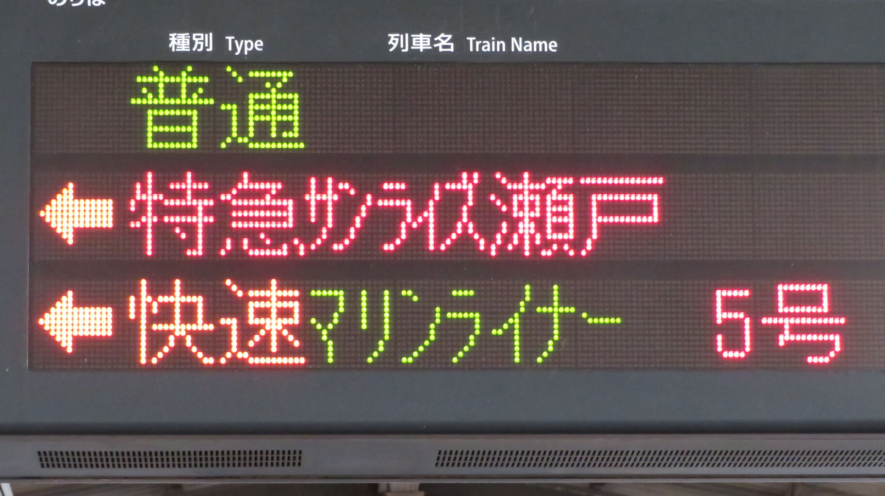 臨時列車 「アンパンマントロッコ」 の場合、琴平行きは このように表示されていました。