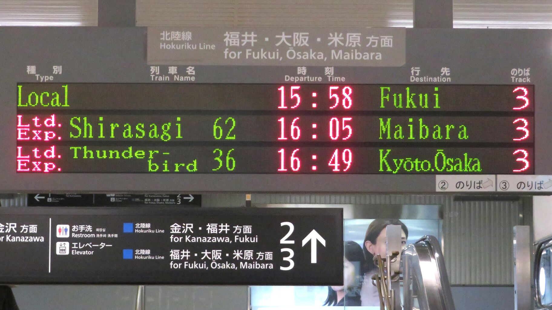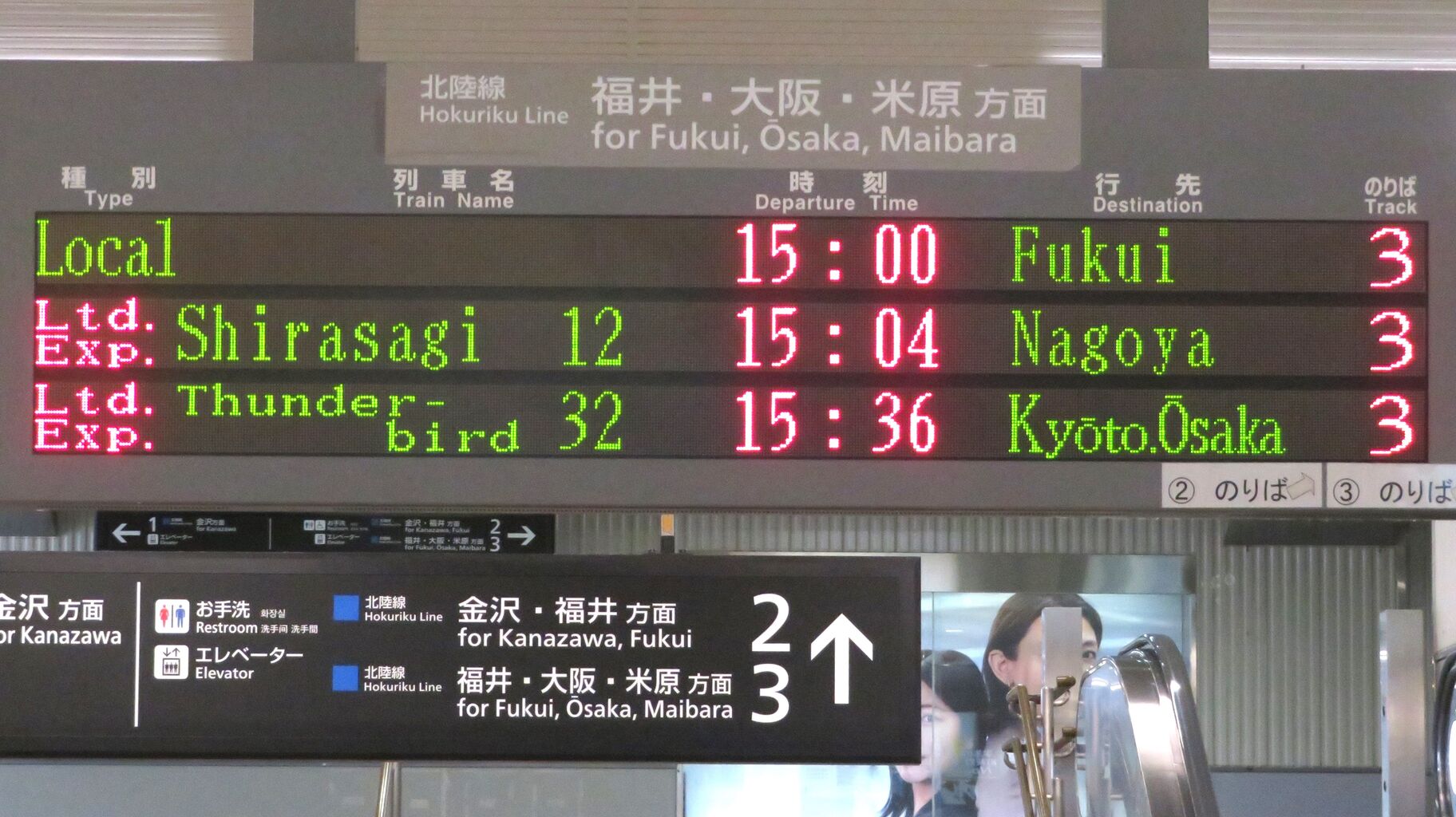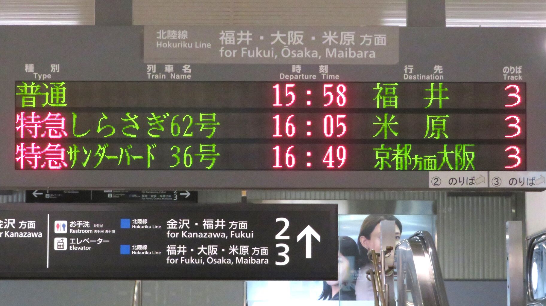 新幹線開業後、この駅に サンダーバードやしらさぎなどの特急列車が来なくなります。