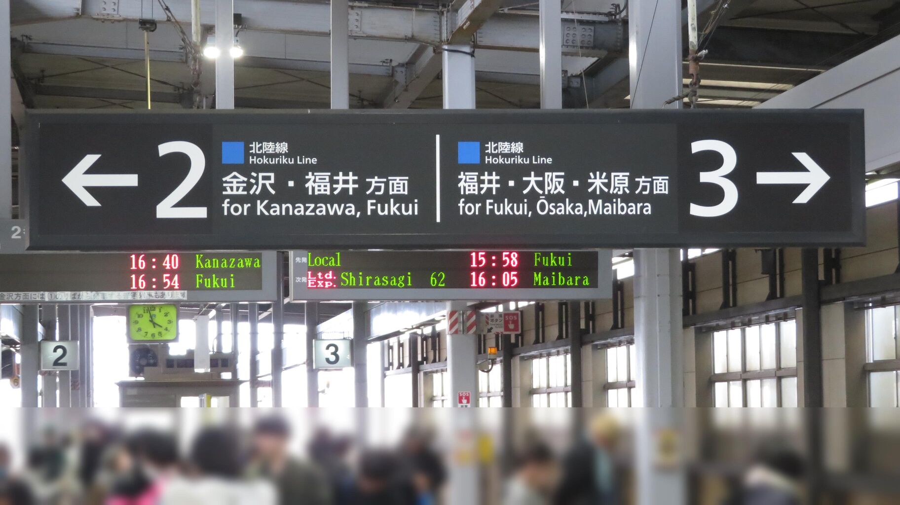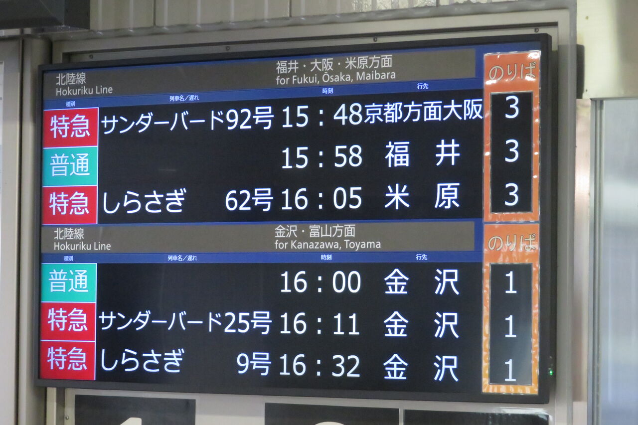 「北陸線 金沢・福井方面」 「北陸線 福井・大阪・米原方面」 の部分がシールになっていました。