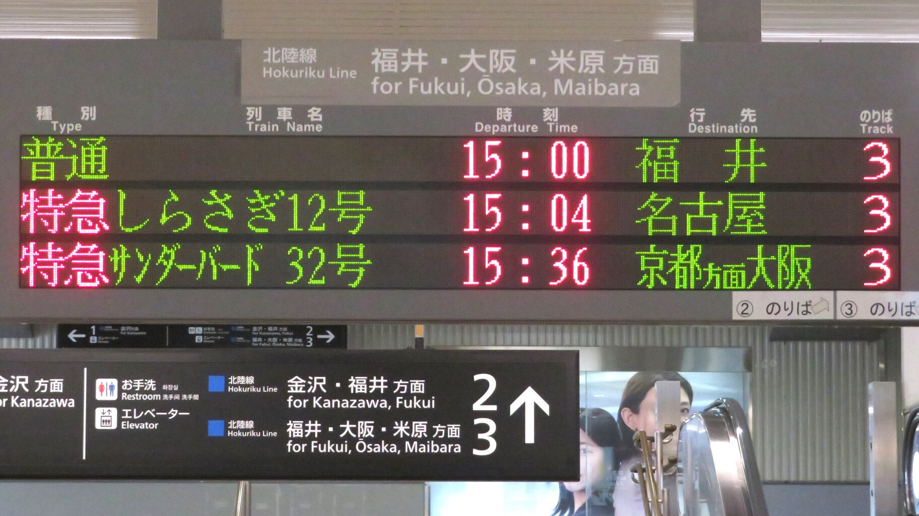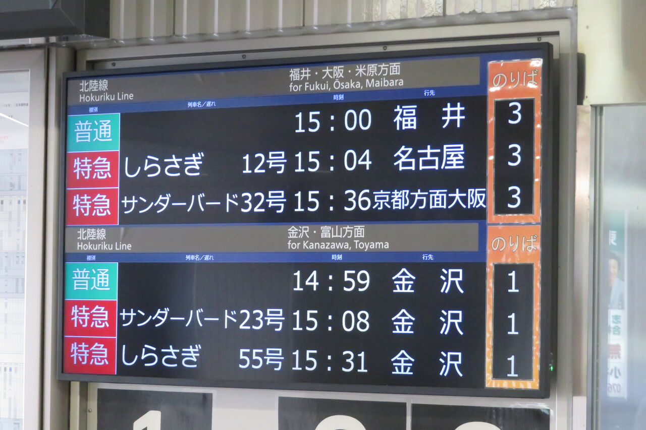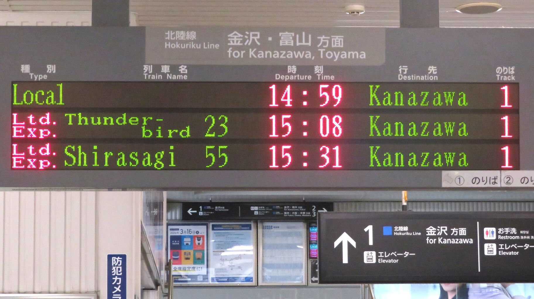 この発車標には、もう既に IRいしかわ鉄道の表示が出ているのでしょうか?
