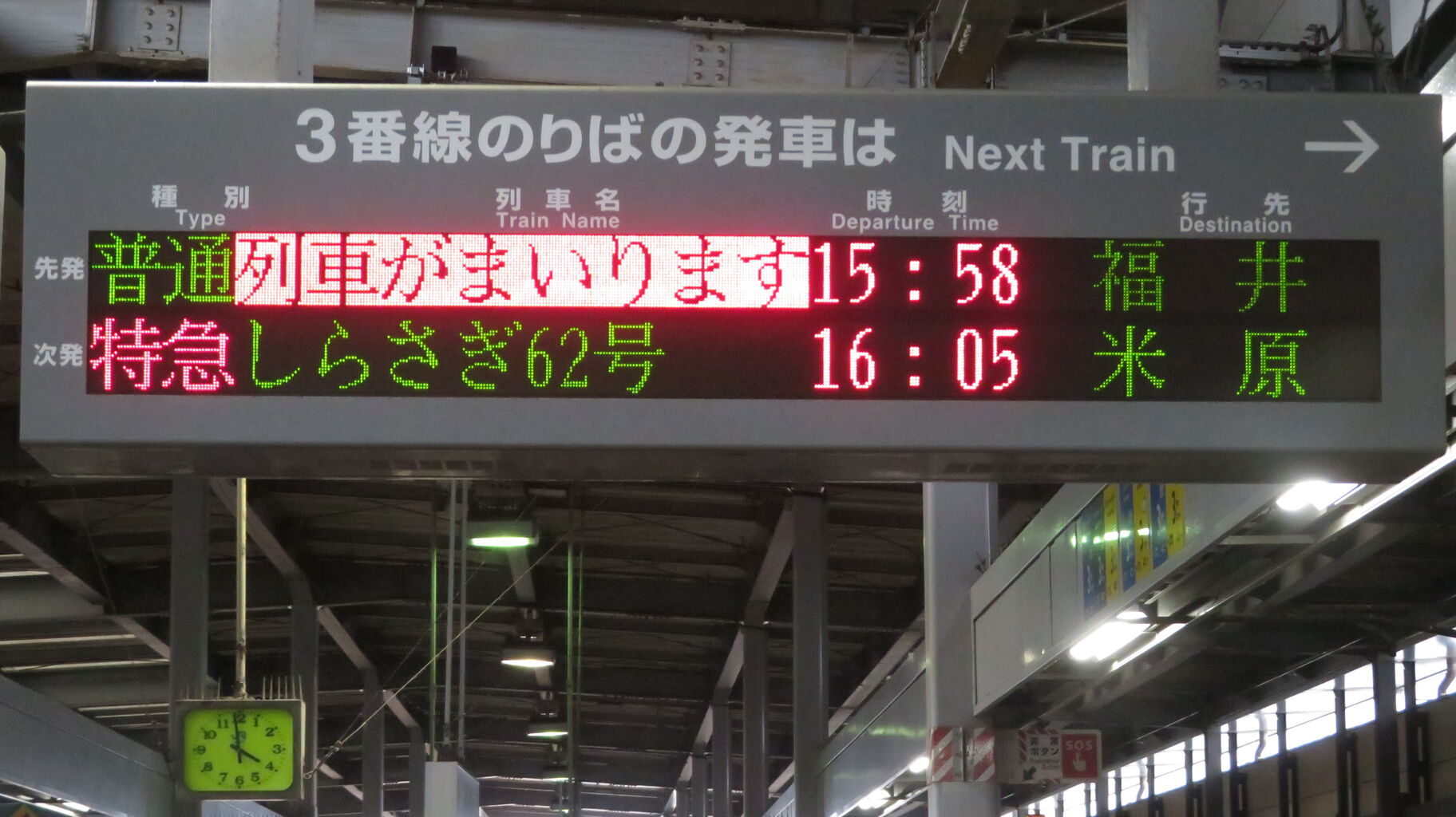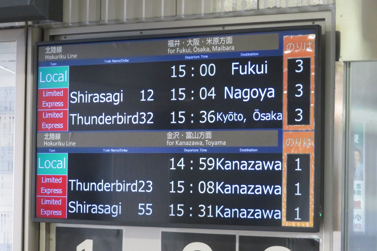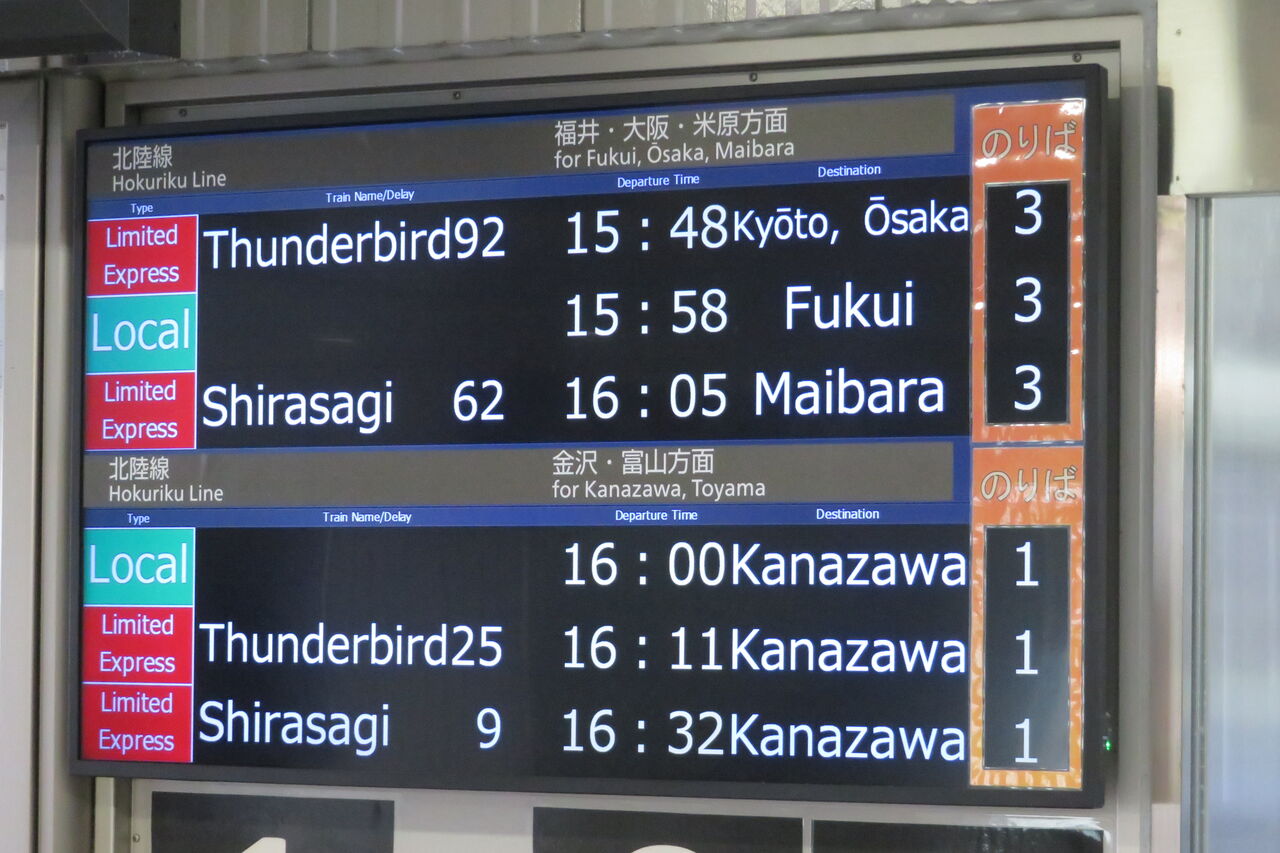 この発車標には、もう既に IRいしかわ鉄道の表示が出ているのでしょうか?
