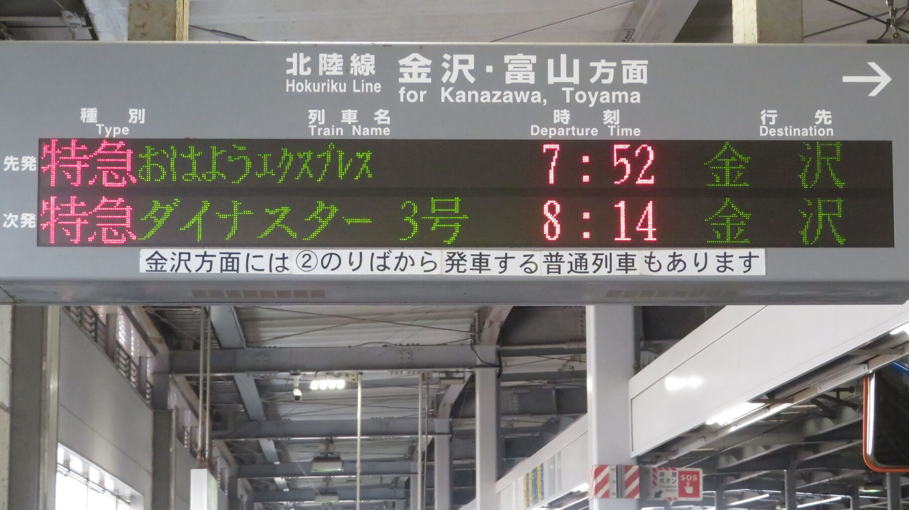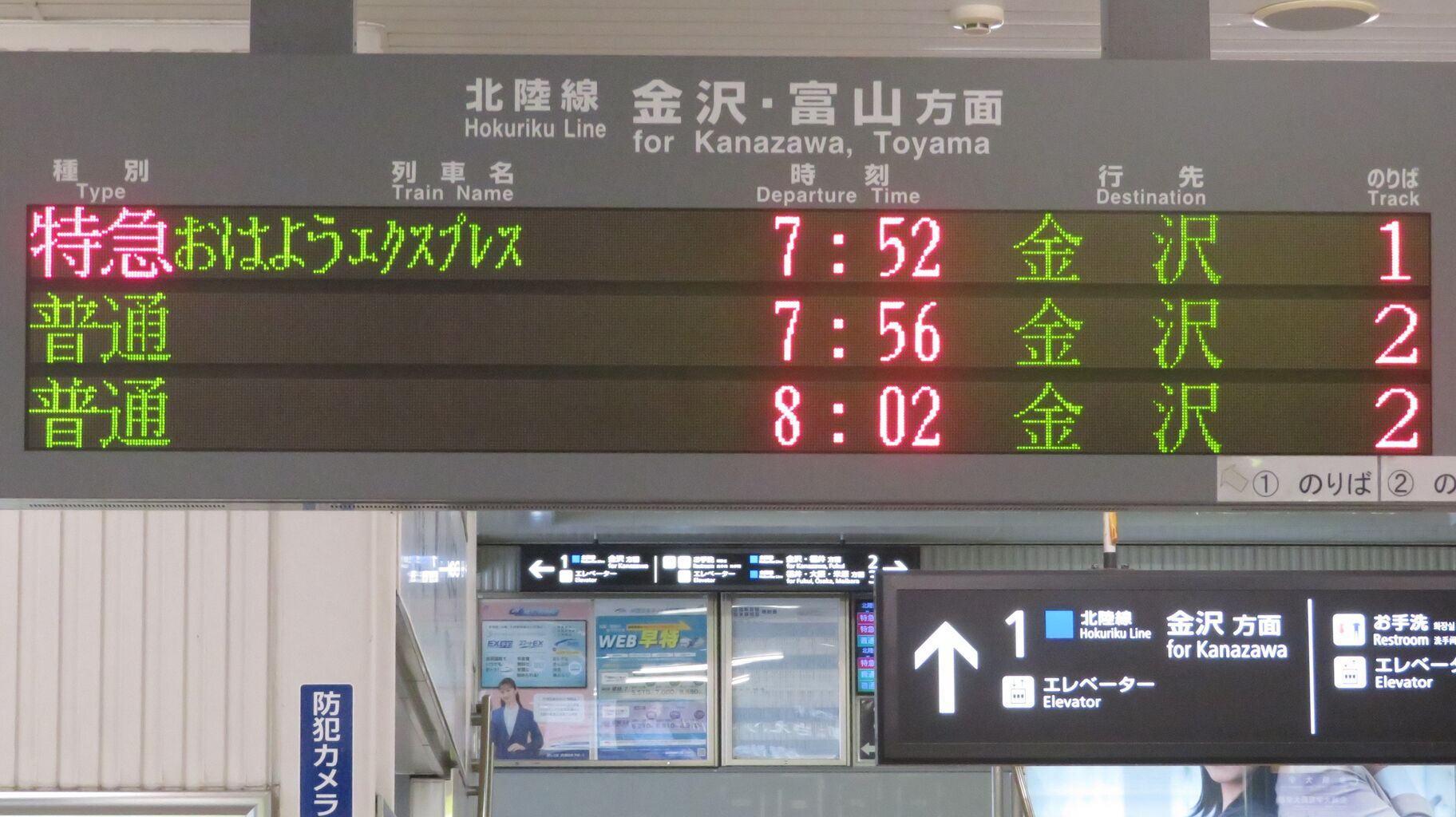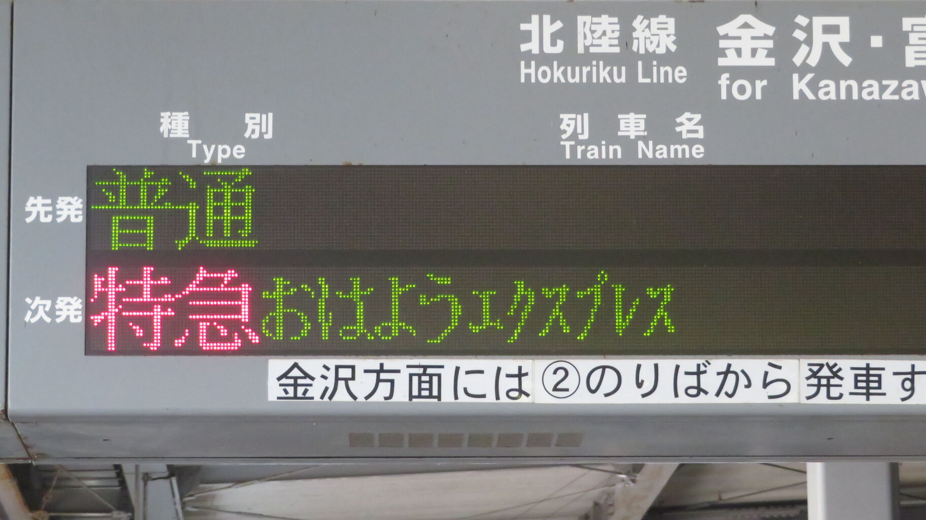 一番下の段に、特急 「おはようエクスプレス」 金沢行きが表示されました。