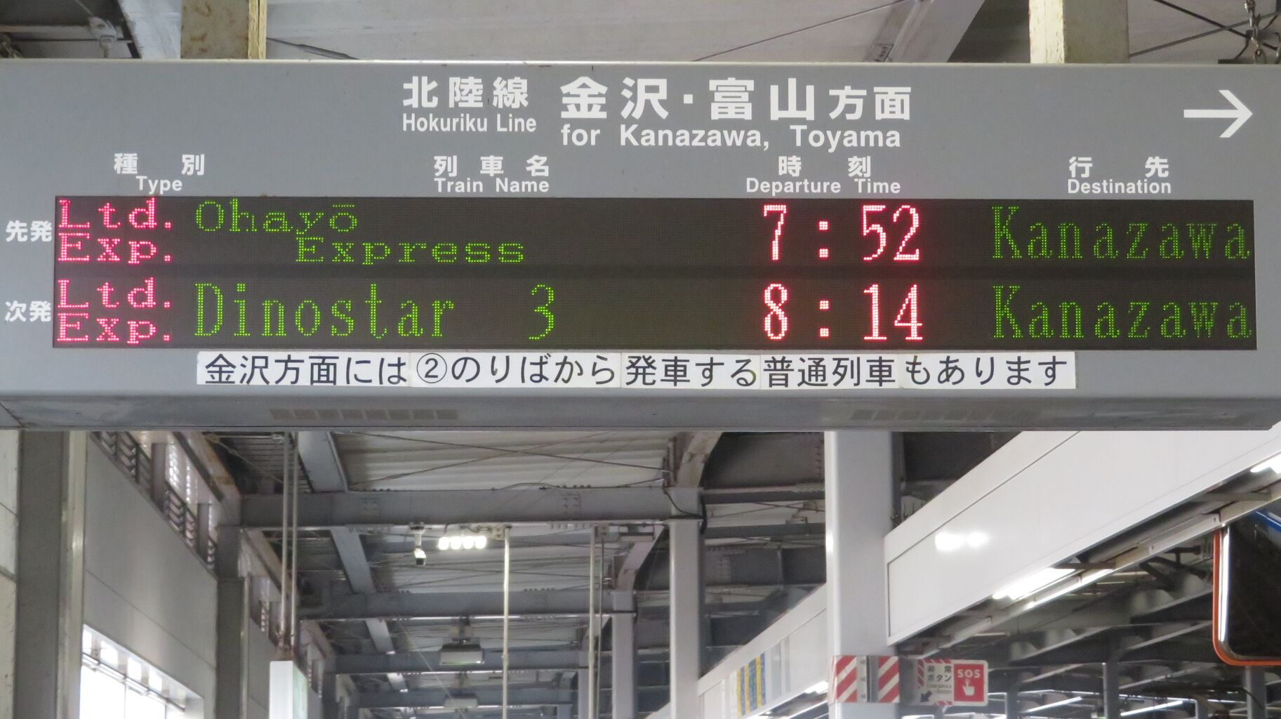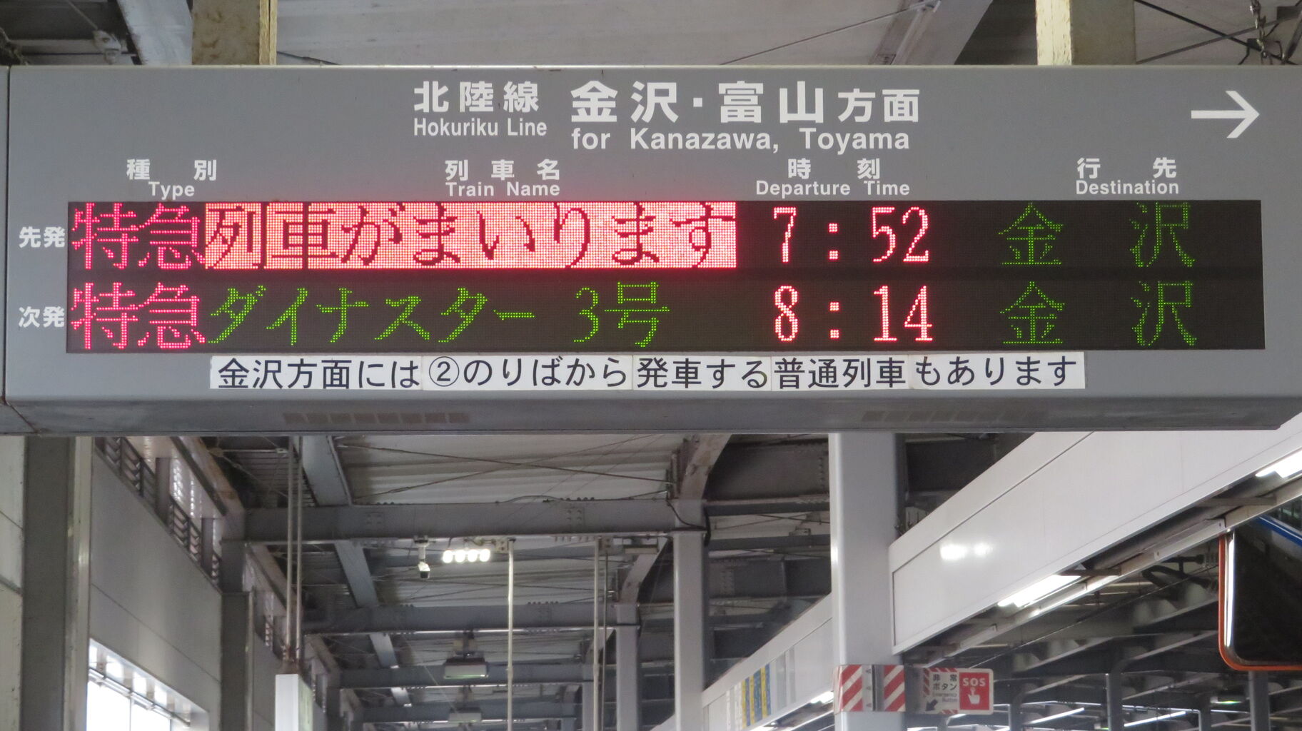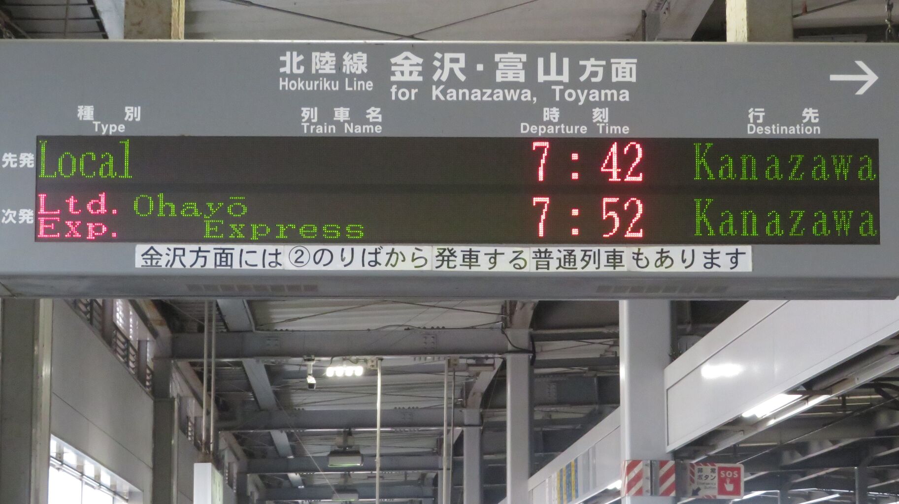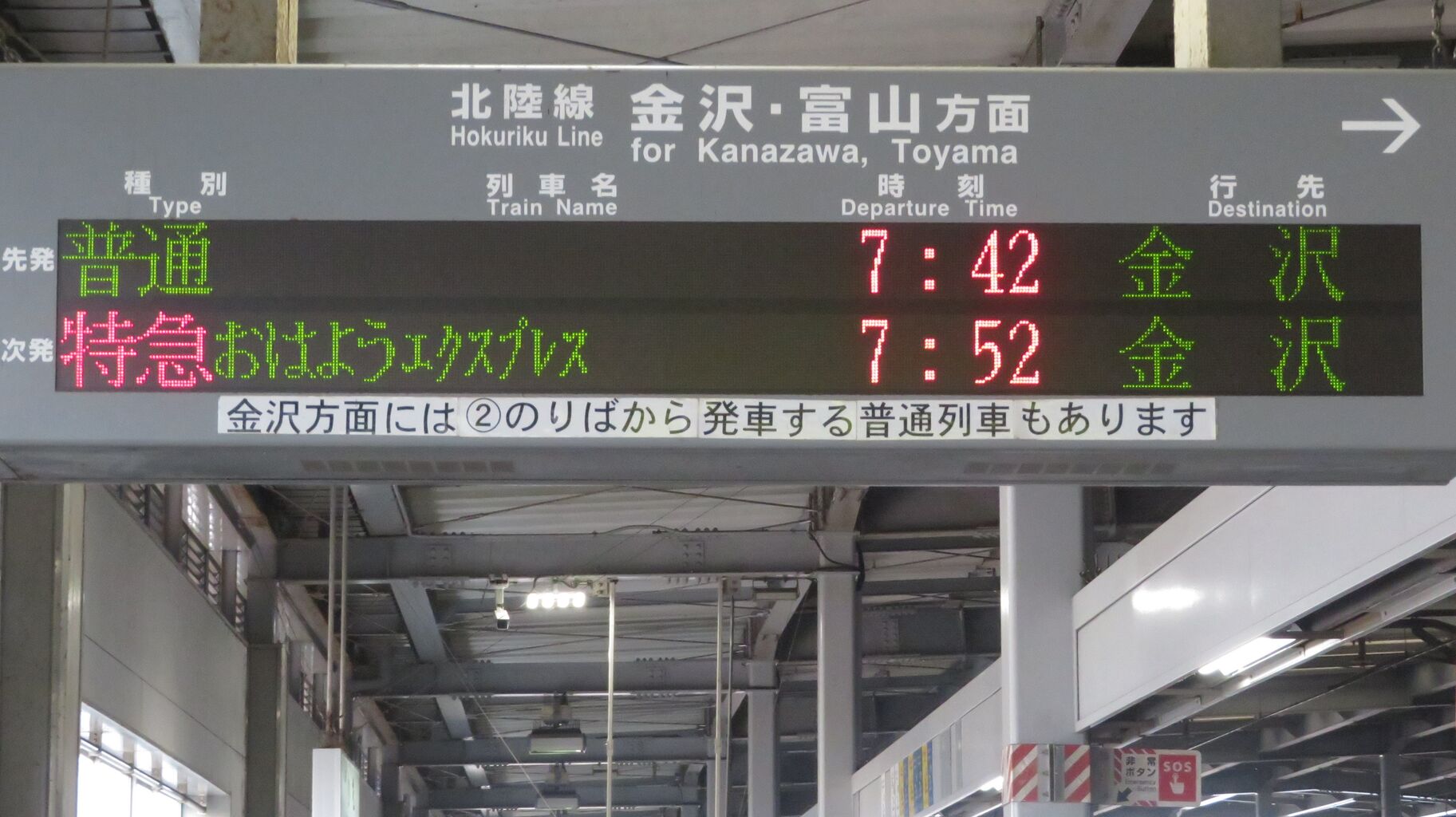 一番下の段に、特急 「おはようエクスプレス」 金沢行きが表示されました。