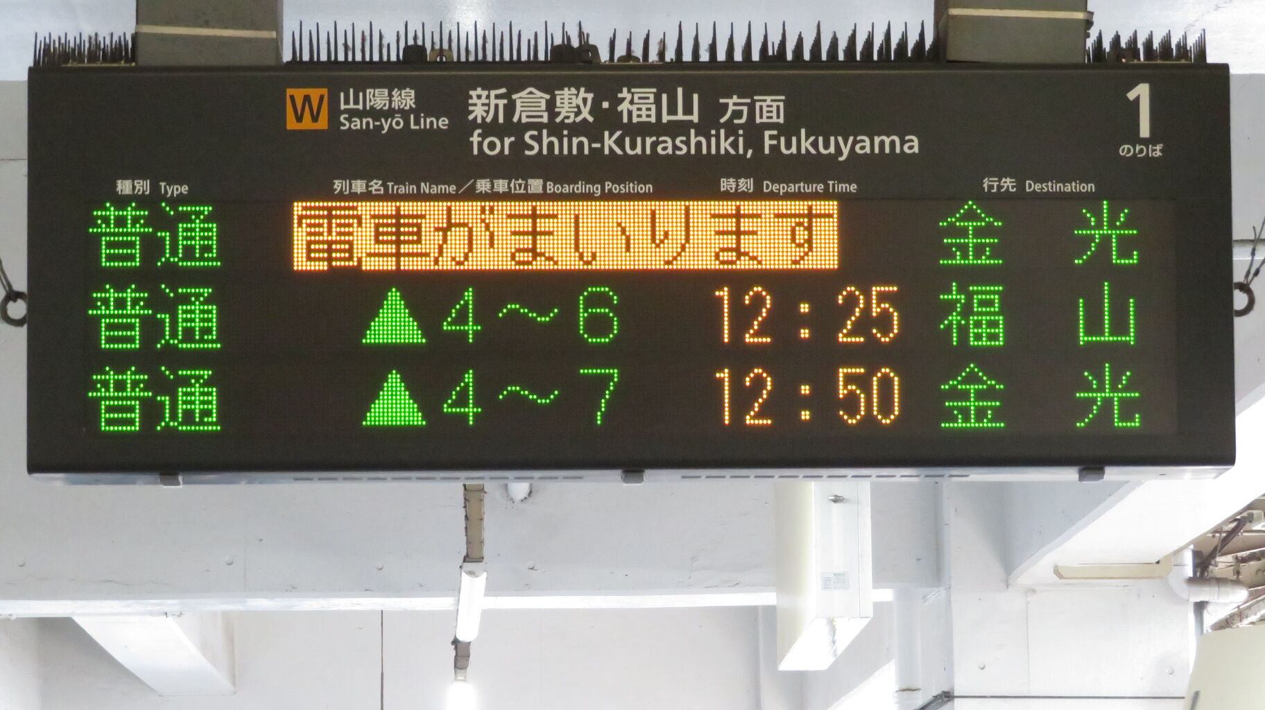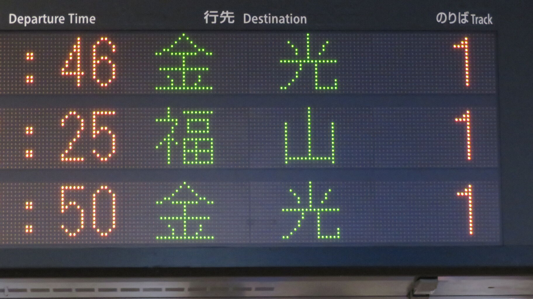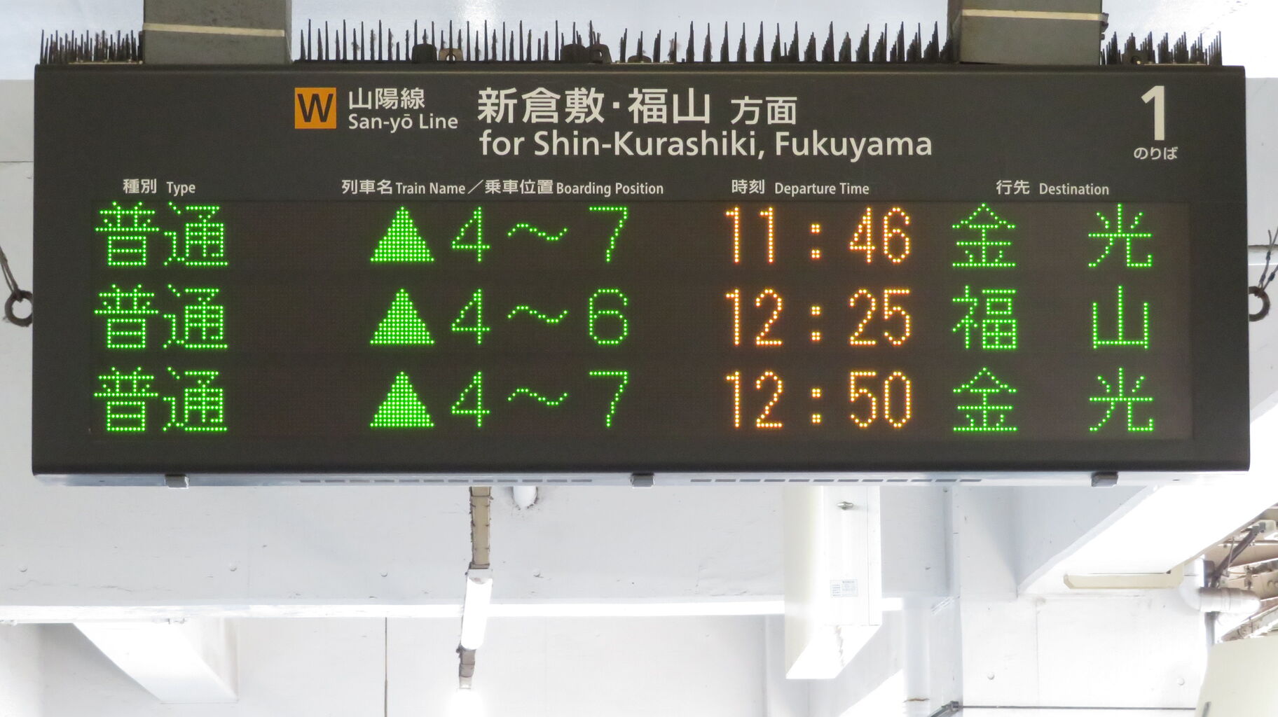 11時台と12時台は、福山方面行きと金光行きが交互に運転されるようになっています。