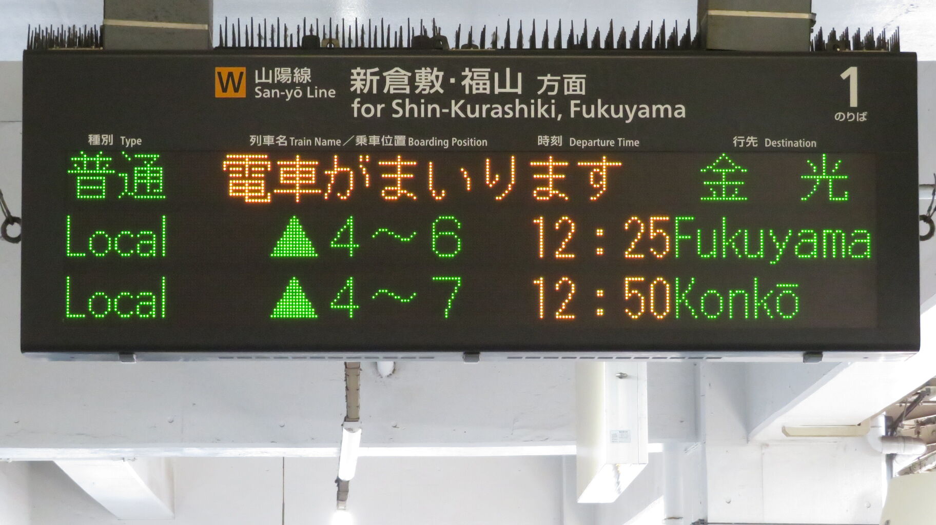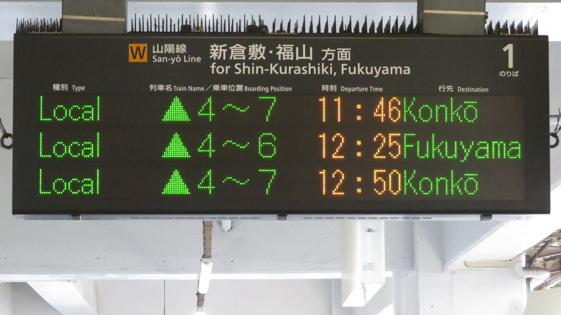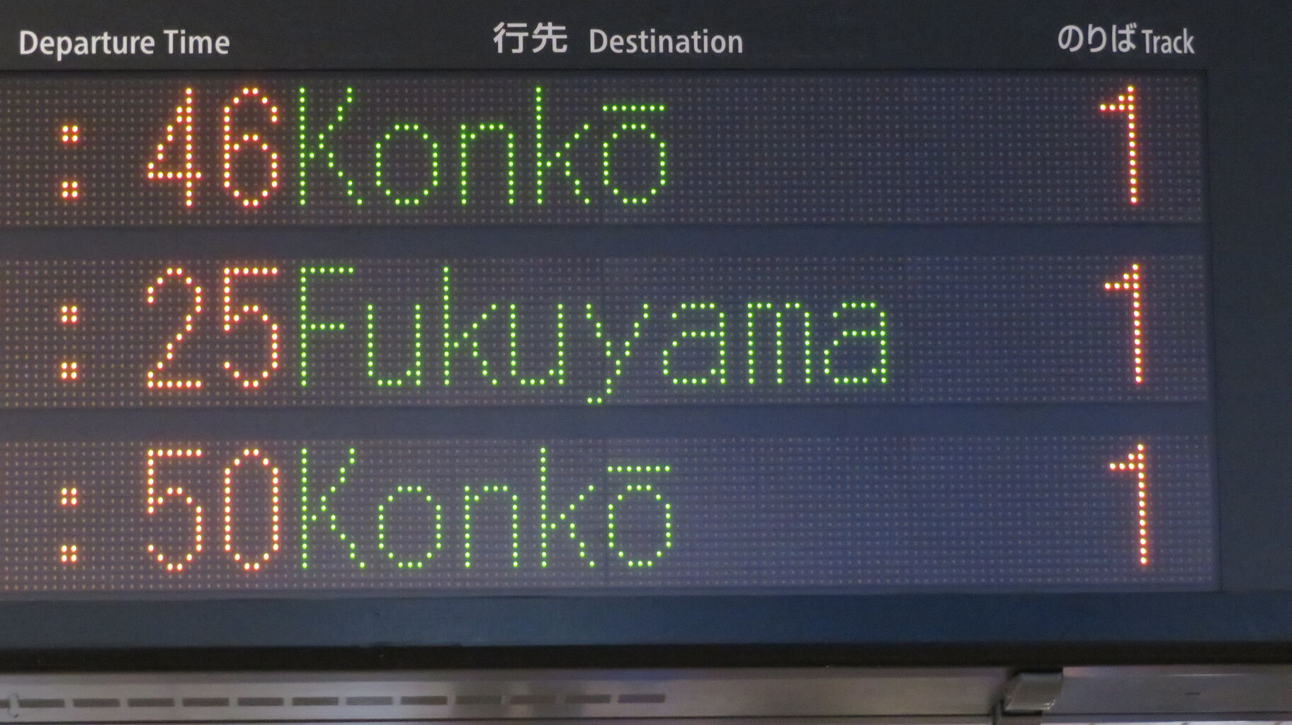 11時台と12時台は、福山方面行きと金光行きが交互に運転されるようになっています。