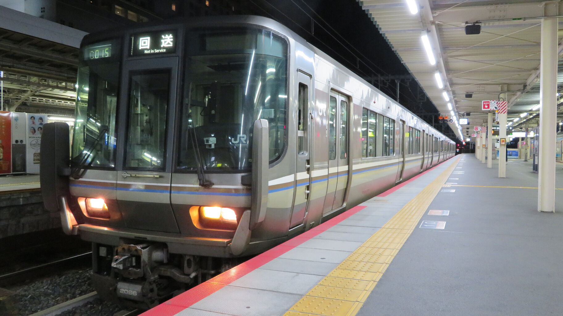 8番のりばに、223系の回送列車が入線してきました。