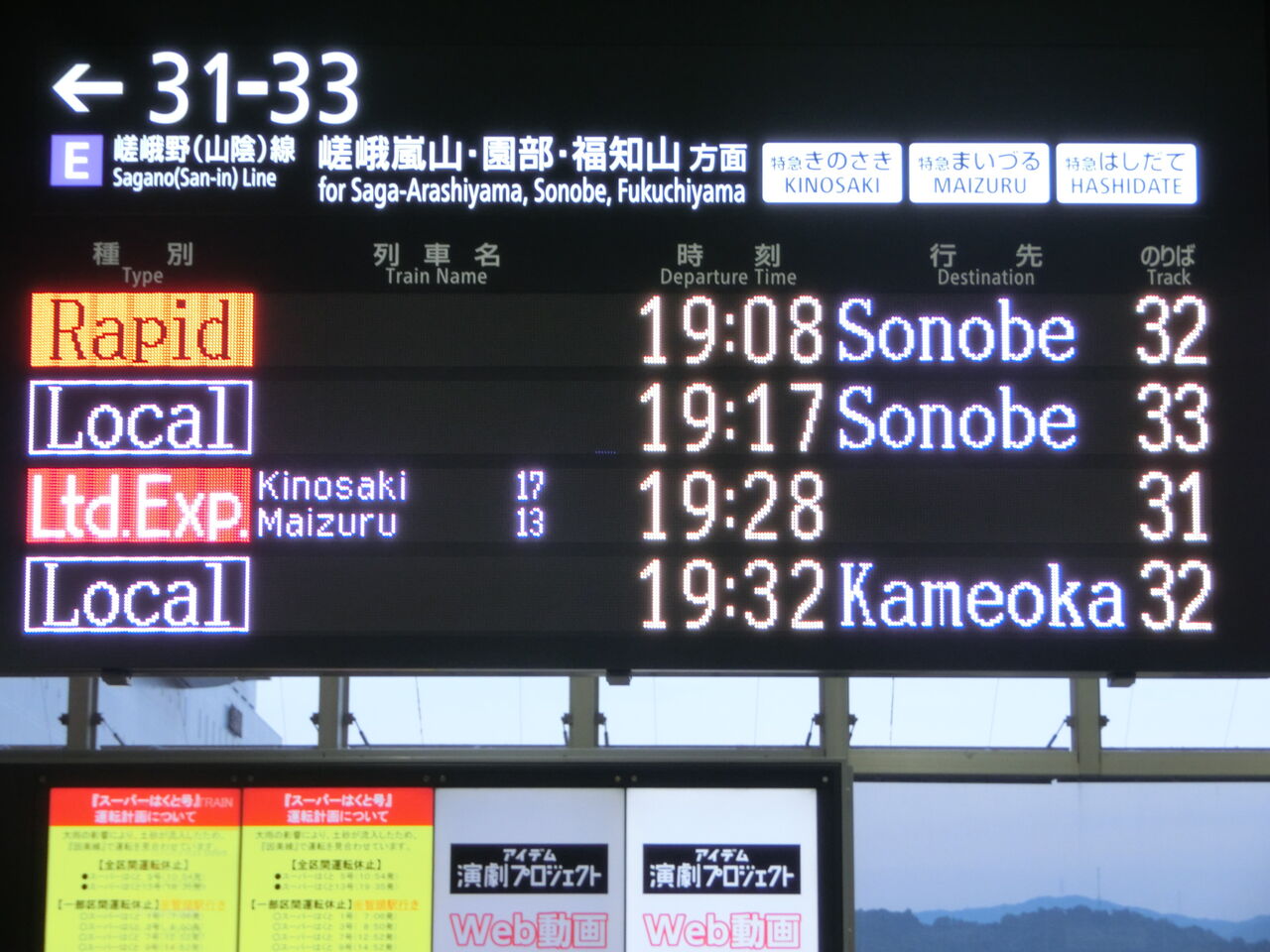 (なお、2021年現在は 18:28発が 「豊岡・東舞鶴行き」 、19:28発が 「福知山・東舞鶴行き」 となっています)