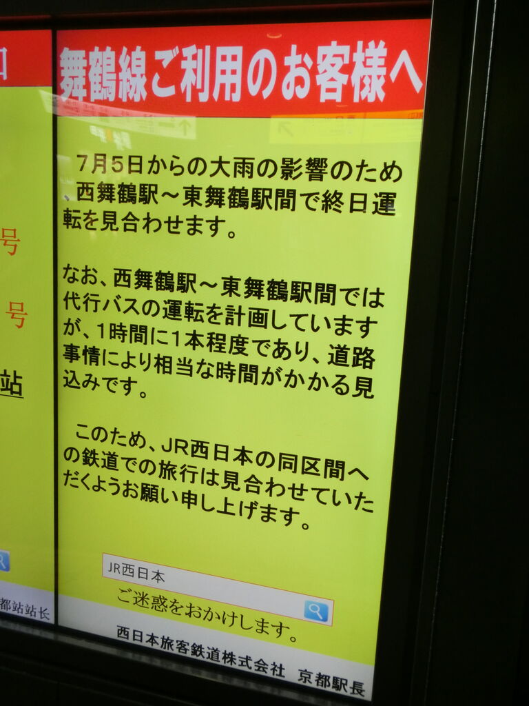 綾部~西舞鶴駅間は7月14日に、西舞鶴~東舞鶴駅間は7月19日に運転を再開しています。