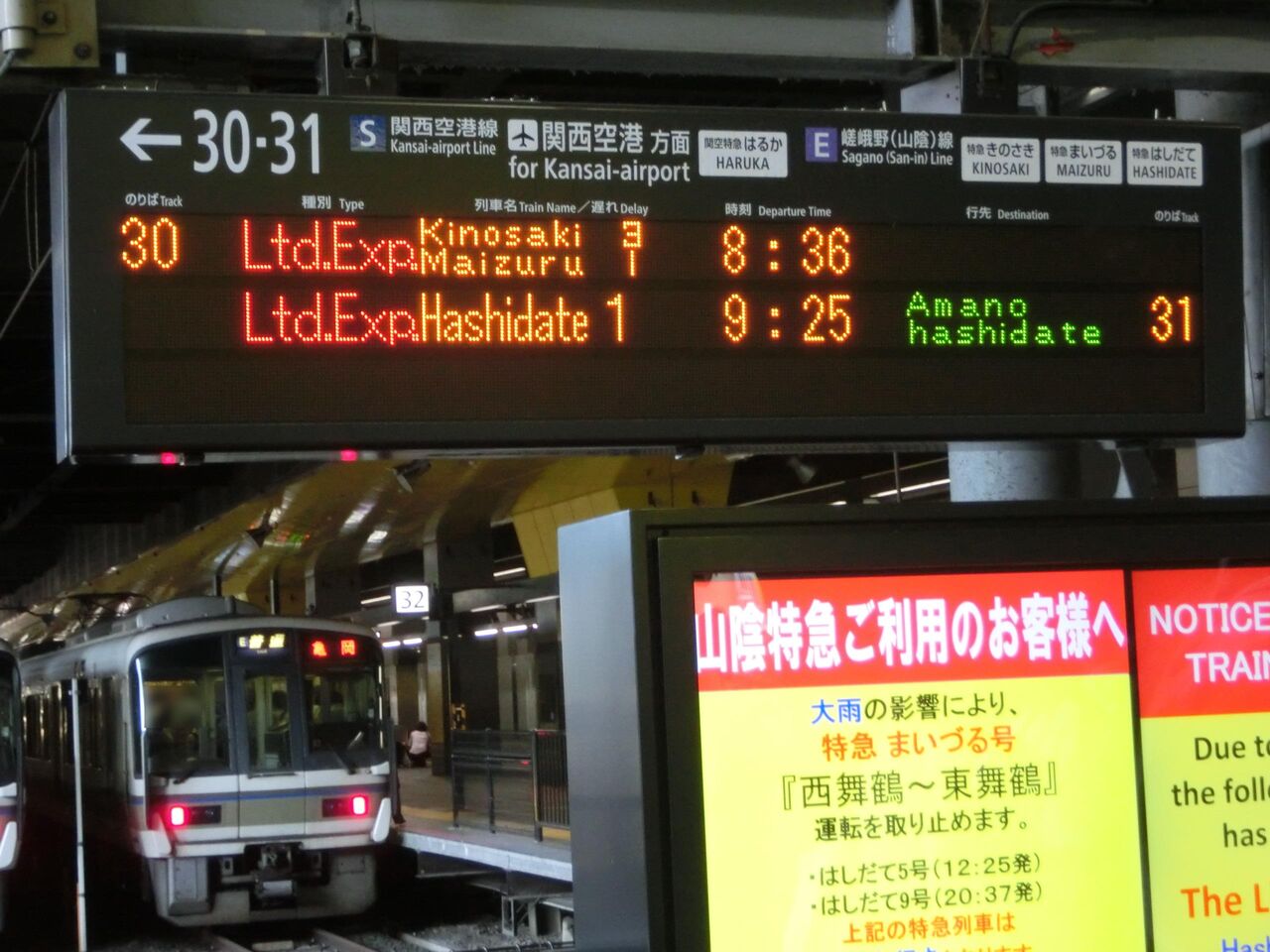 なお、2021年現在、8:38発の特急列車は はしだて号と併結運転した 「天橋立・東舞鶴行き」 となっており、31番のりばから発車します。
