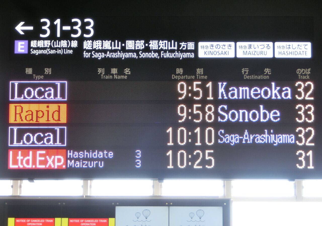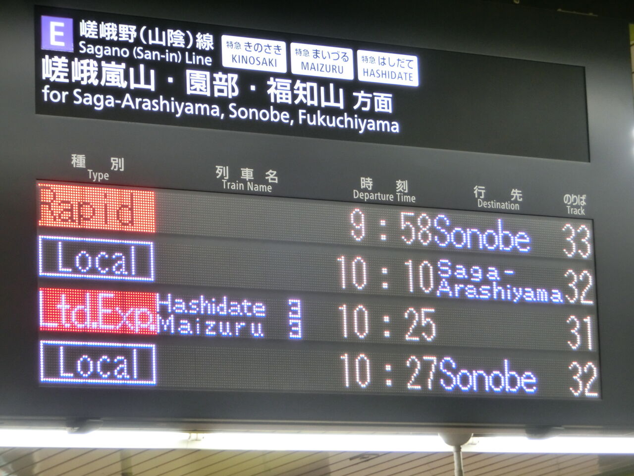 通常であれば 行き先欄に 「天橋立・東舞鶴」 と表示されるのですが、こちらも今回の行き先変更に対応しておらず、無表示でした。