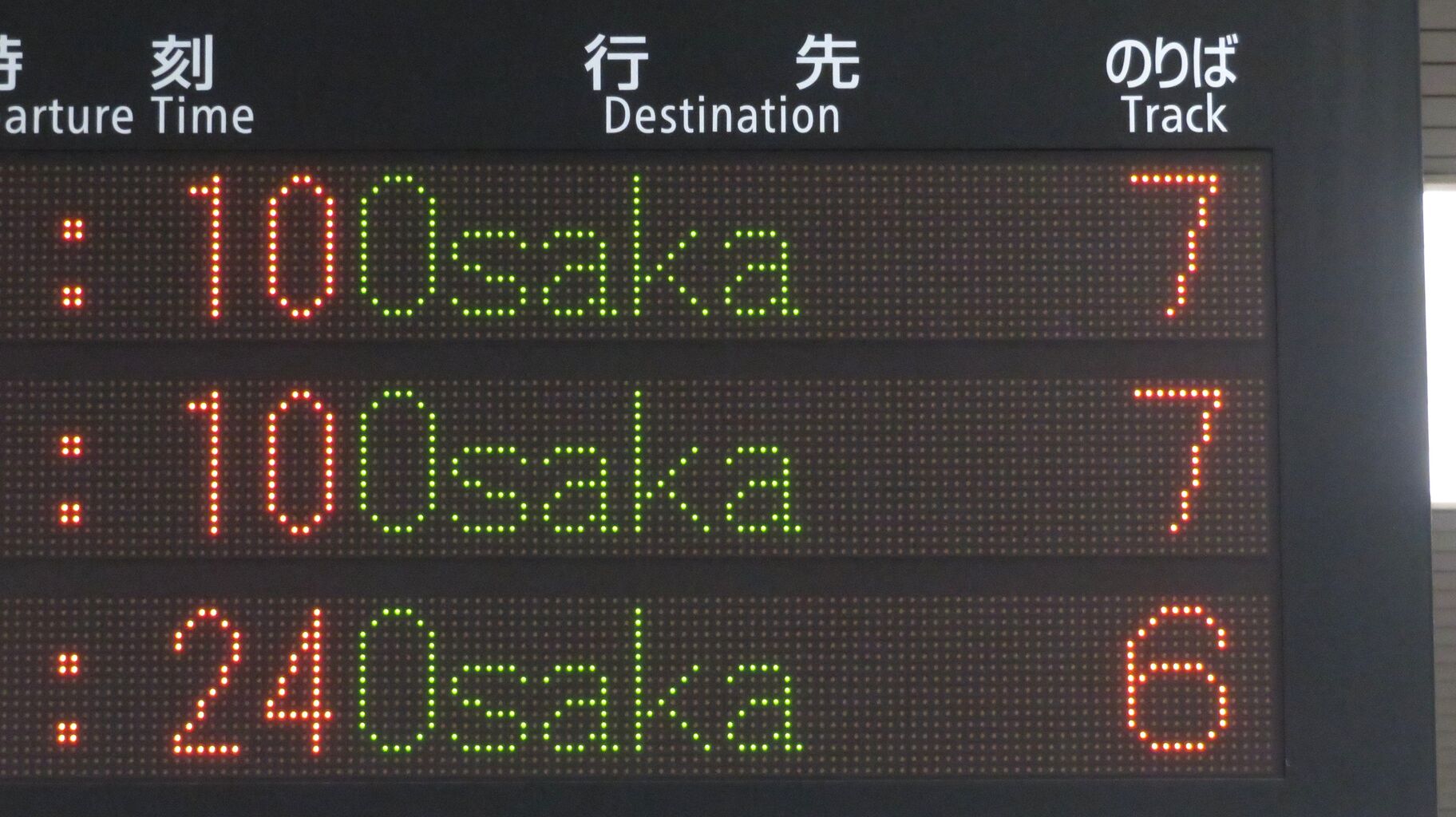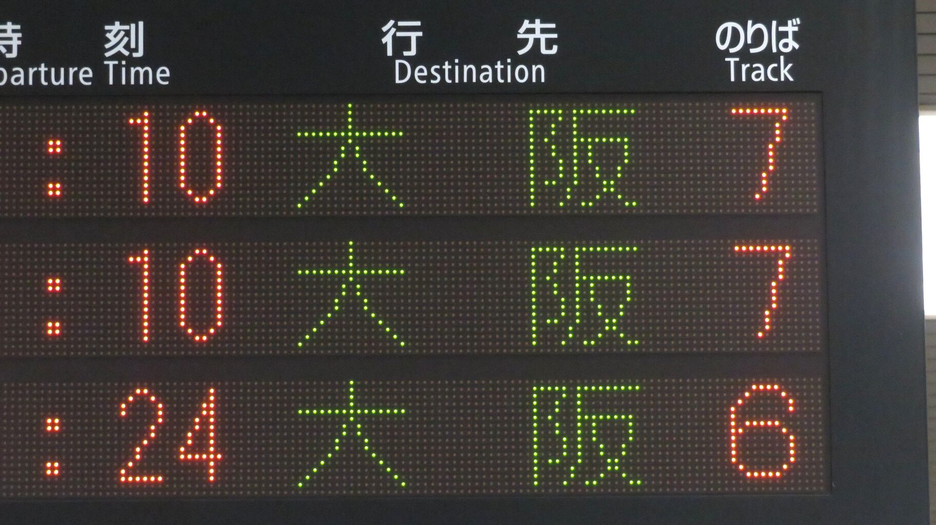 大阪行きの表示も拡大して撮ってみました。