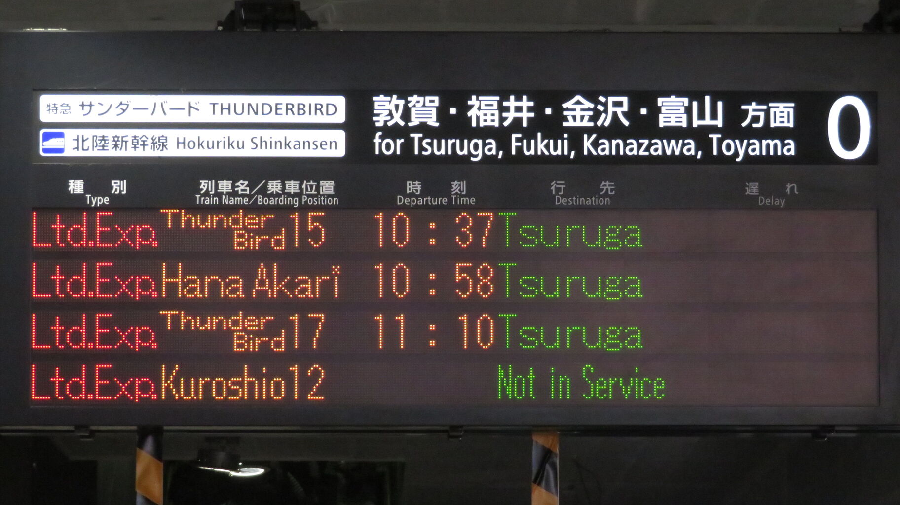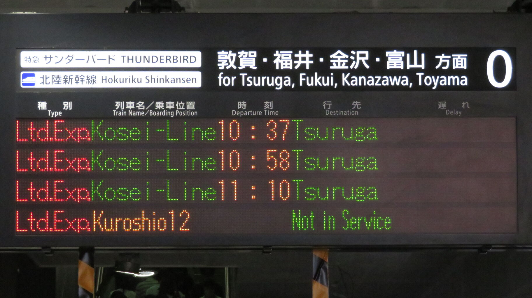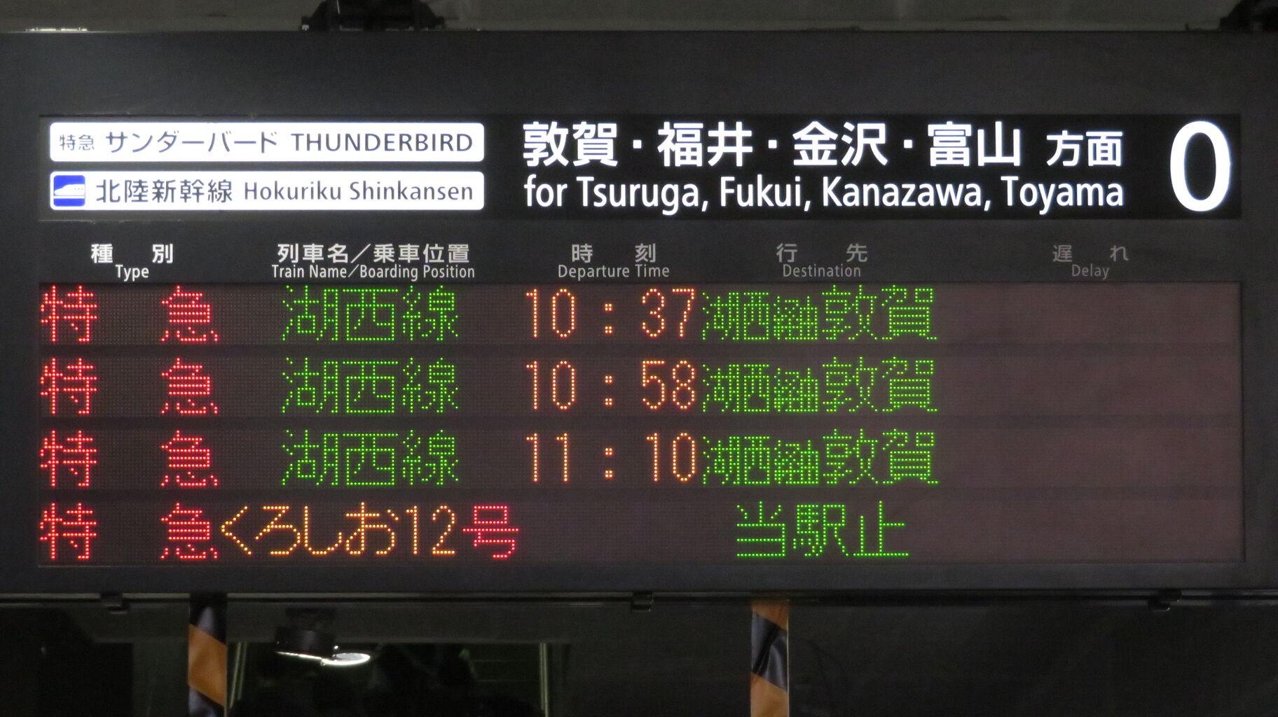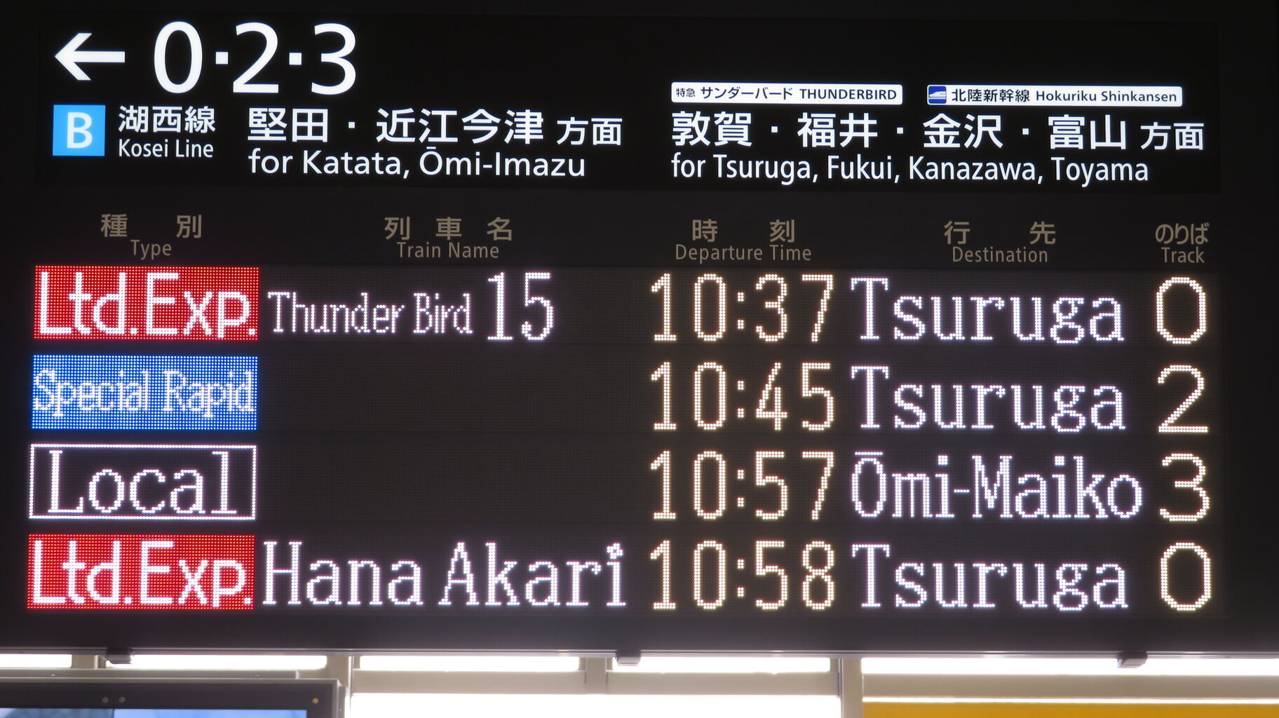 ちなみに、特急 「サンダーバード」 が金沢駅や富山駅まで直通していた時、金沢行きや富山行きでは 「湖西線」 の表示が出ませんでした。