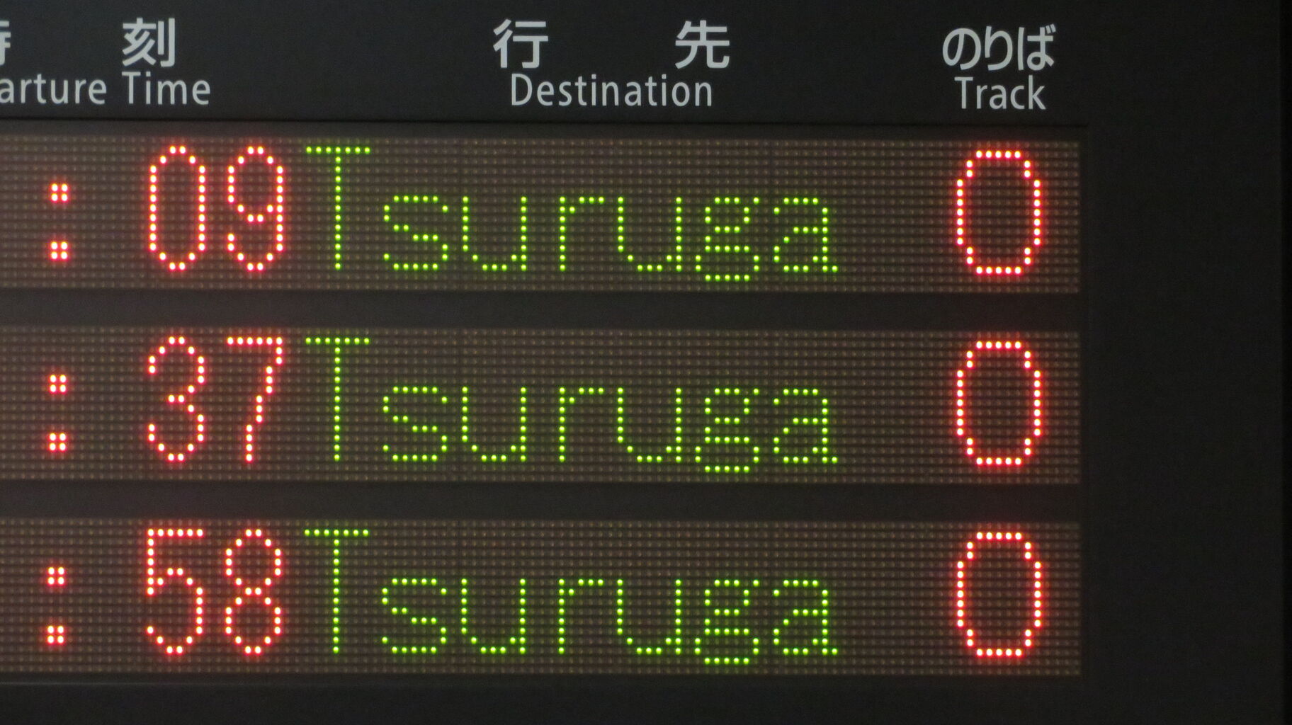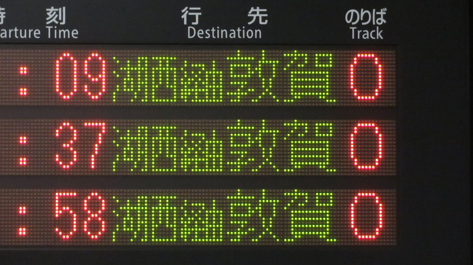 続いて、0番のりばに設置されている発車標を撮影。