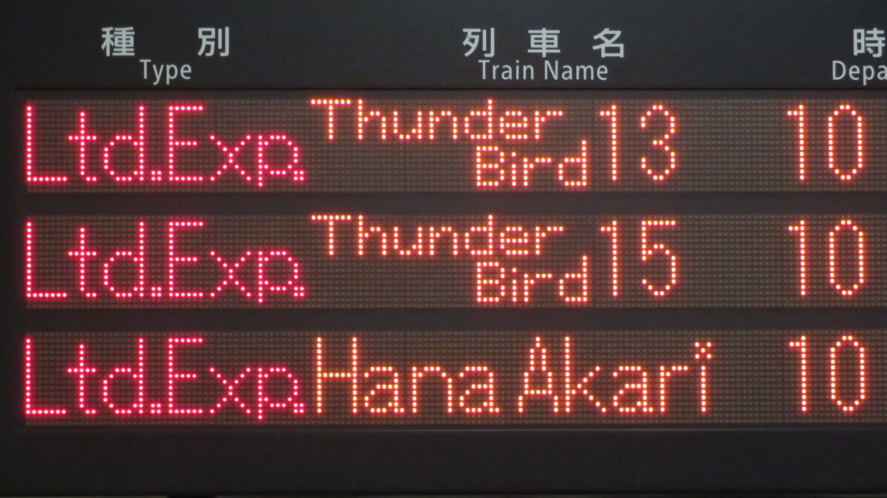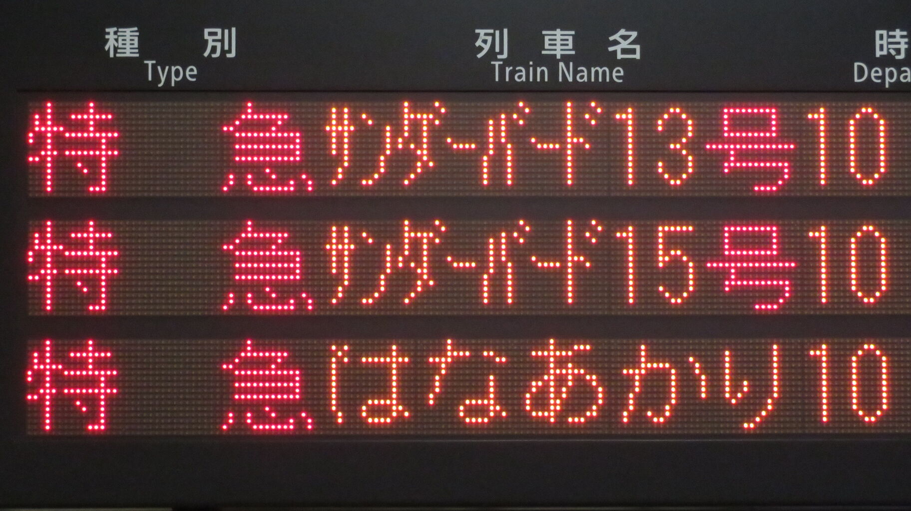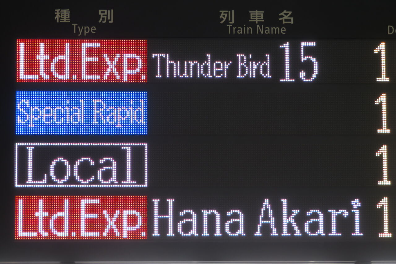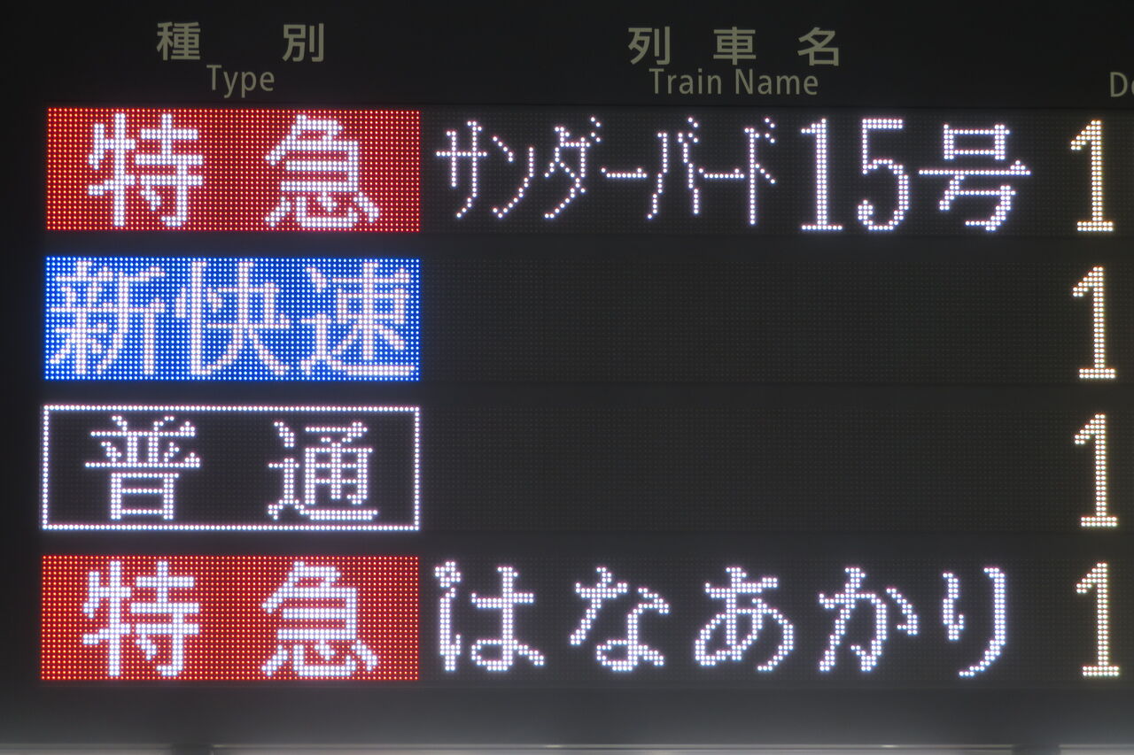 ホームの発車標と違って、特急列車の場合は表示されません。