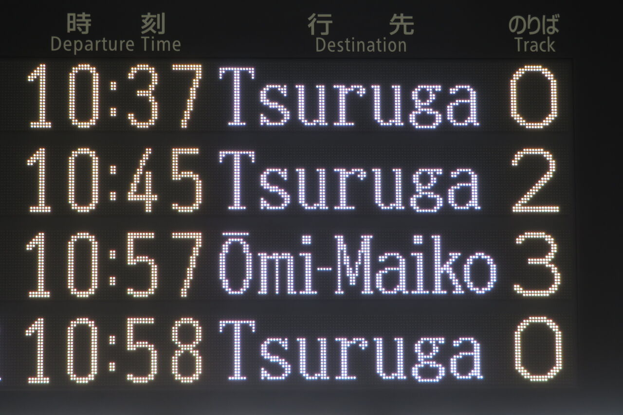 この 「湖西経由 敦賀」 ですが、2024年に表示が変更され、「湖西経由」 の文字が少し小さくなりました。