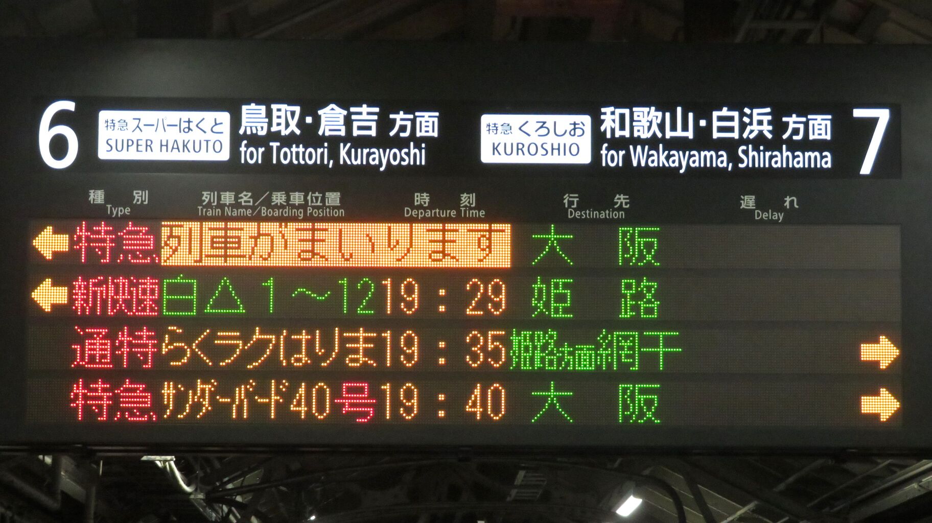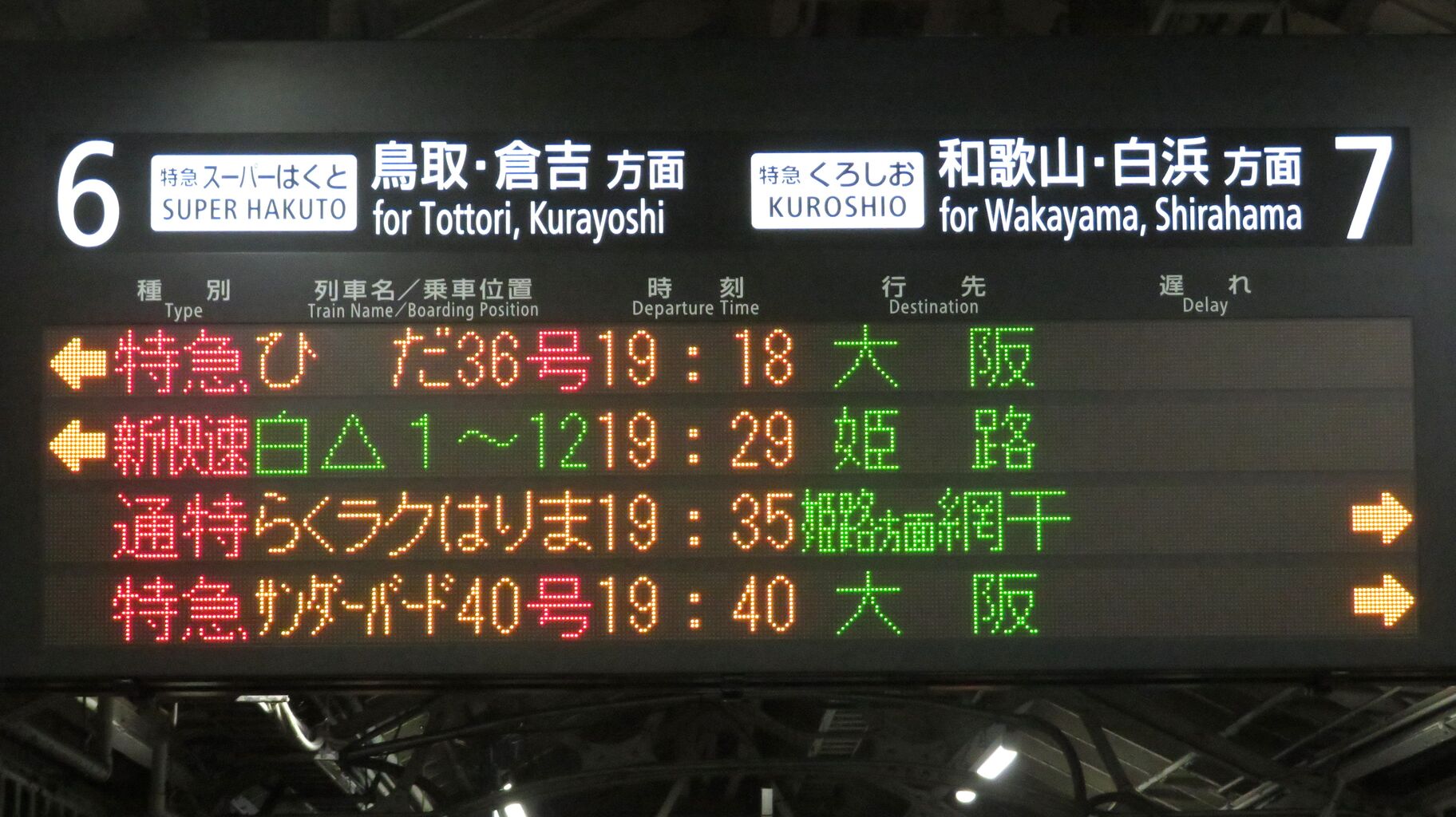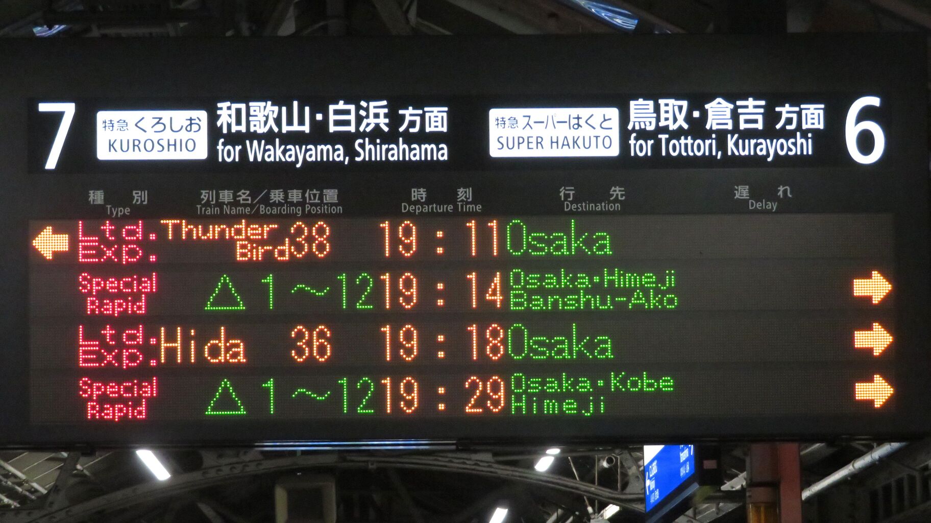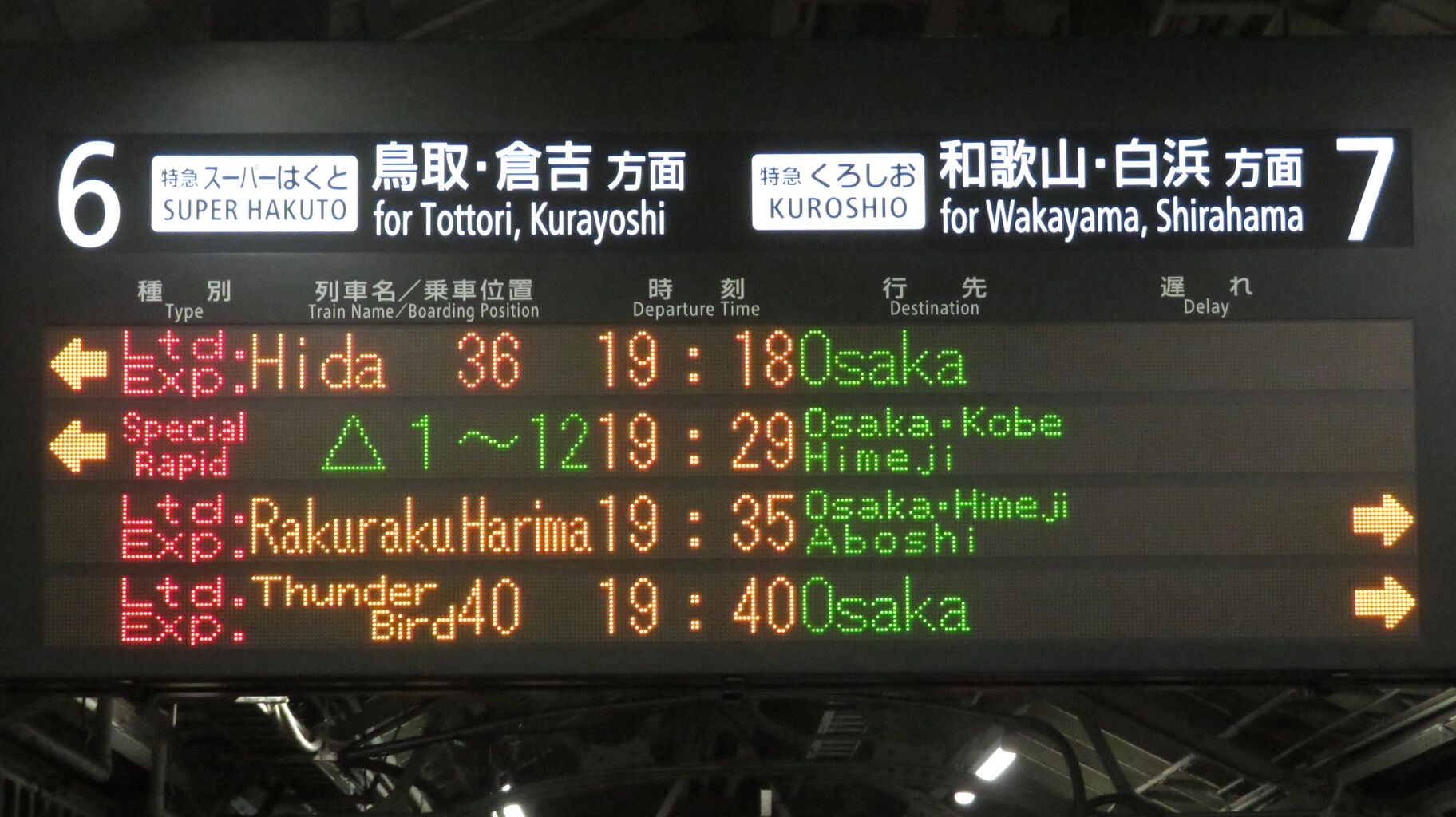 特急 「ひだ」 大阪行きが、一番上の段に表示されています。