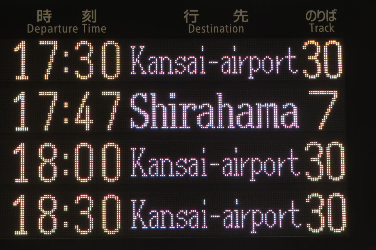 その影響で、くろしおの白浜行きと ひだの大阪行きが1つの発車標に揃って表示されるという、珍しい光景が見られたのです。