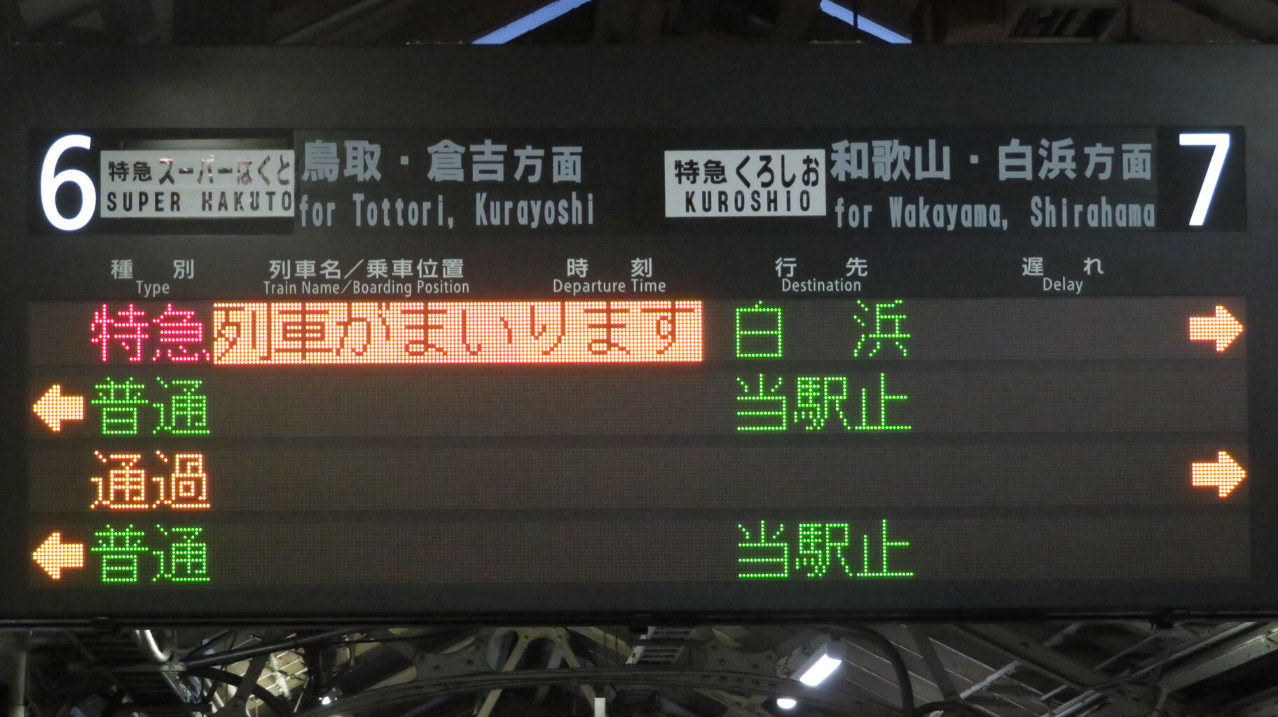 特急くろしお23号 白浜行きが、一番上の段に表示されました。