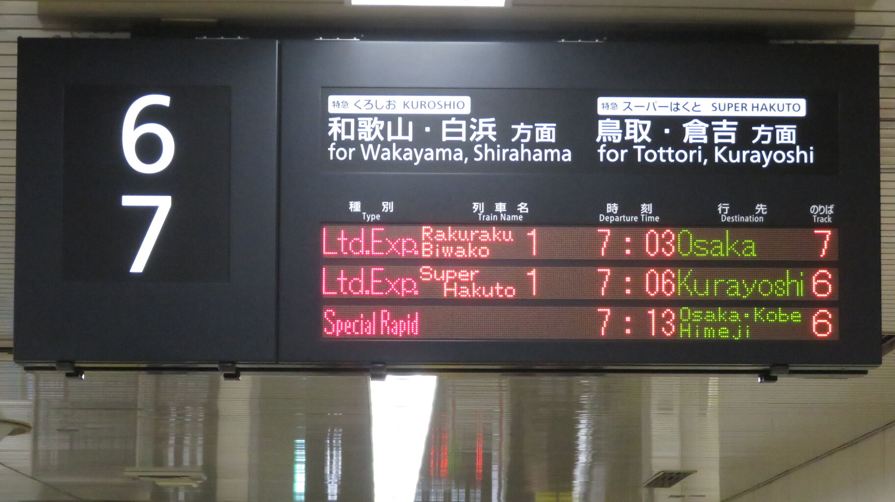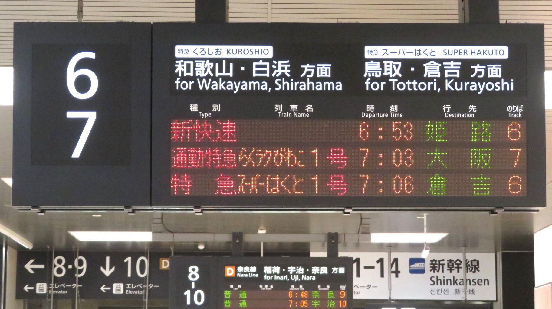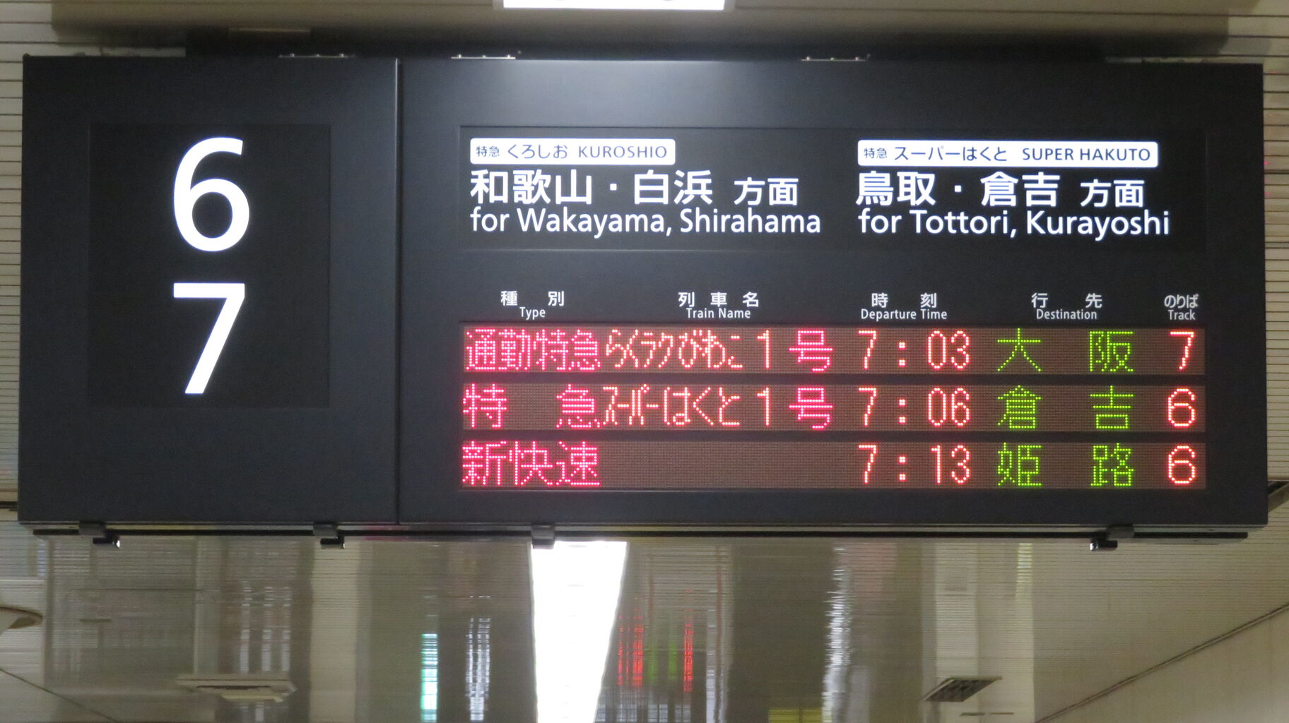 まずは、6・7番のりばに設置されている発車標から。