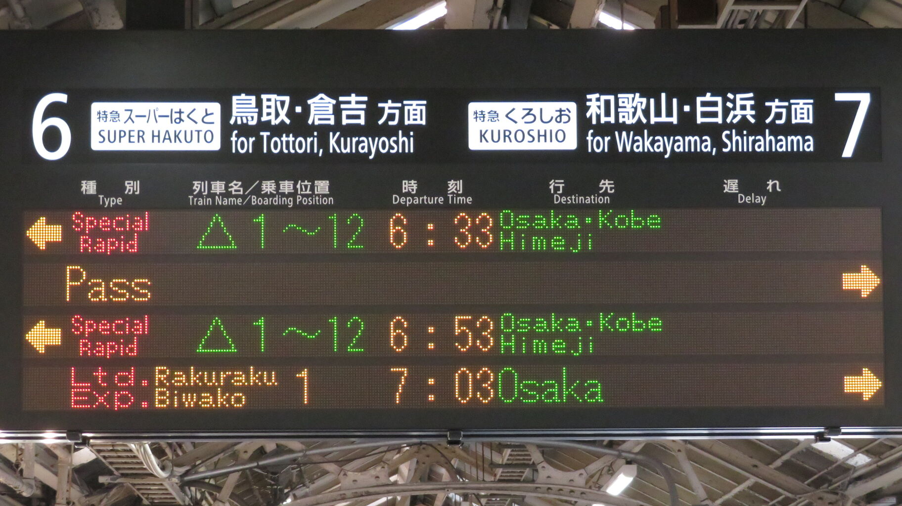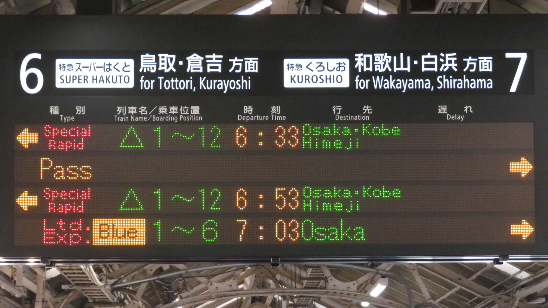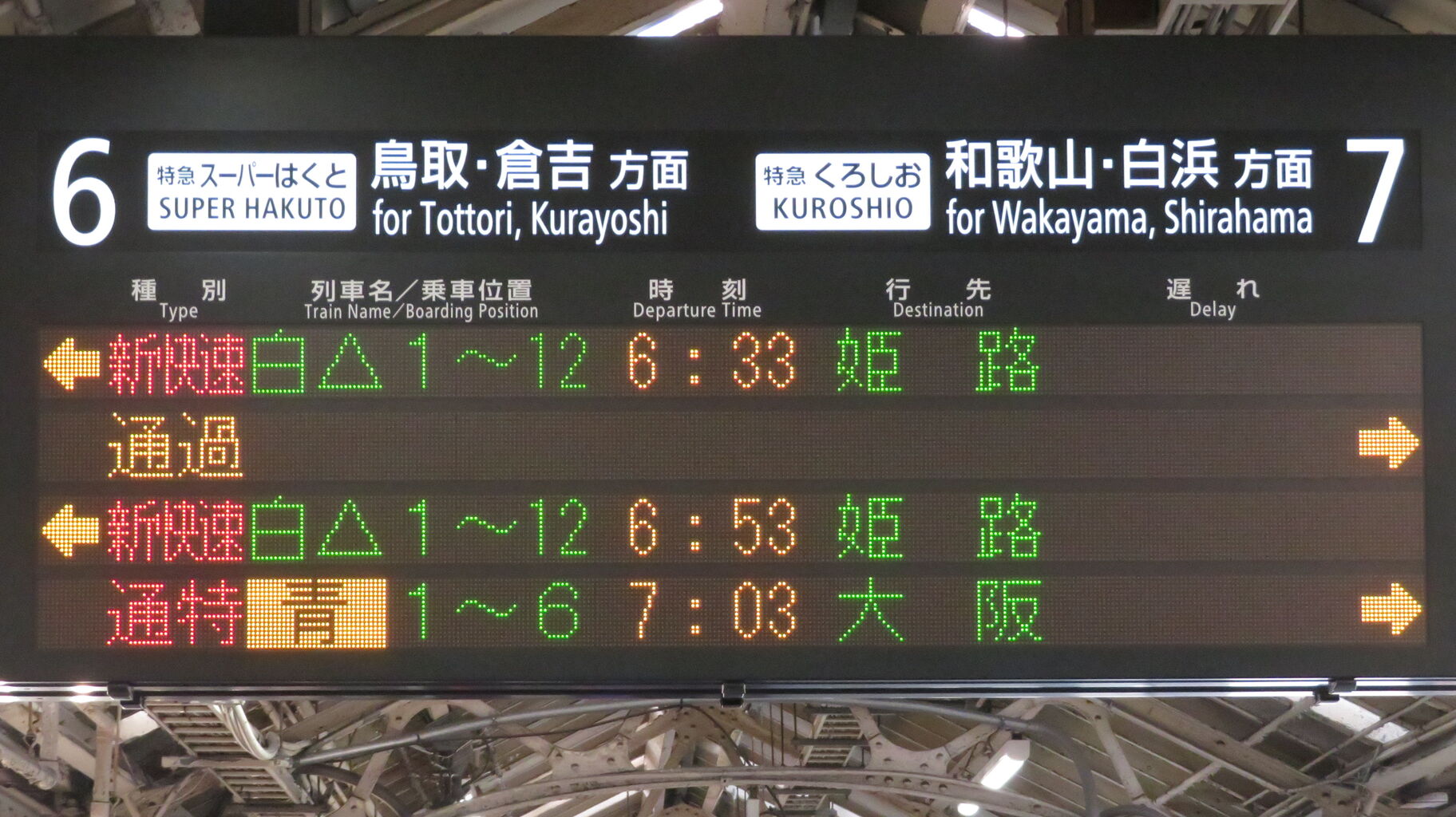 まずは、6・7番のりばに設置されている発車標から。