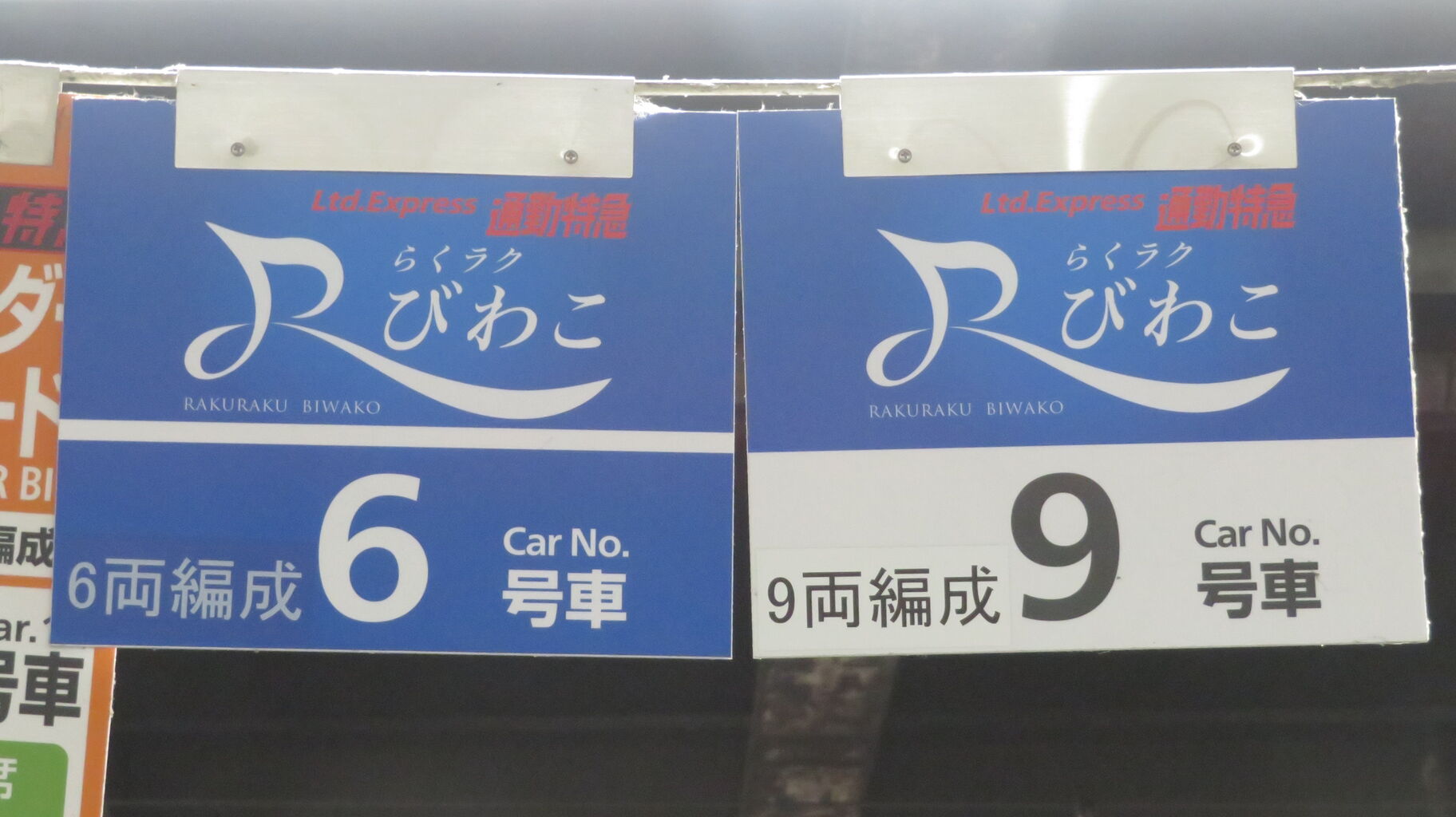らくラクびわこの乗車位置は 6両編成が青色、9両編成が白色です。